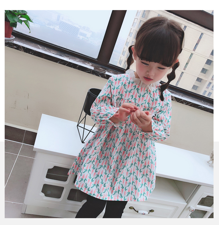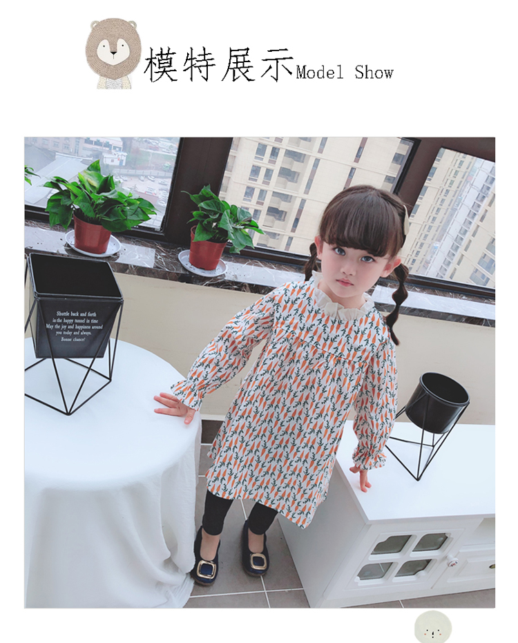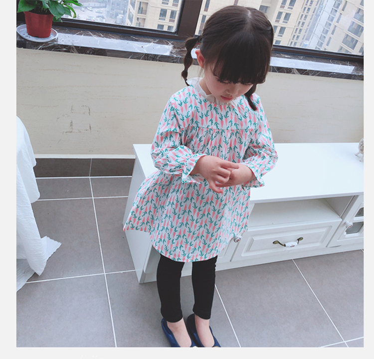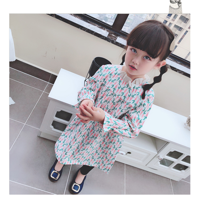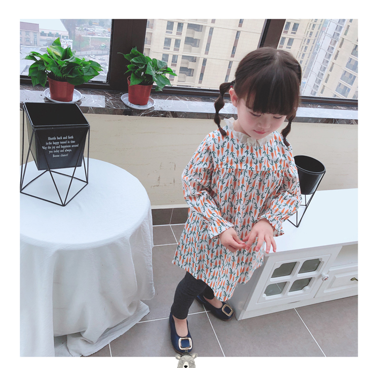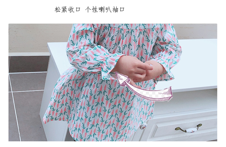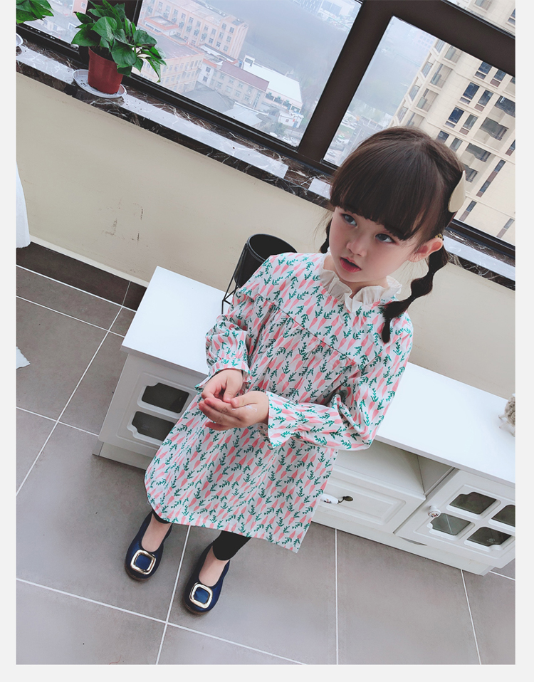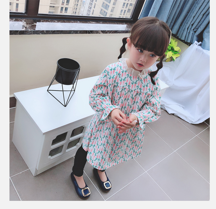2019春季新款 女童寶寶百褶領邊可愛長袖微型喇叭袖連衣裙1入