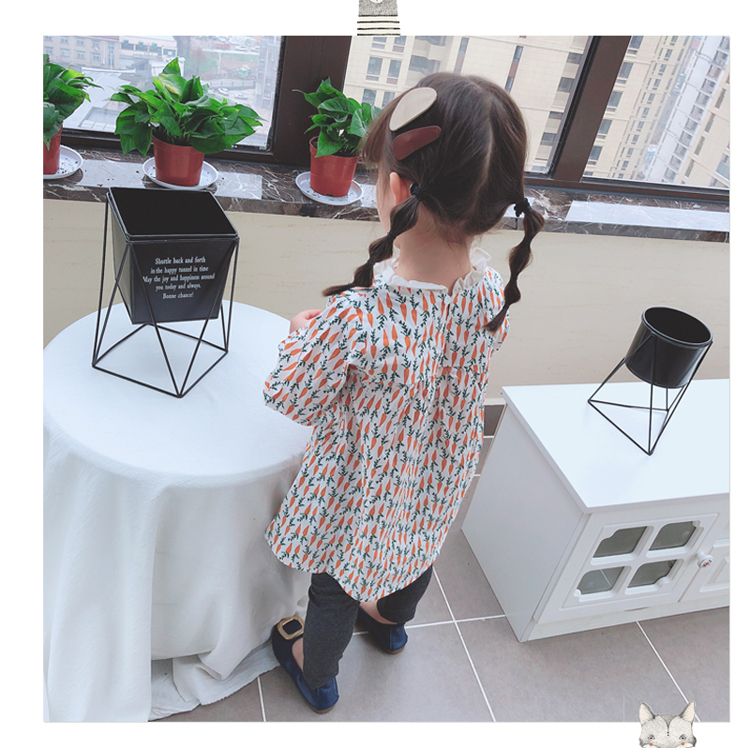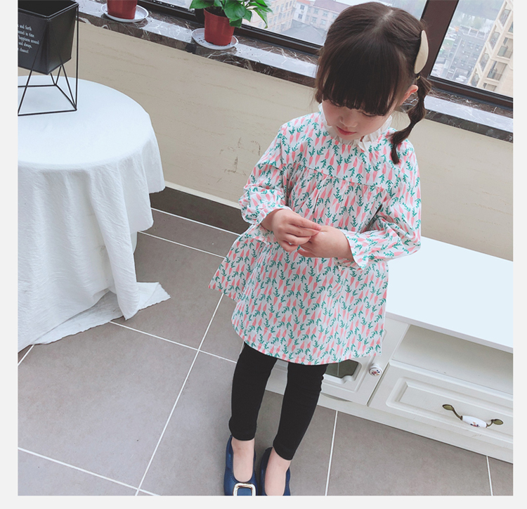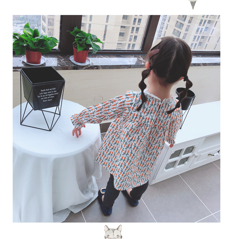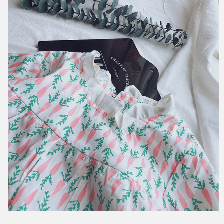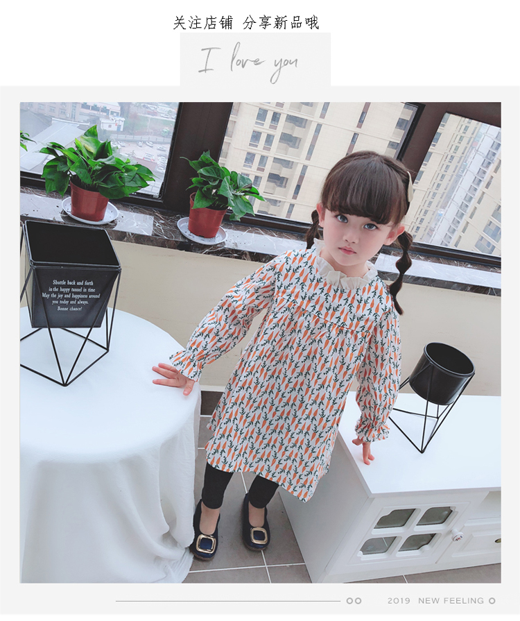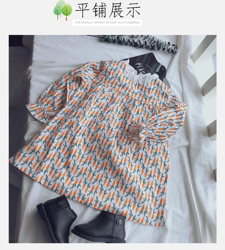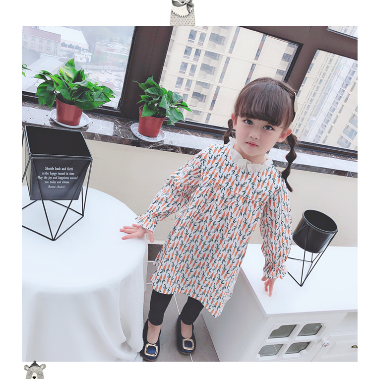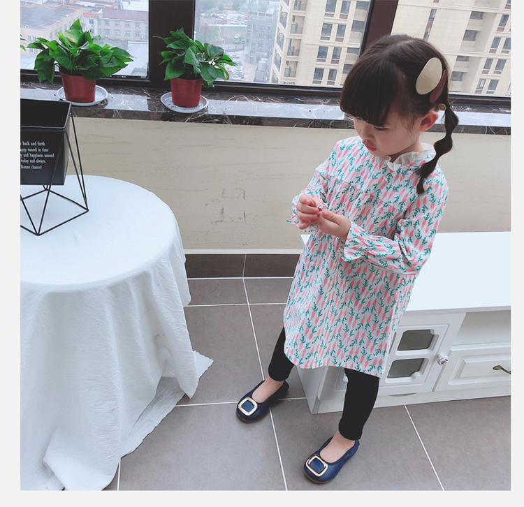 2019春季新款 女童寶寶百褶領邊可愛長袖微型喇叭袖連衣裙1入