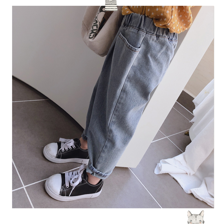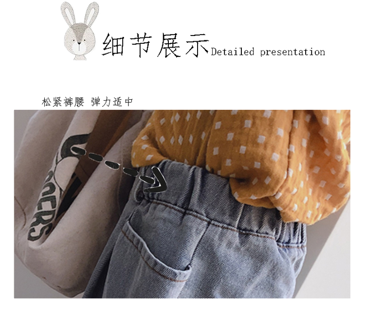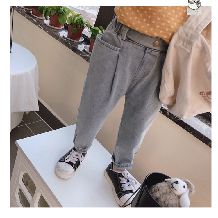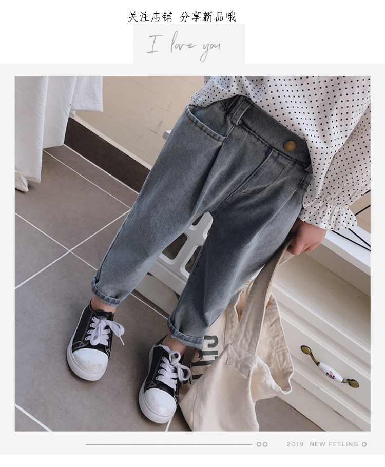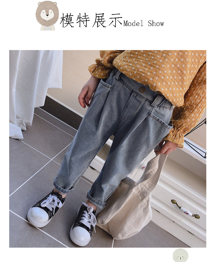 2019春季新款 中小童牛仔褲 男女童寶寶帥氣純色皮筋腰帶小腳褲1入