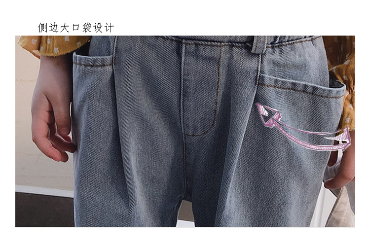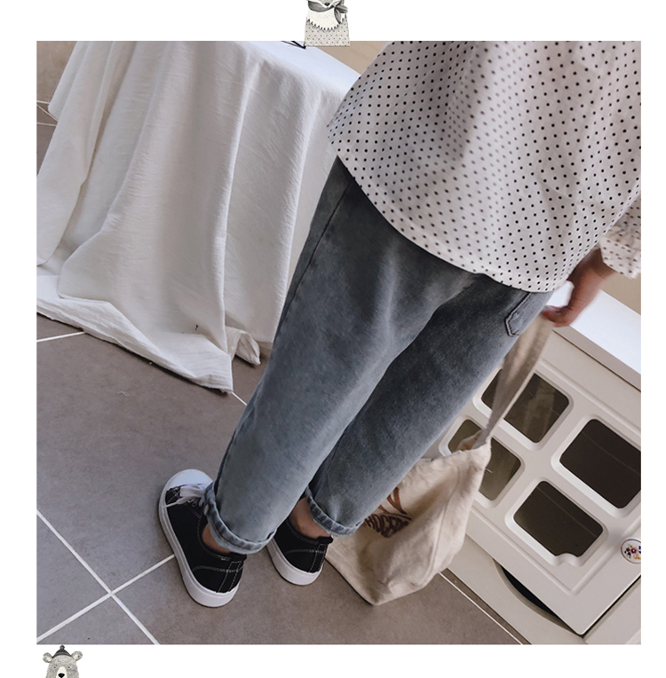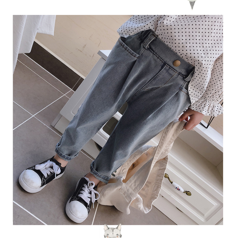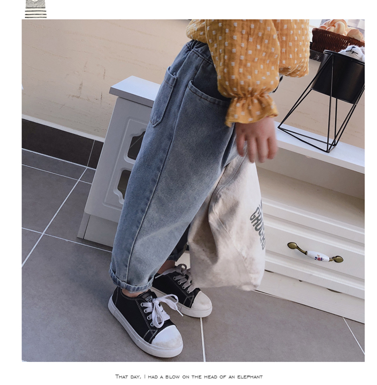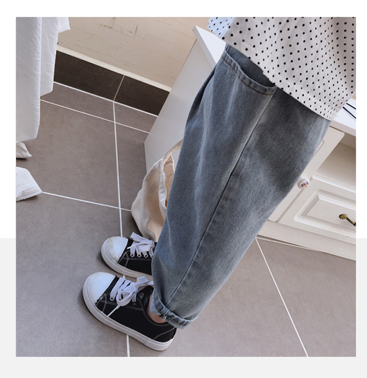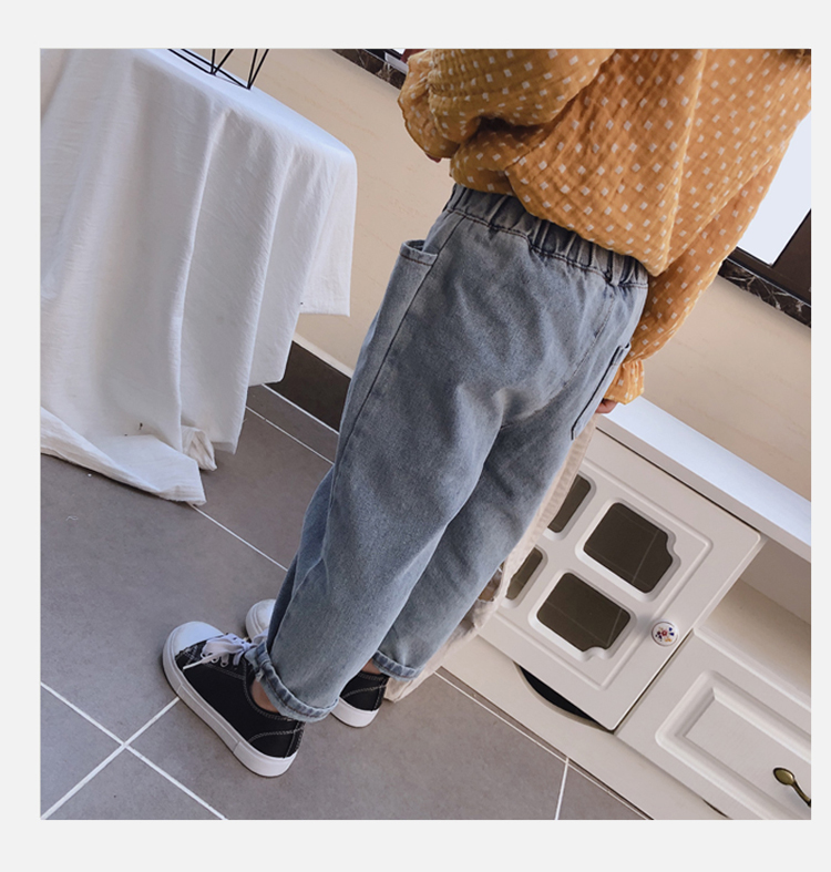 2019春季新款 中小童牛仔褲 男女童寶寶帥氣純色皮筋腰帶小腳褲1入
