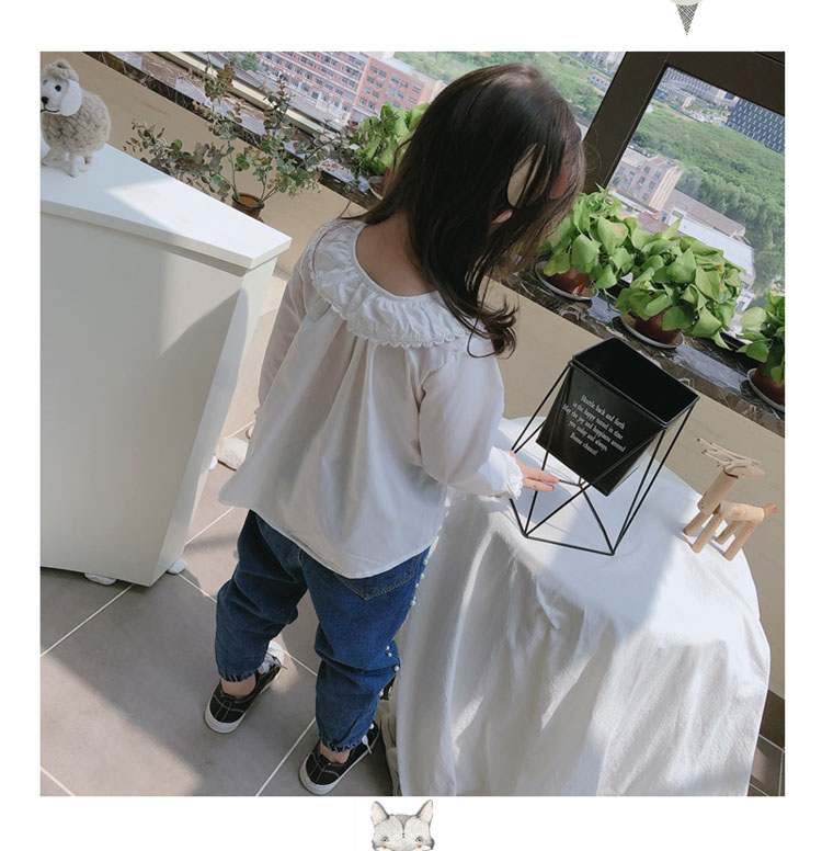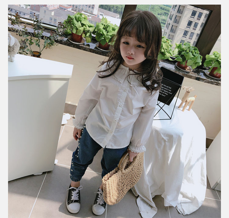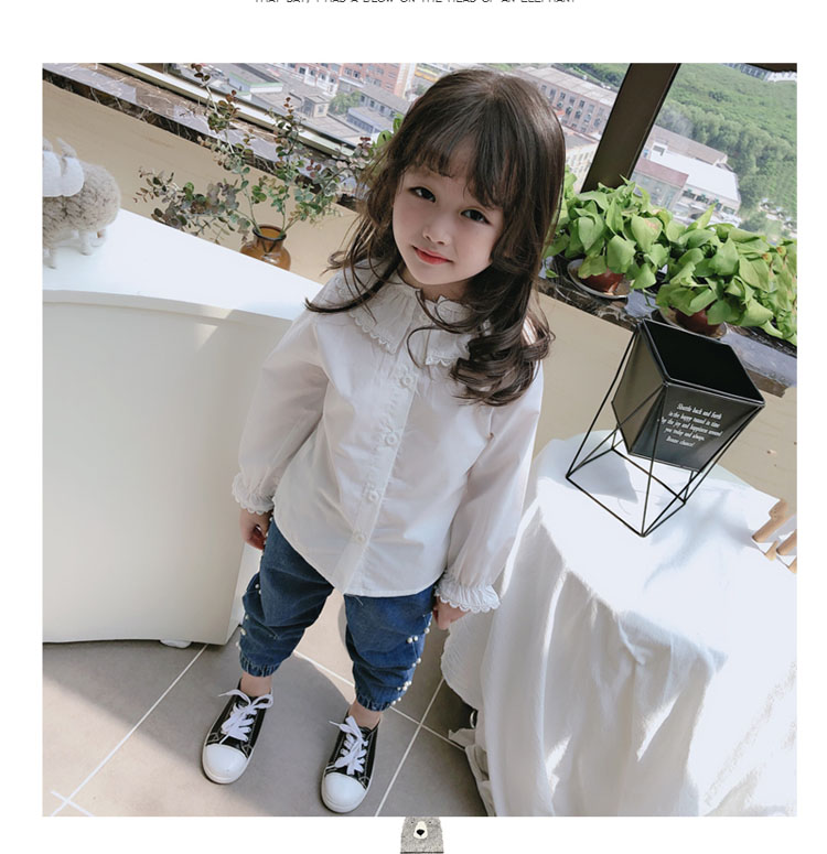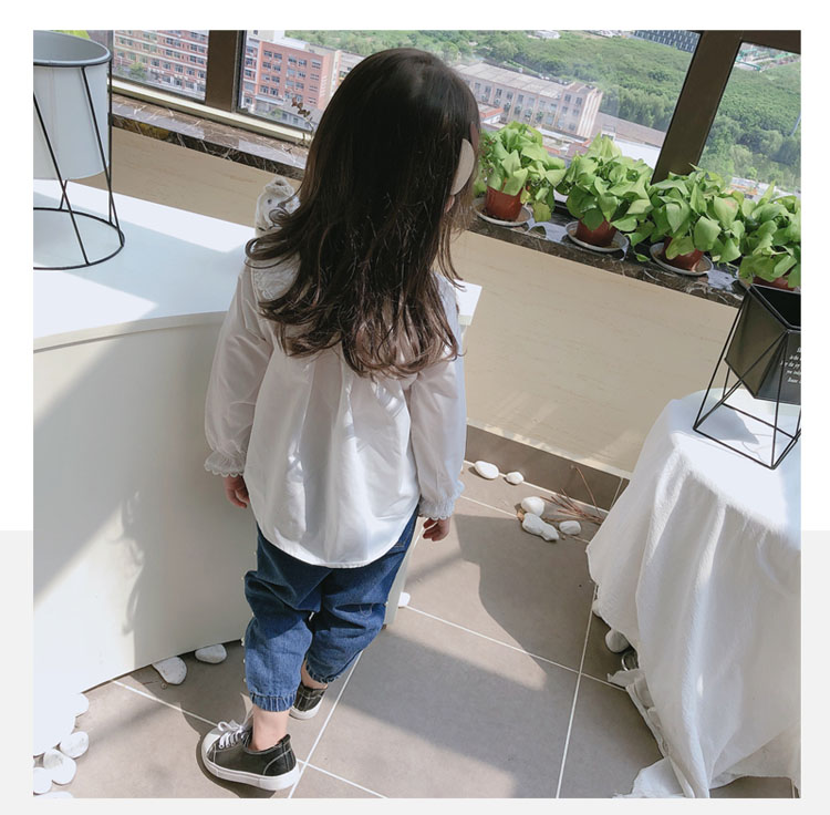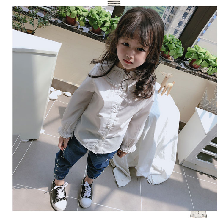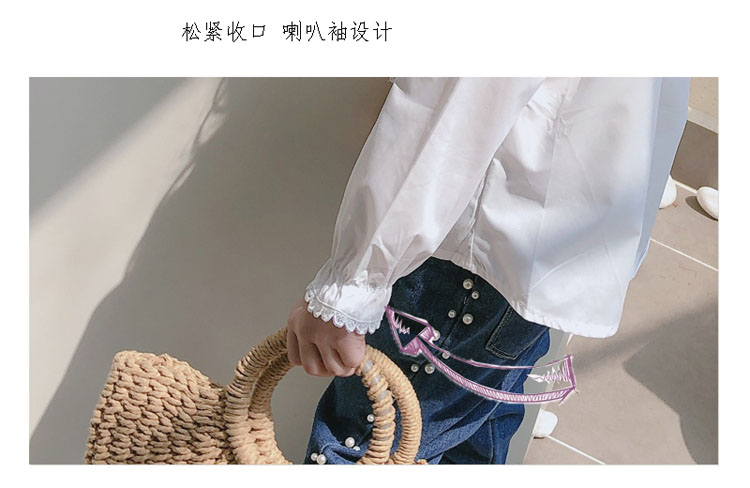 2019春秋季新款童裝 中小童喇叭袖襯衫 女童寶寶大翻領純色上衣1入