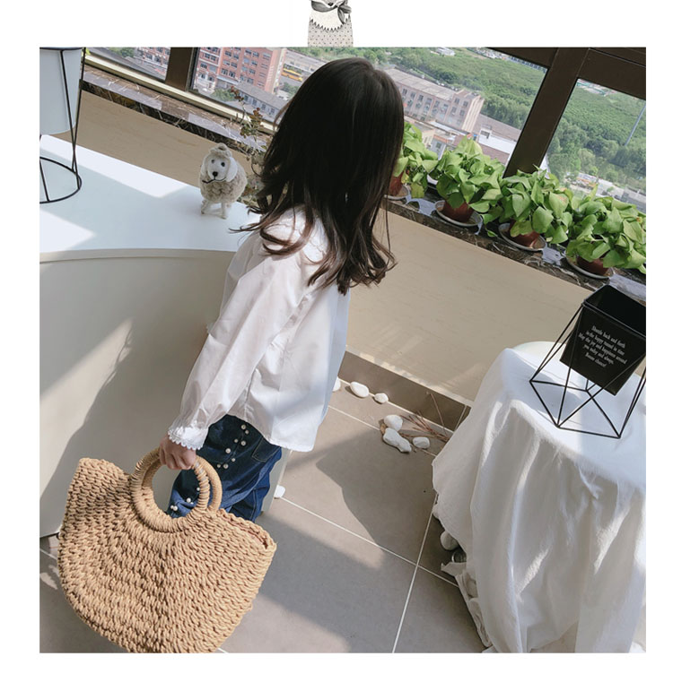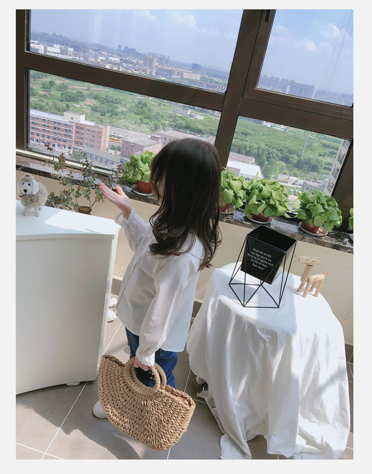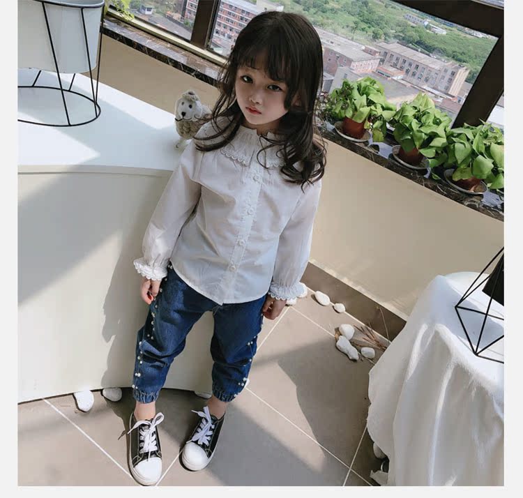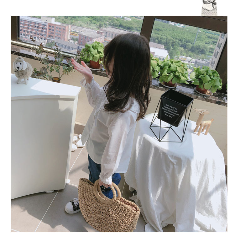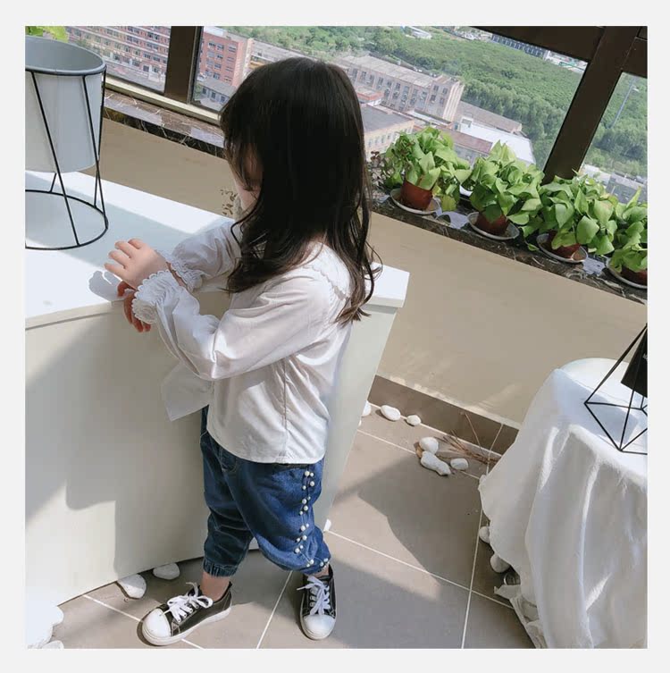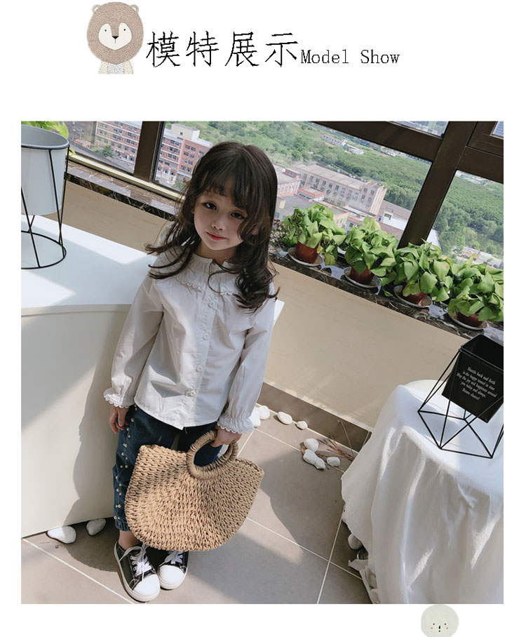 2019春秋季新款童裝 中小童喇叭袖襯衫 女童寶寶大翻領純色上衣1入
