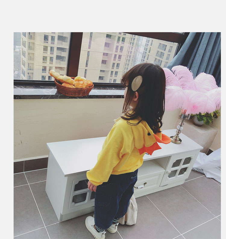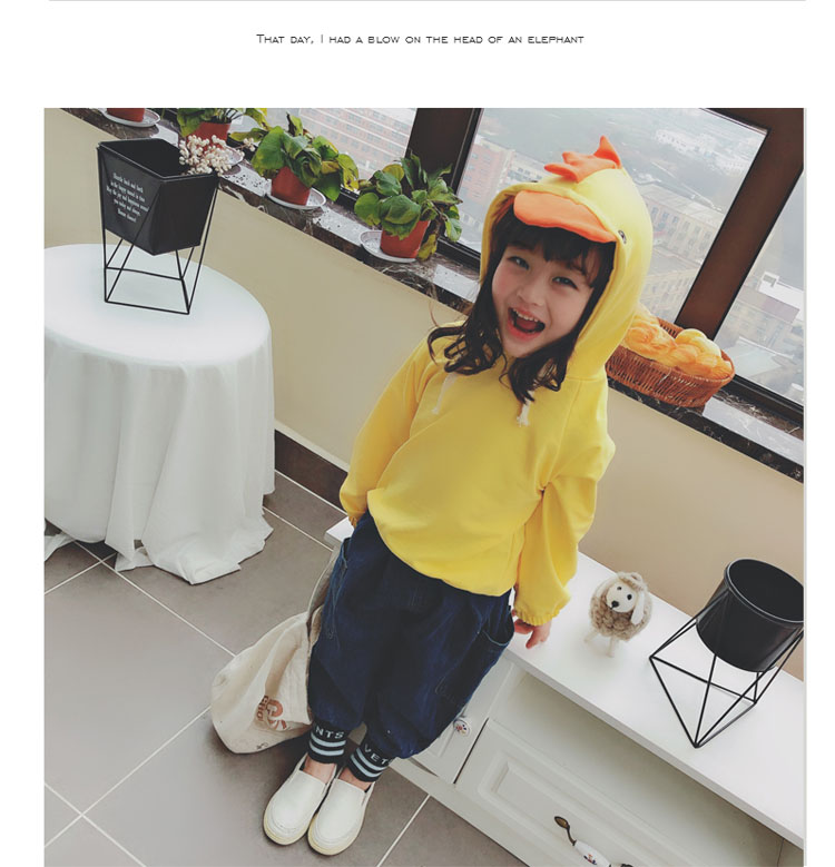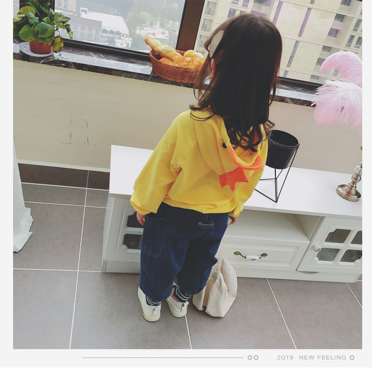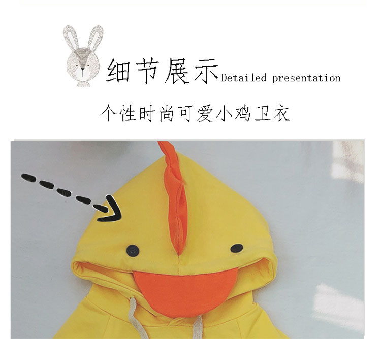 2019兒童春秋新款男女寶寶上衣 中小童可愛卡通小雞休閑連帽衛衣1入