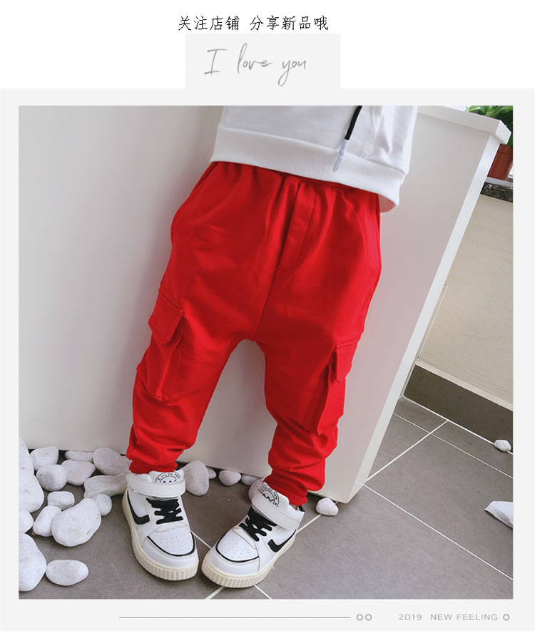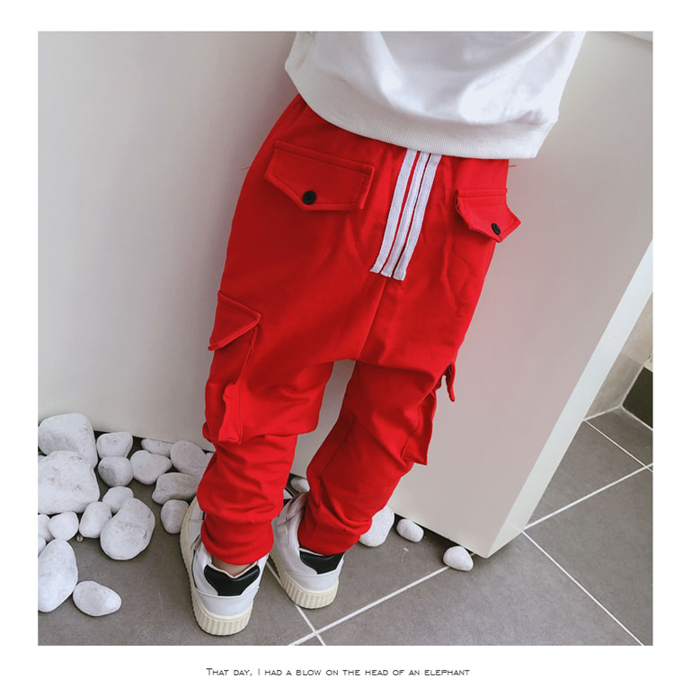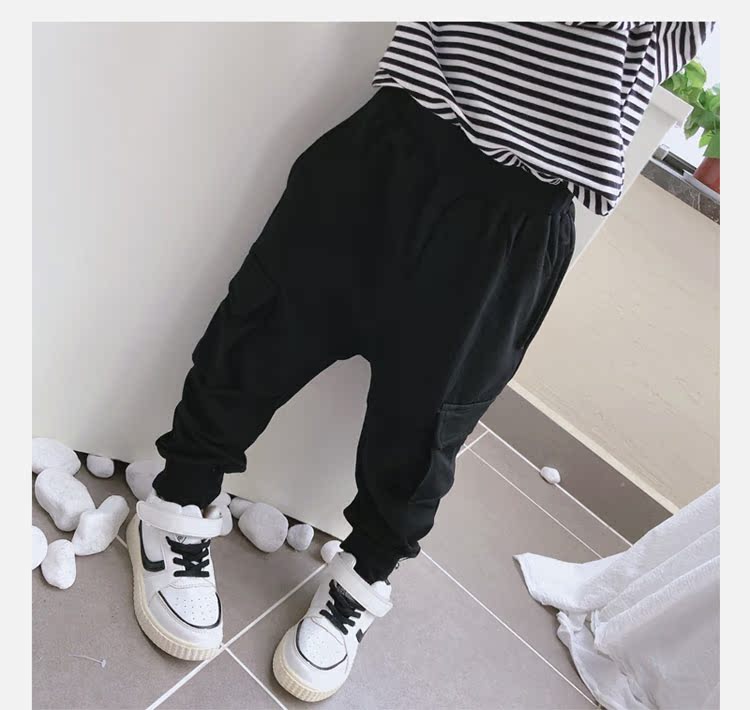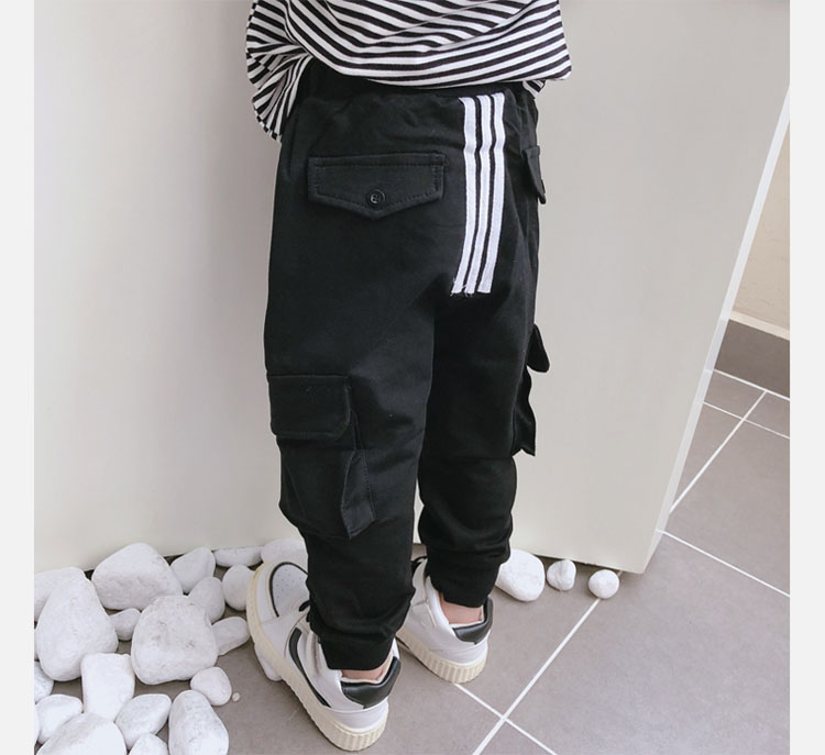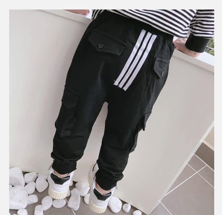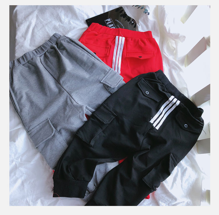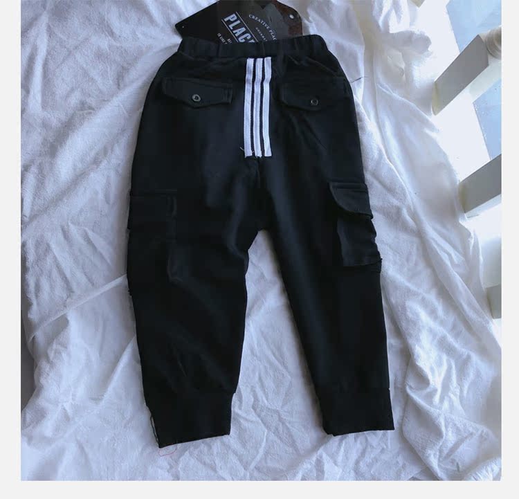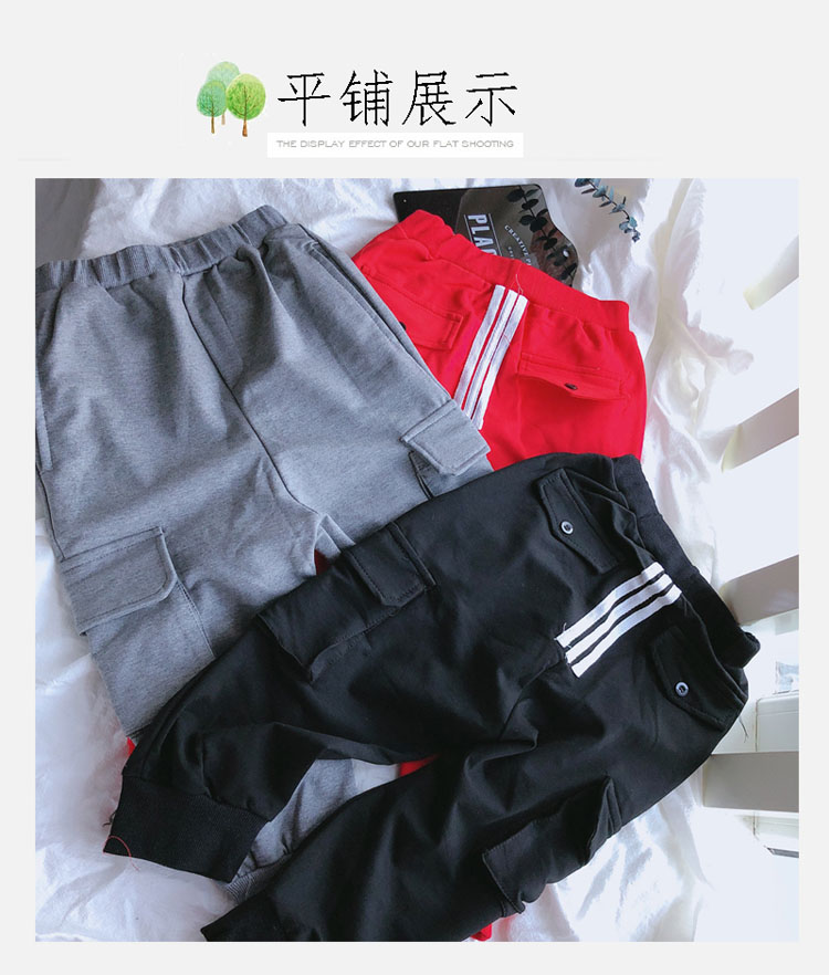 2019春秋季新款童裝 兒童寬松條紋褲子 男女童舒適束口兒童休閑褲1入