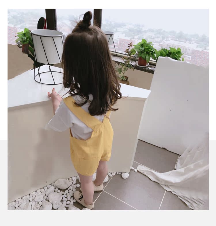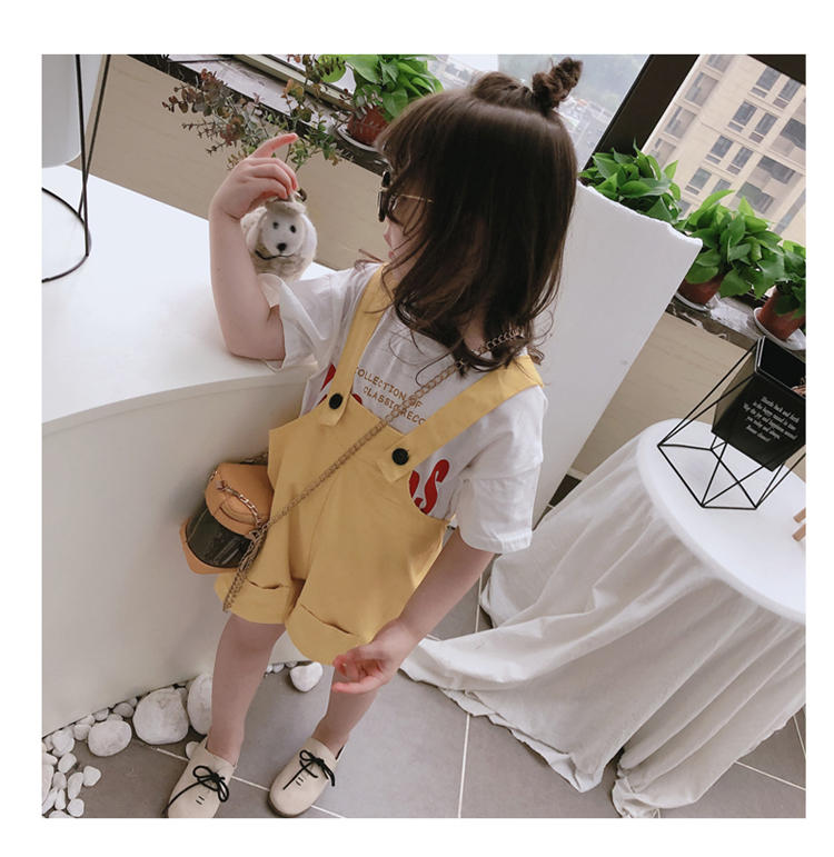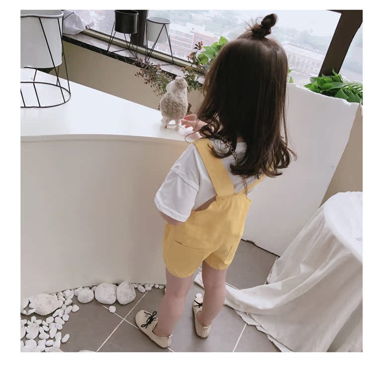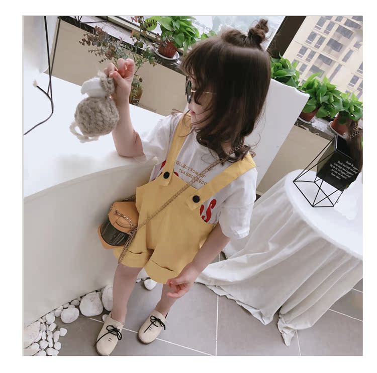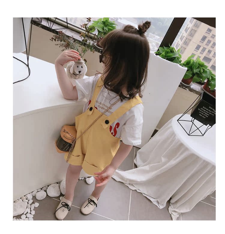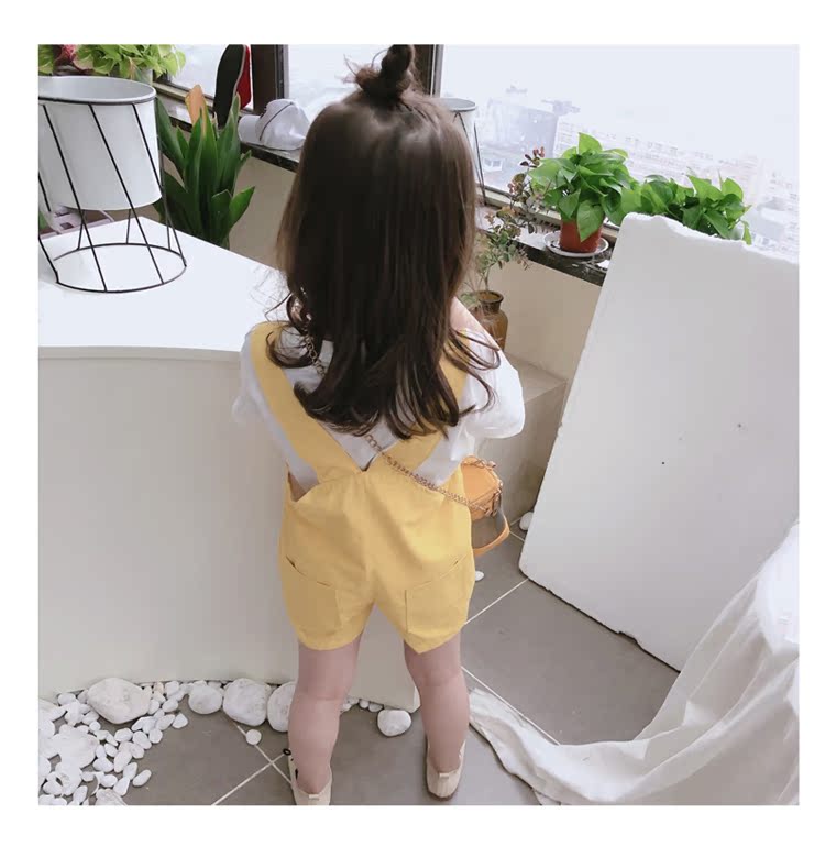 2019新款 童裝寬松闊腿女童寶寶背帶短褲背帶褲兒童休閑吊帶褲 潮1入