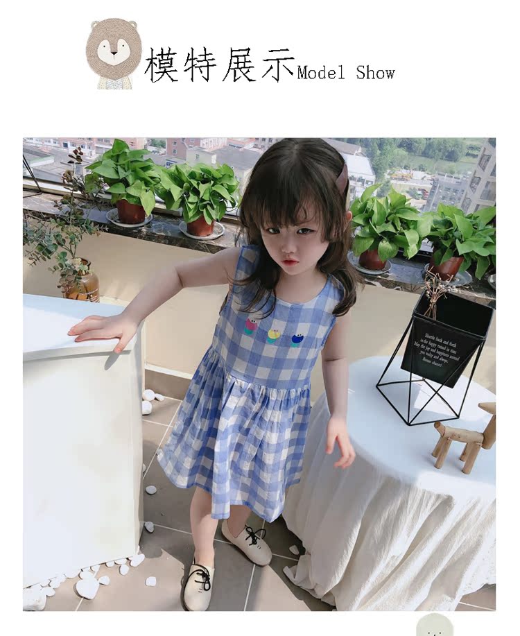 2019夏季新款 兒童時尚圓領無袖格子連衣裙 女童寶寶甜美可愛裙子1入