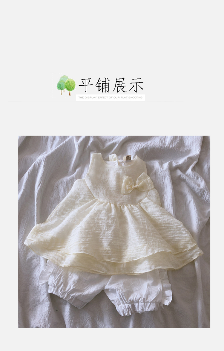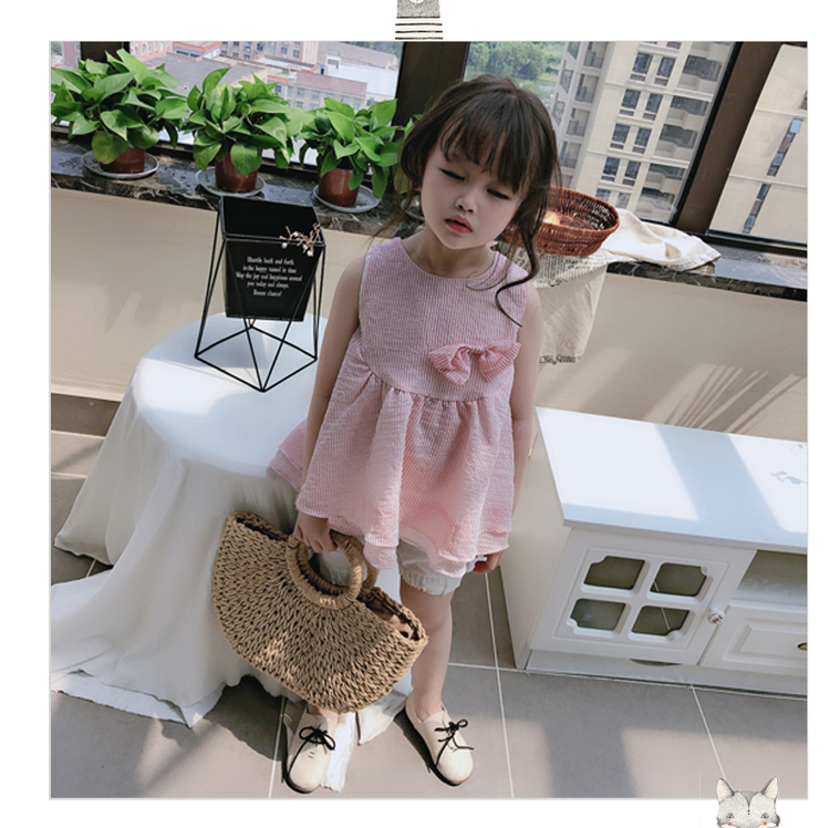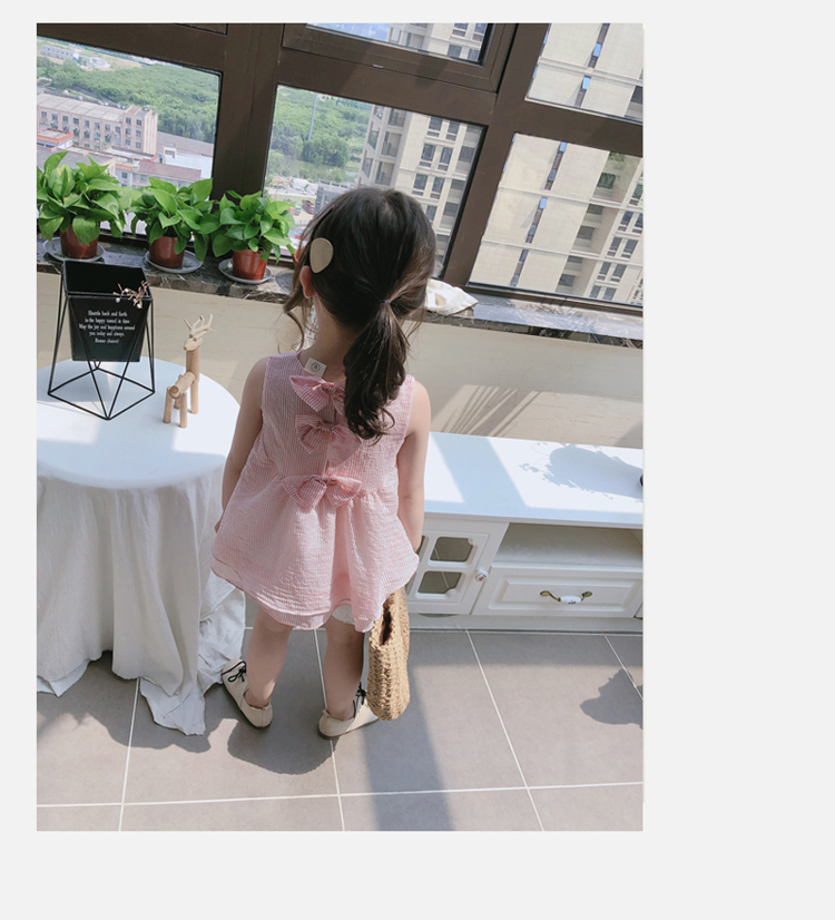 2019女童夏季寶寶可愛套裝 兒童甜美蝴蝶結上衣+花邊短褲兩件套1入