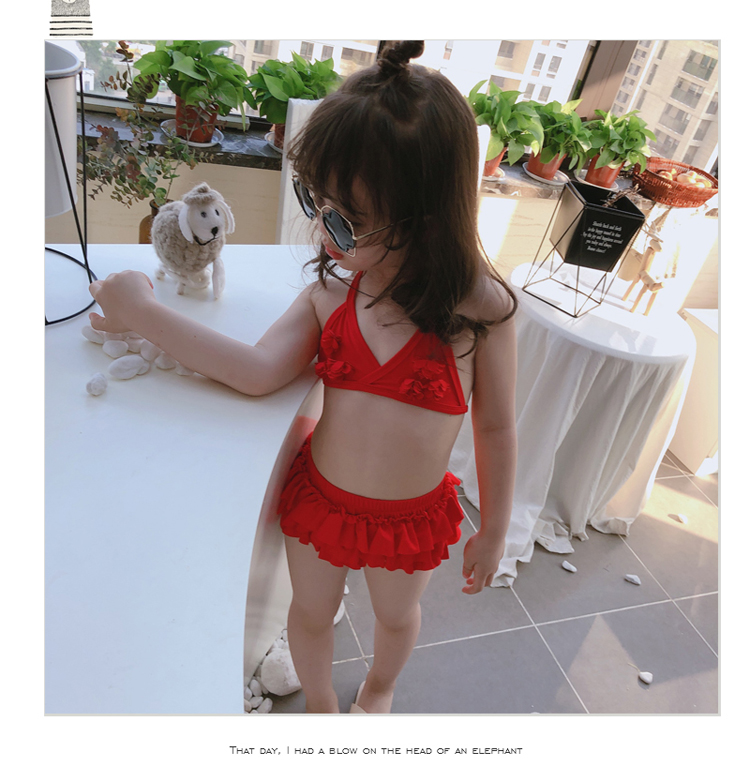 2019夏季新款 女童寶寶個性洋氣分體游泳衣 中小童可愛比基尼泳裝1入