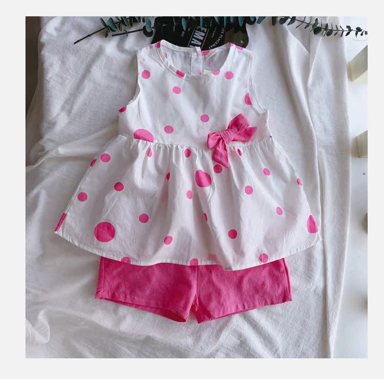 2019女童夏季新款小清新套裝 中小童可愛甜美上衣+純色短褲兩件套1入