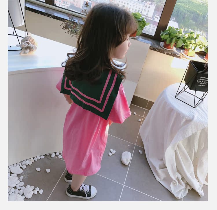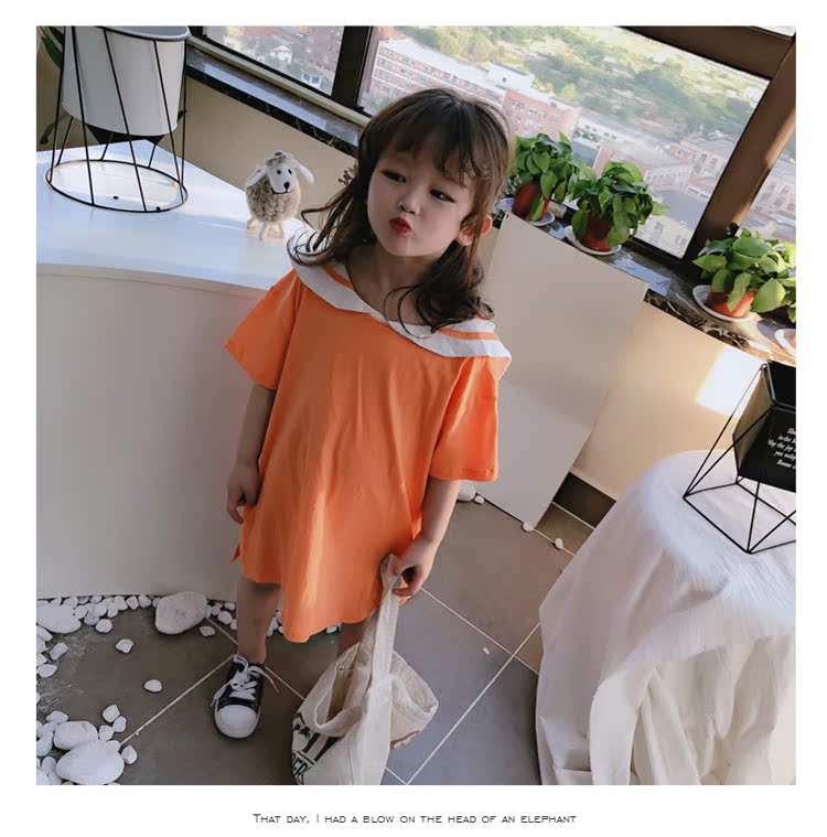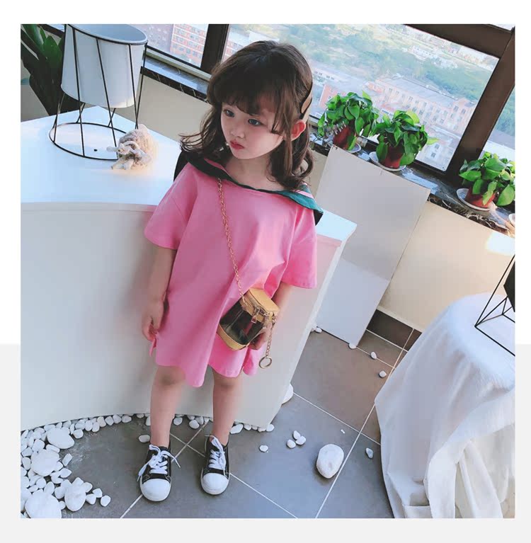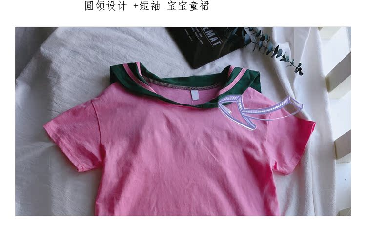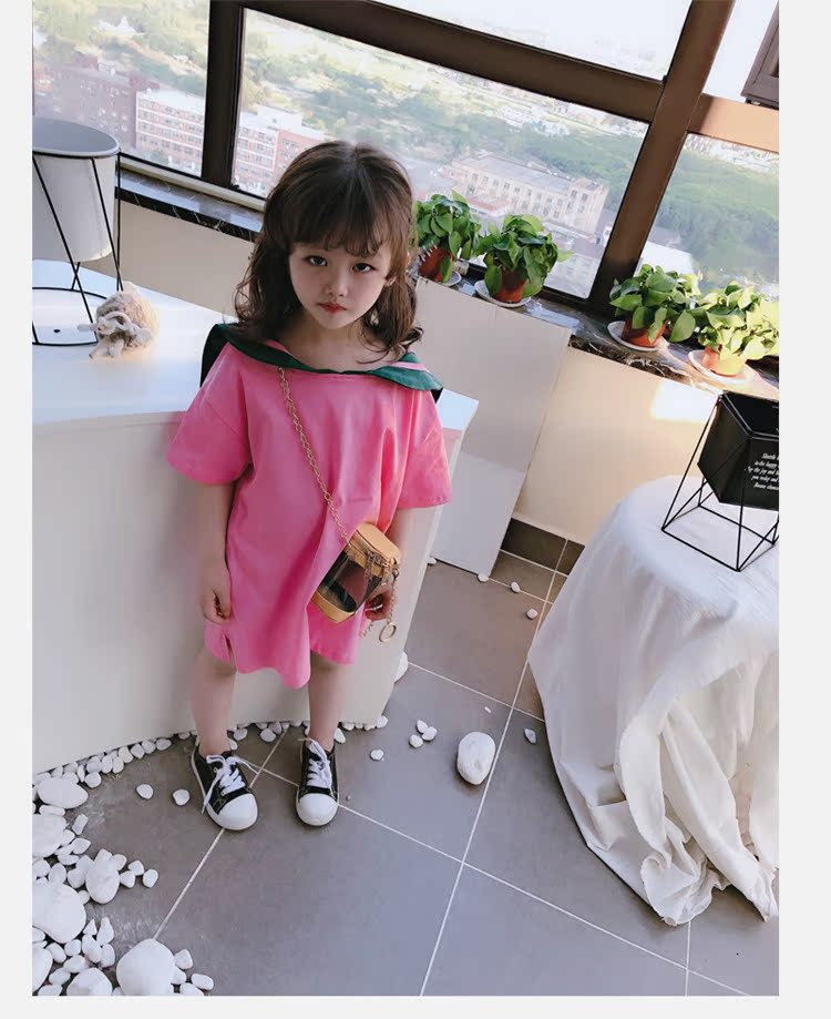 2019夏季新款 女童個性披肩童裙 中小童學院風可愛撞色短袖連衣裙1入