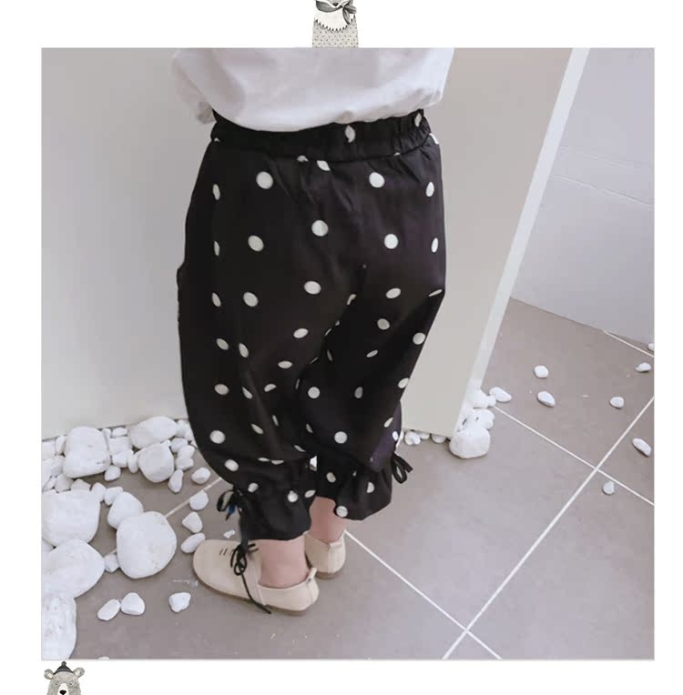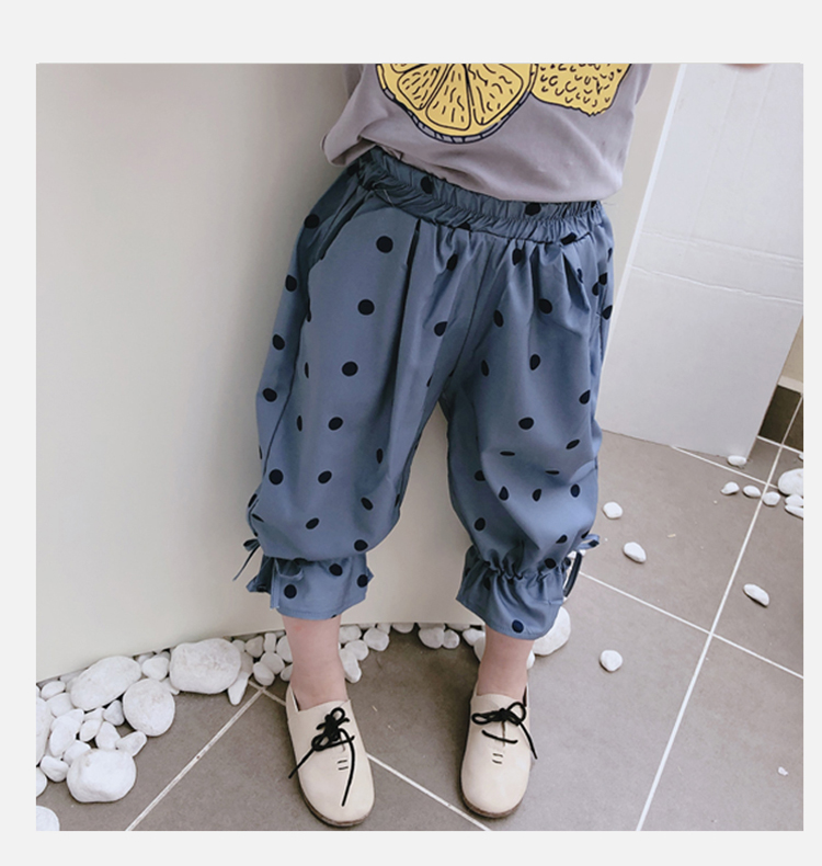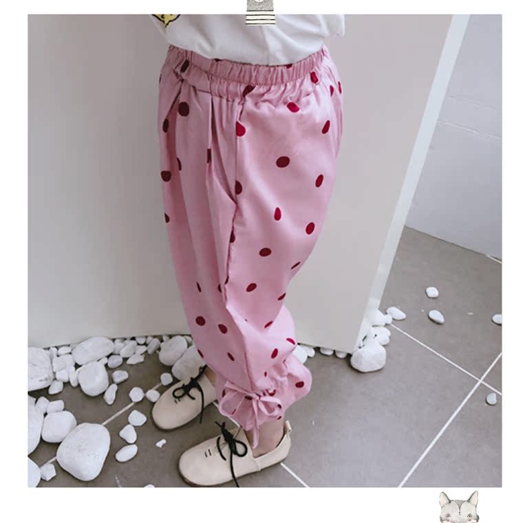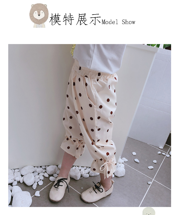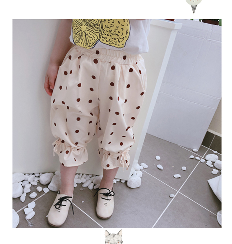 2019夏季新款 女童寶寶可愛圓點印花休閑褲 中小童松緊褲腰褲子1入