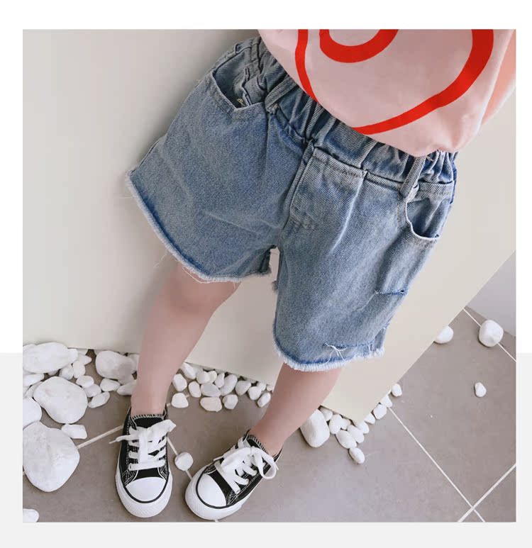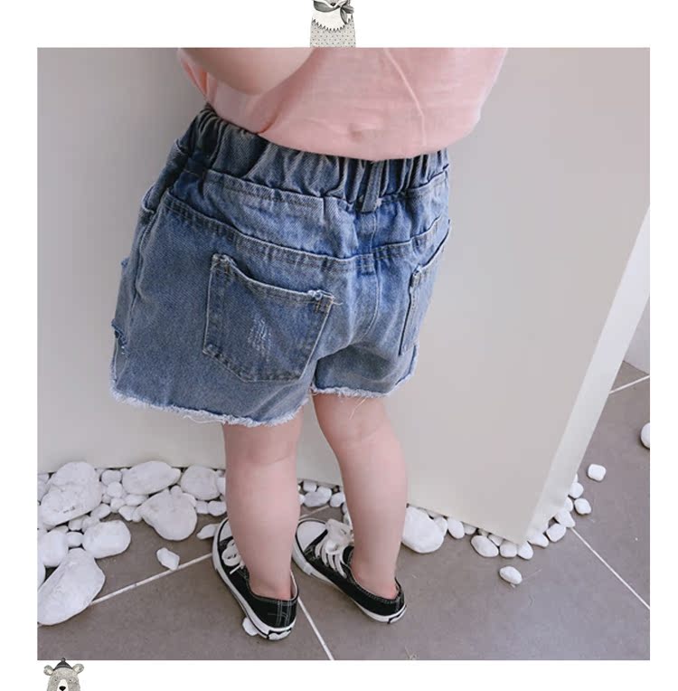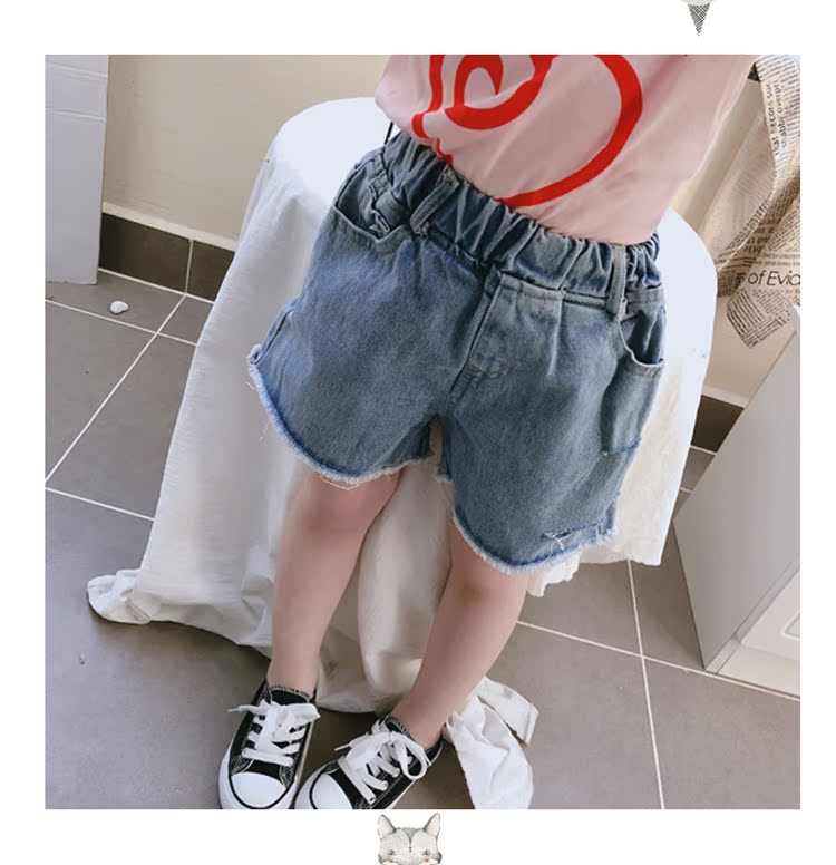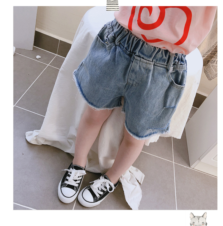 2019夏季新款 女童寶寶牛仔短褲夏熱褲破洞毛邊中小童寶寶褲子1入