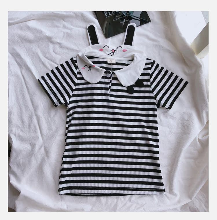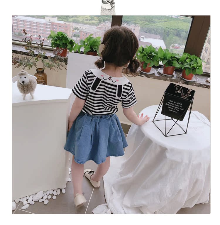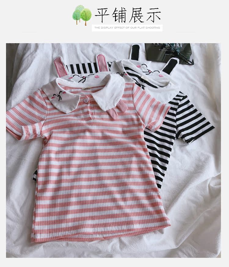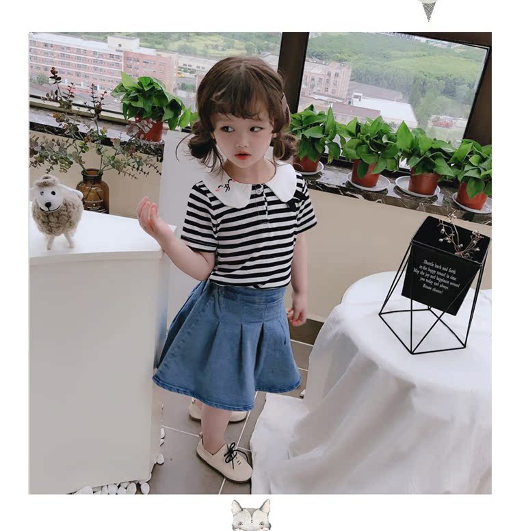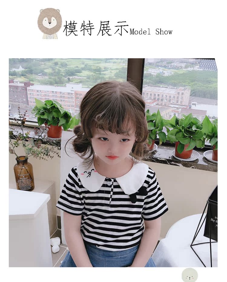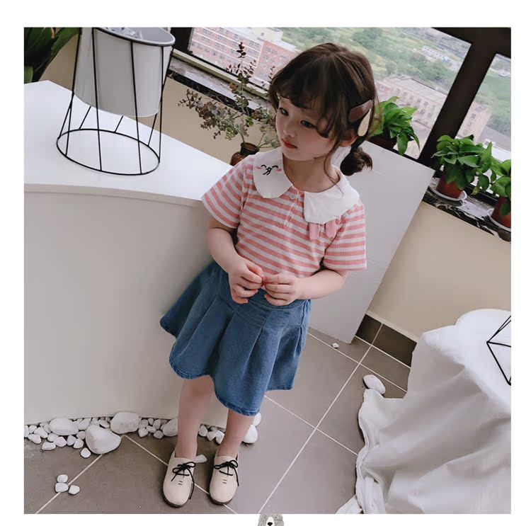2019童裝夏季新款 女童寶寶可愛翻領T恤 中小童舒適條紋上衣潮1入