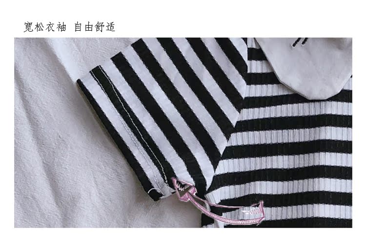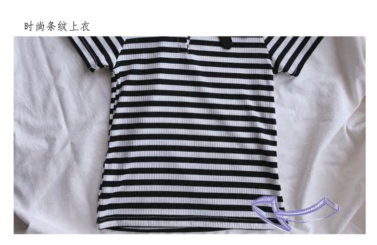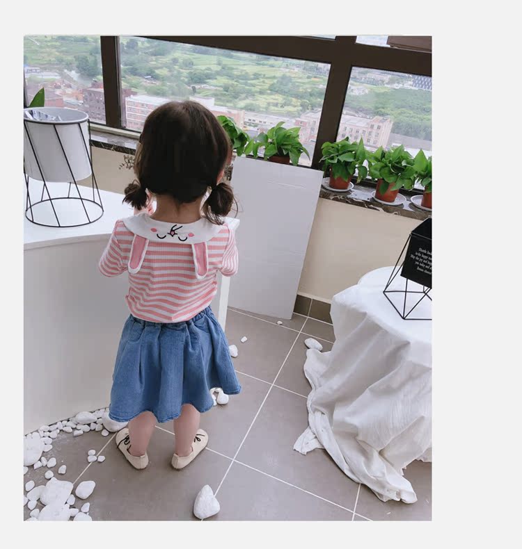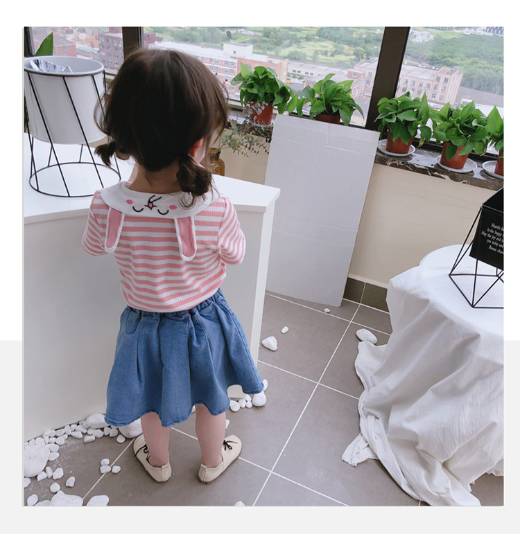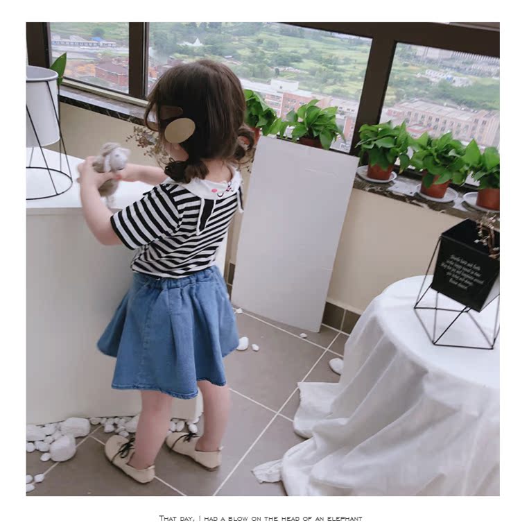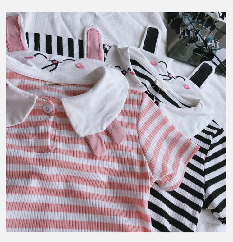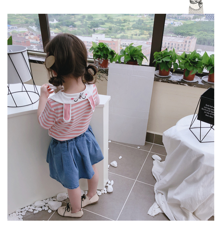 2019童裝夏季新款 女童寶寶可愛翻領T恤 中小童舒適條紋上衣潮1入