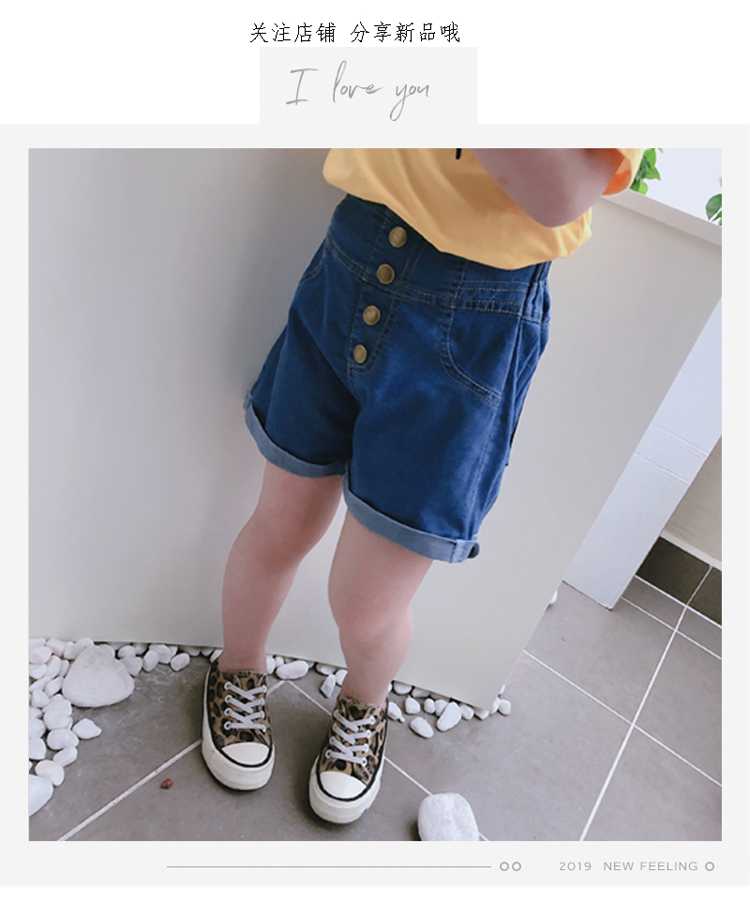 2019新款 兒童氣質夏季高腰褲兒童褲子 女童牛仔短褲寶寶休閑褲1入