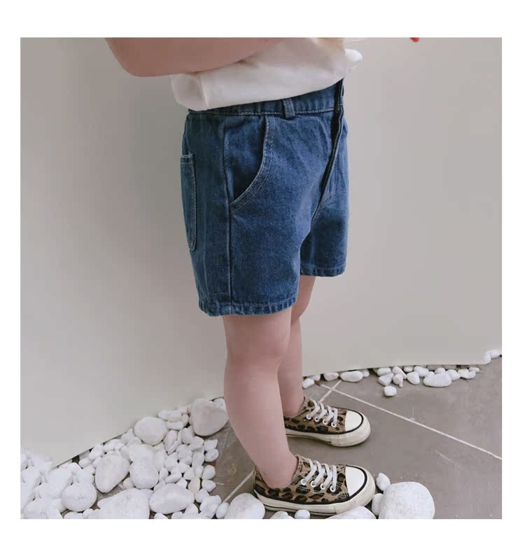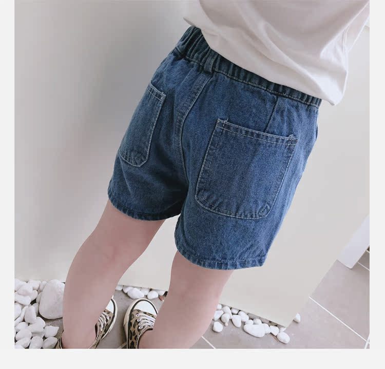 2019夏季新款 兒童短褲熱褲個性休閑褲 女童寶寶純色水洗牛1入