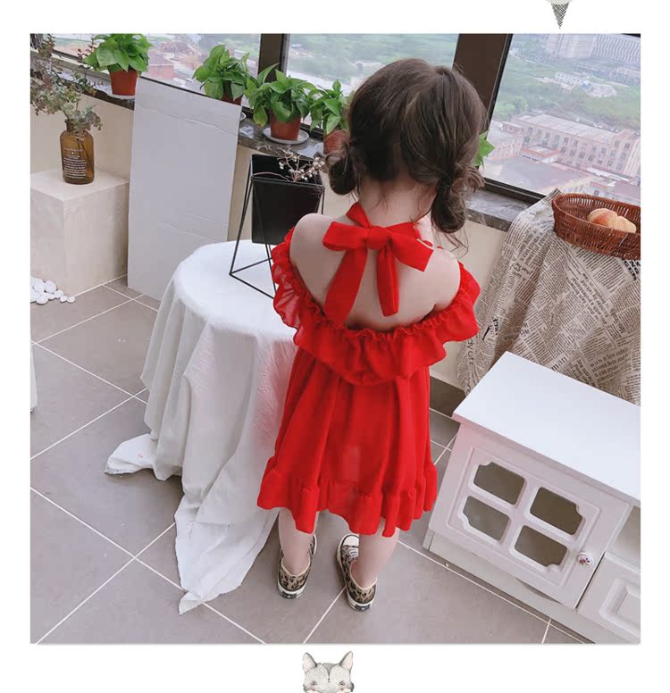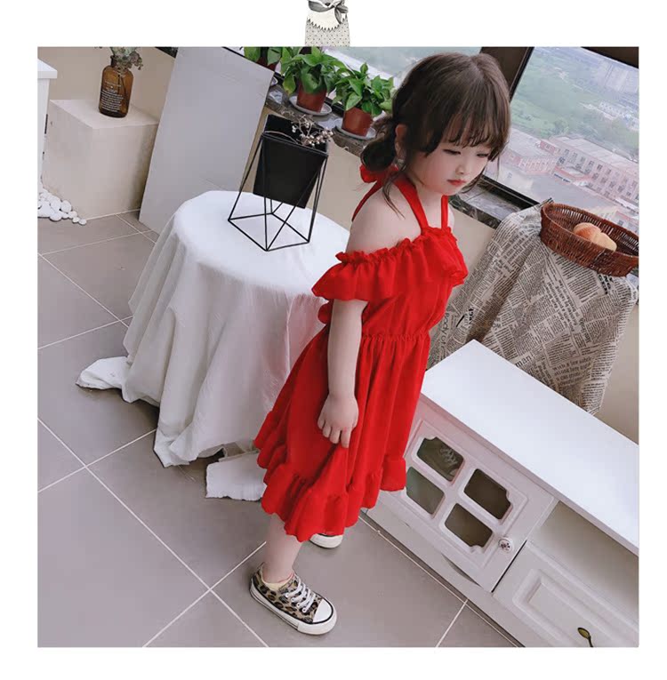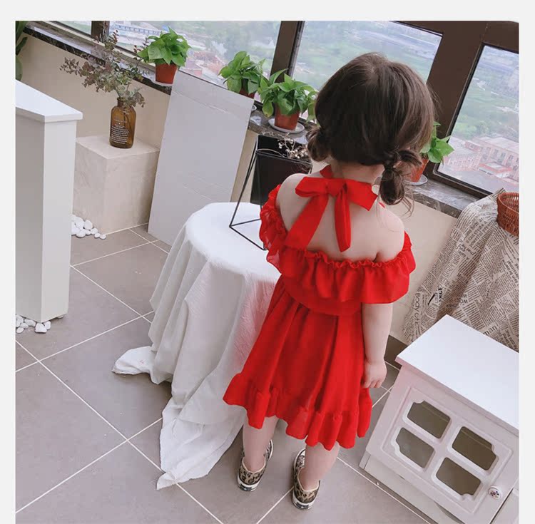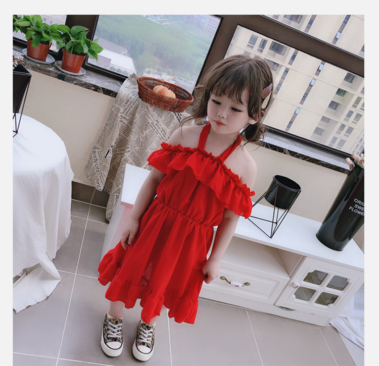 2019夏季新款 女童寶寶純色一字肩吊帶裙 中小童氣質修身連衣裙1入