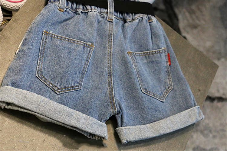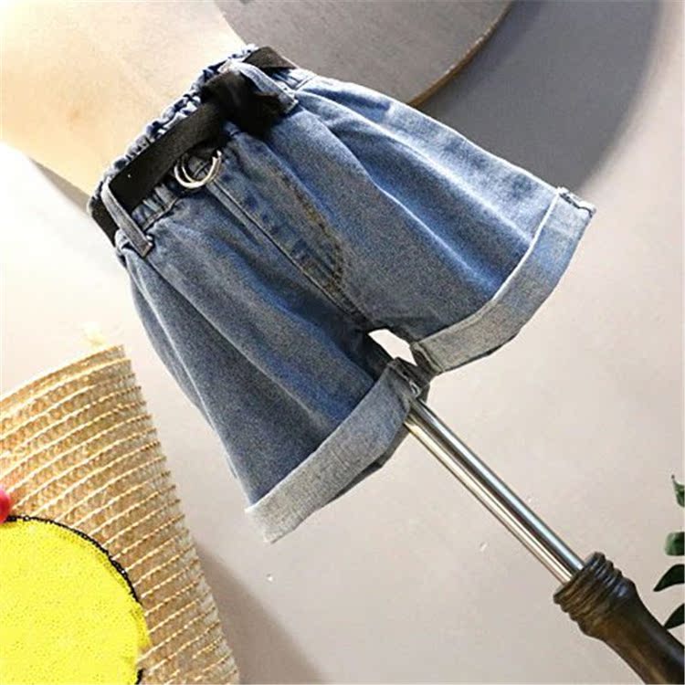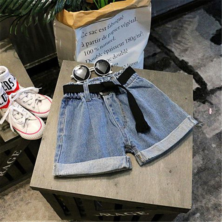 2019夏季新款女童寶寶簡約氣質純色童褲 中小童休閑帥氣牛仔短褲1入