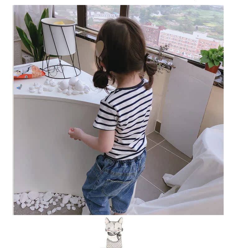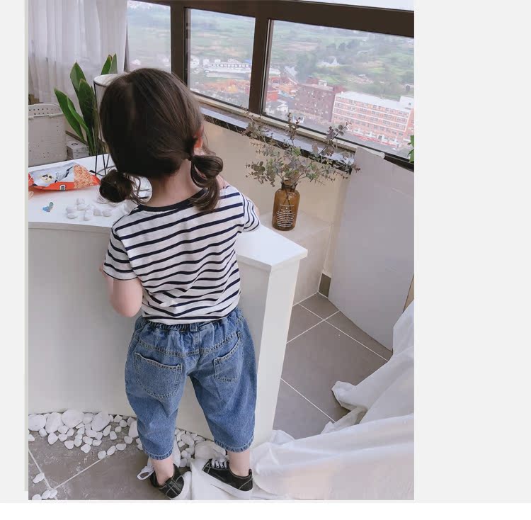2019夏季男女童寶寶休閑圓領上衣 中小童舒適條紋經典短袖T恤1入