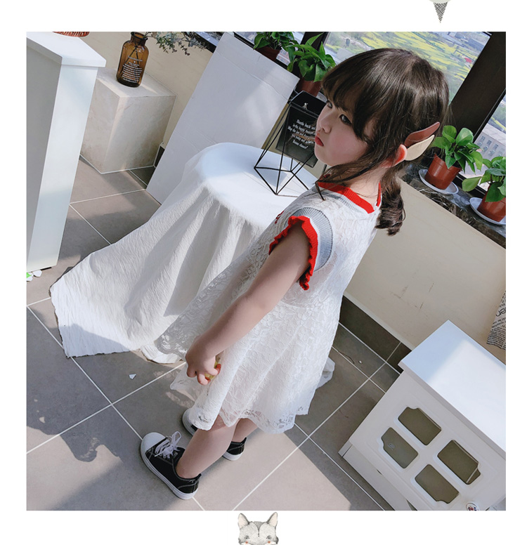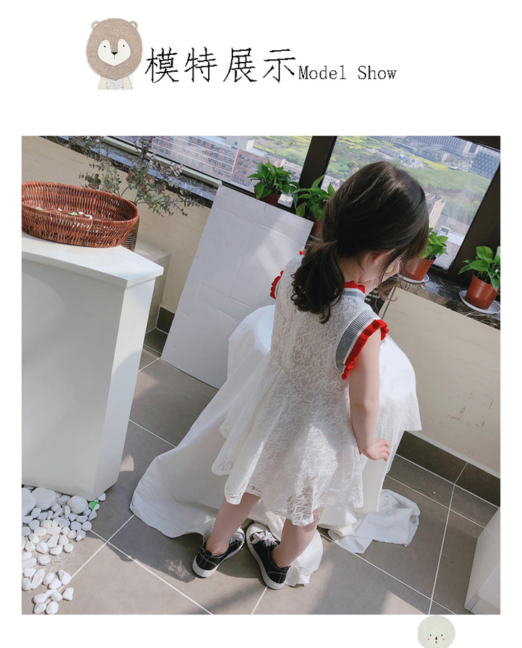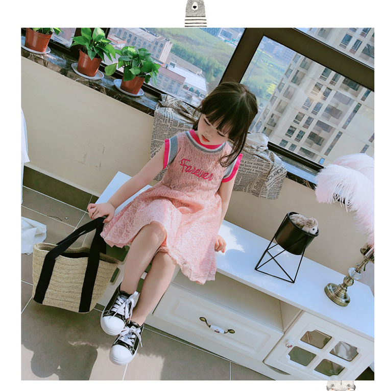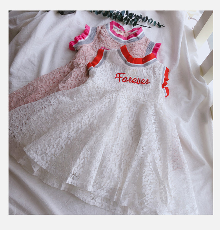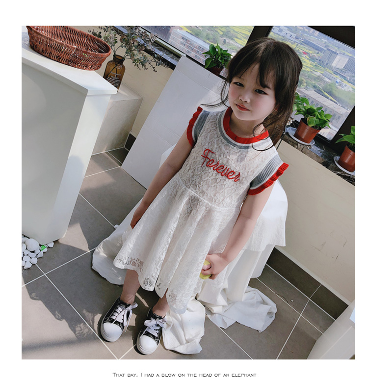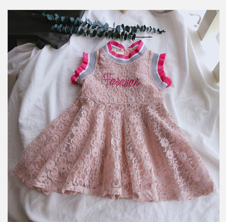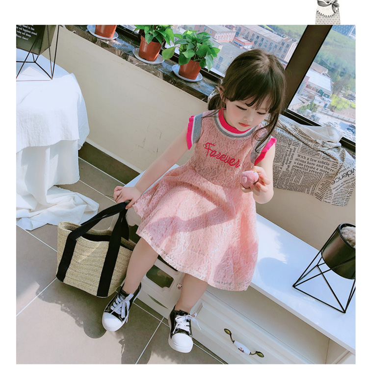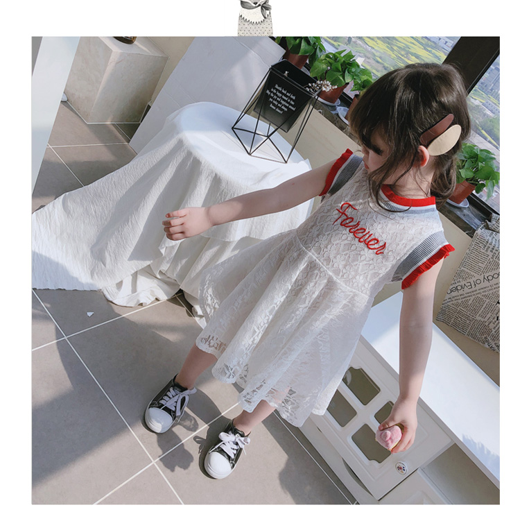 2019夏季新款 女童花邊連衣裙 女寶寶可愛甜美無袖字母印花背心裙1入