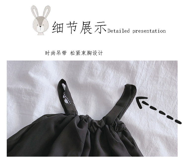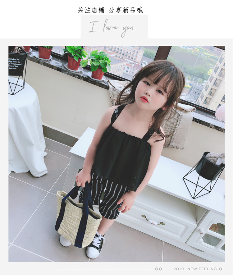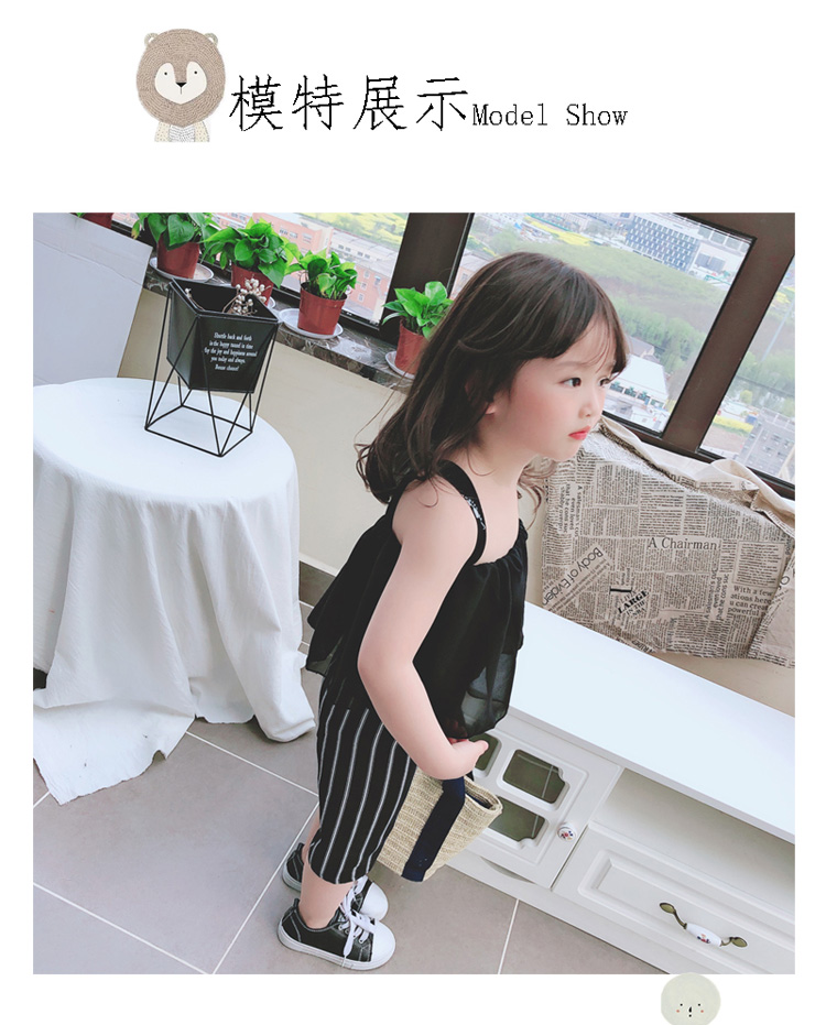 2019夏季新款 兒童小清新甜美雪紡吊帶+女童寶寶條紋五分褲套裝1入