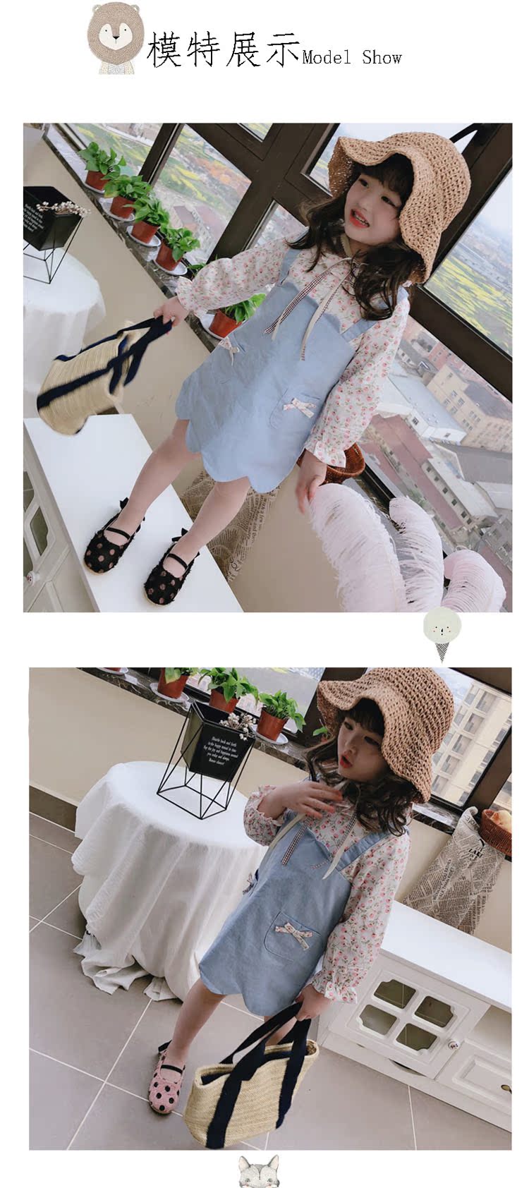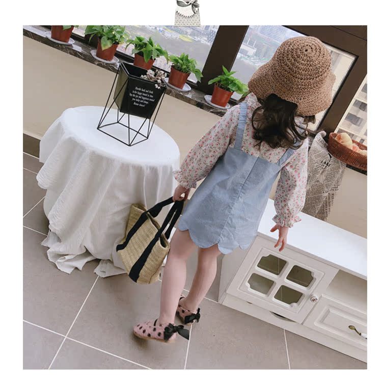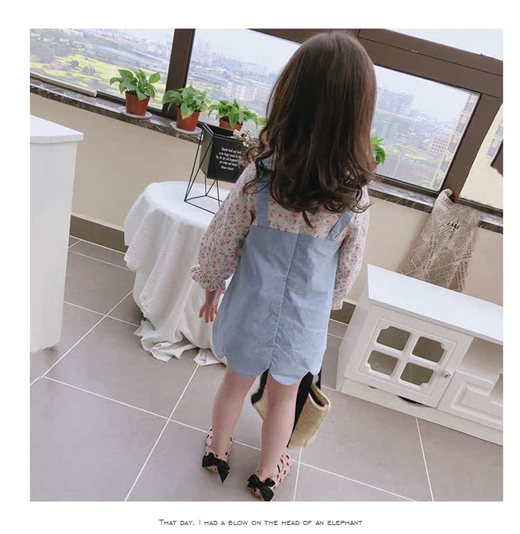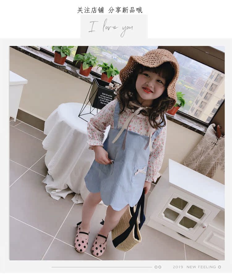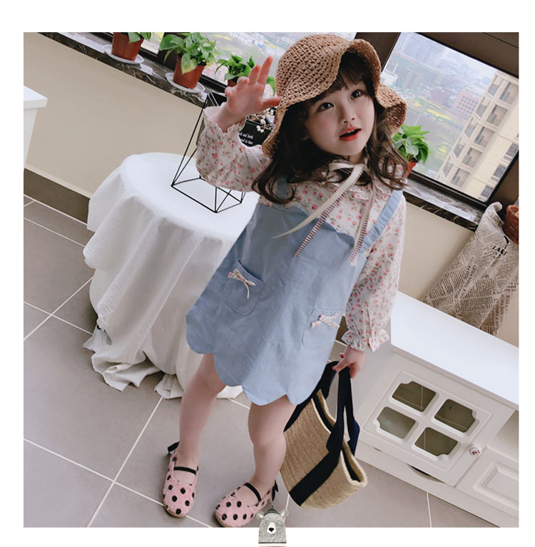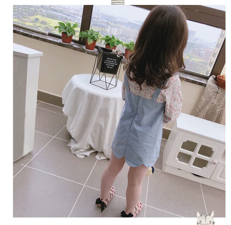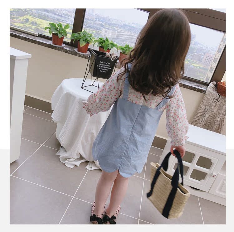 2019童裝春秋季 中小童印花拼接款連衣裙 女童寶寶小清新裙子1入