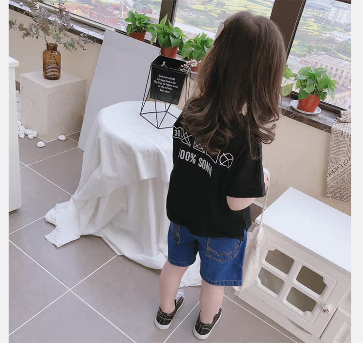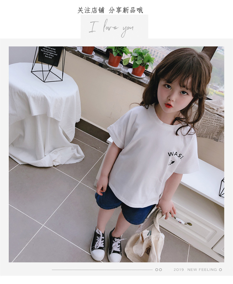 2019夏季新款 中小童可愛圖案裝飾T恤 男女童圓領短袖打底衫1入