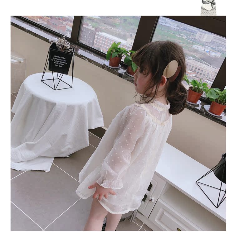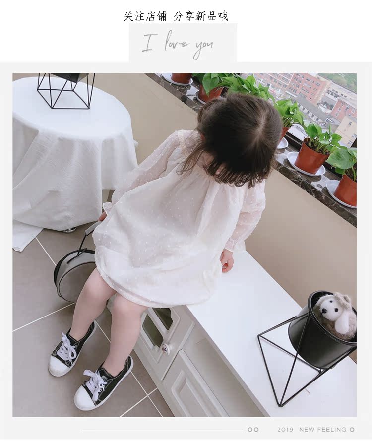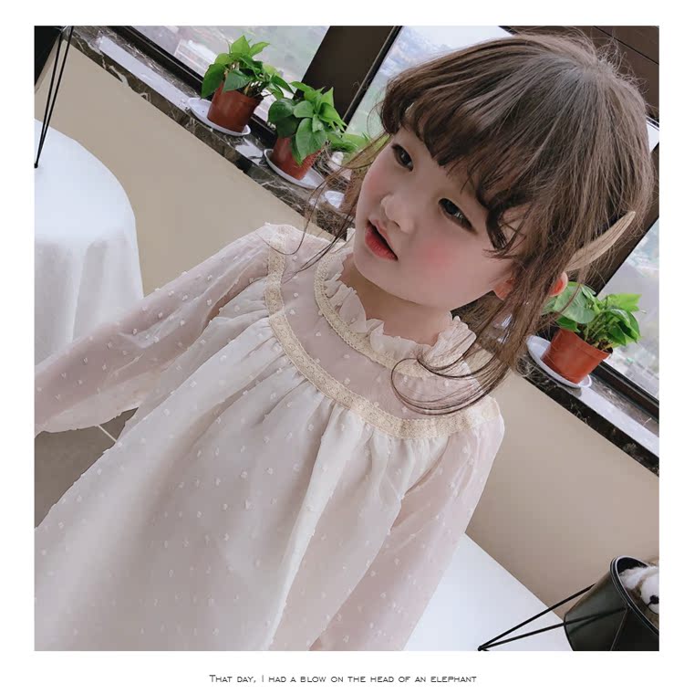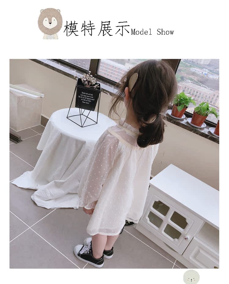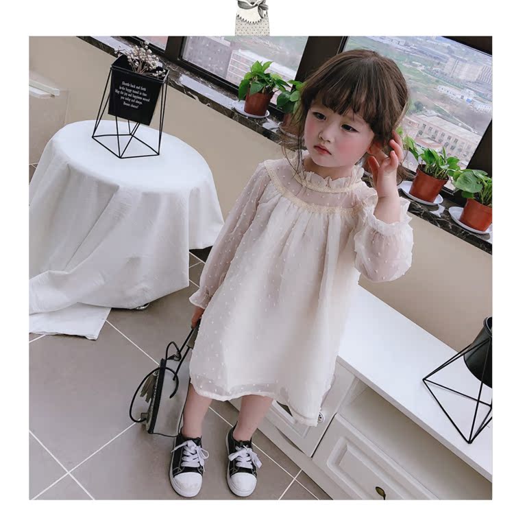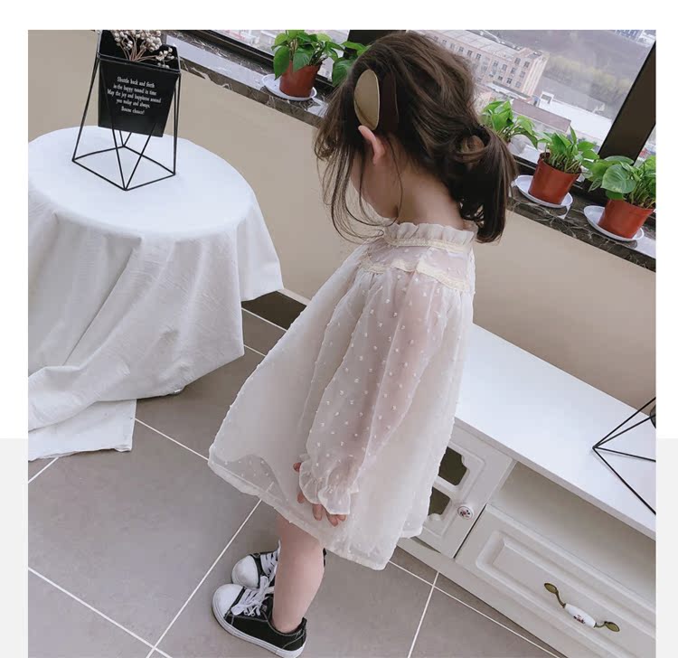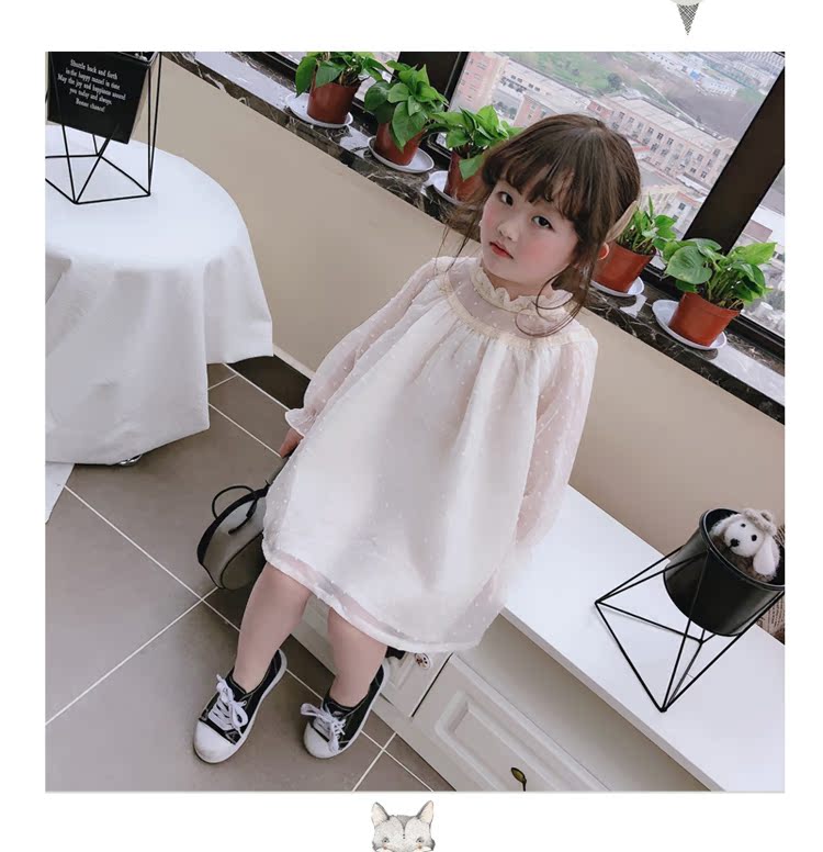 2019夏季新款小仙女甜美風連衣裙 女童寶寶木耳領網紗長袖童裙1入
