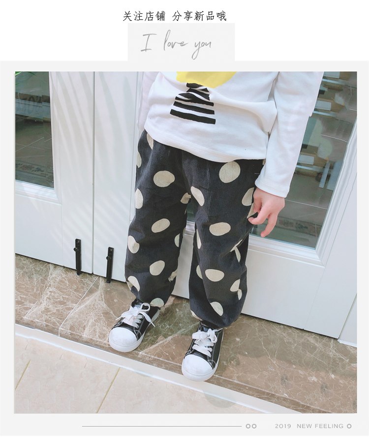 2019春秋季新款中小童時尚個性波點百搭休閑褲潮 兒童舒適燈籠褲1入