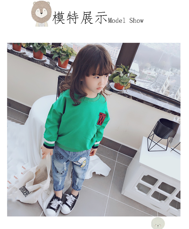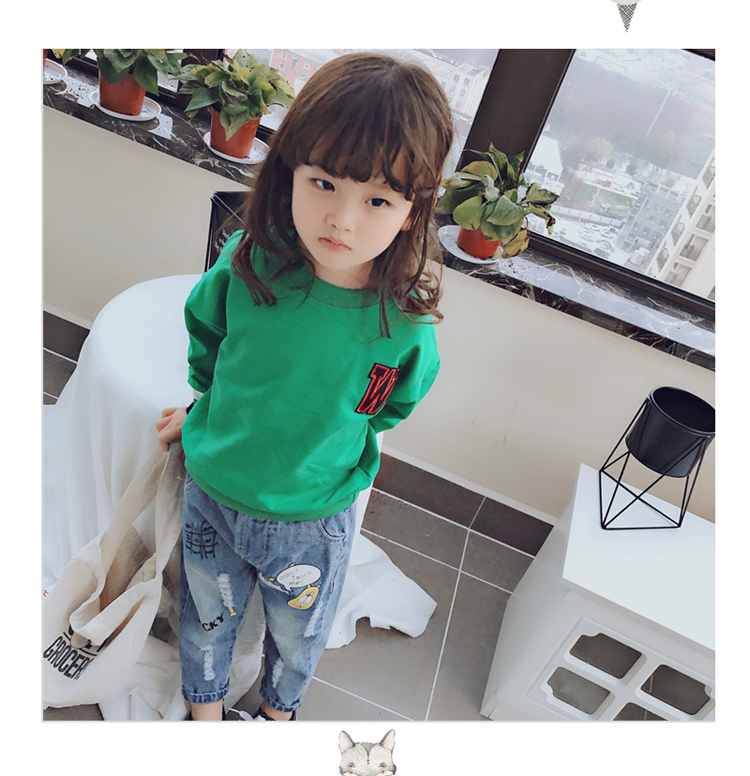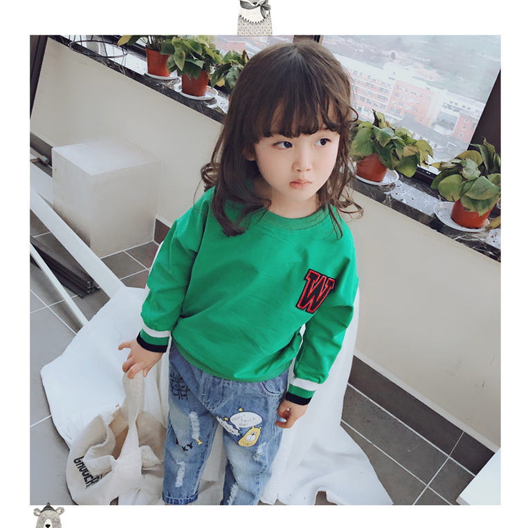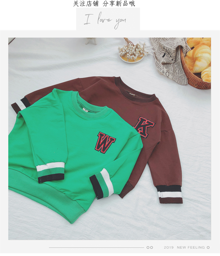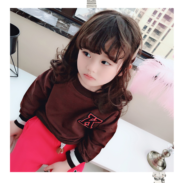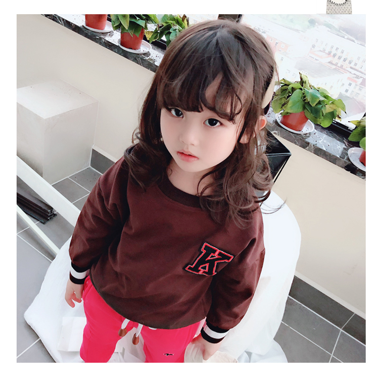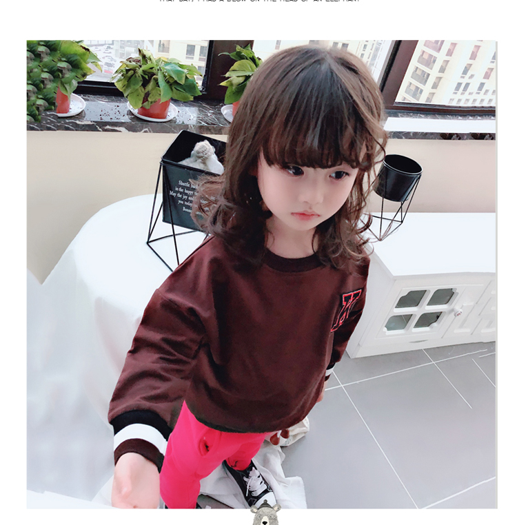 2019春秋季新款兒童字母氣質長袖套頭衫衛衣 女童休閑圓領上衣1入
