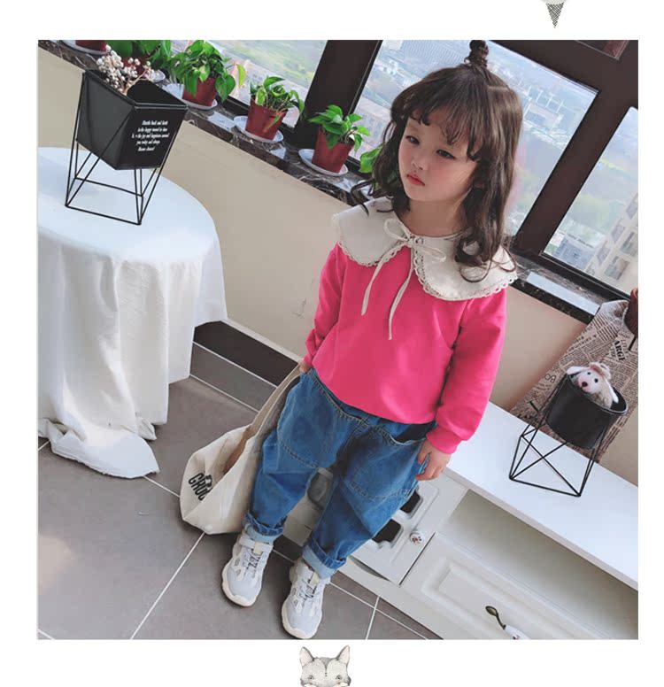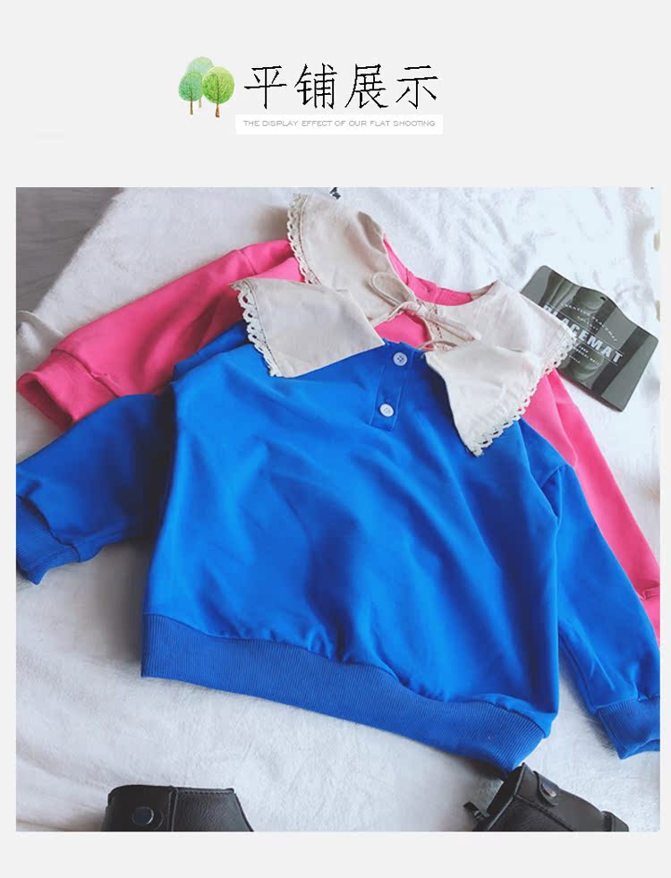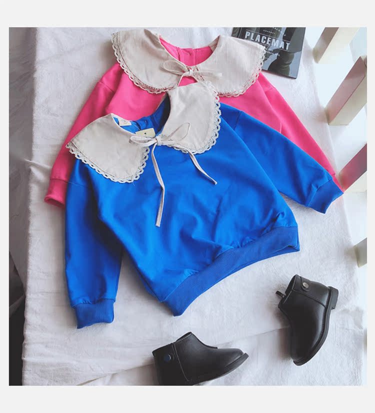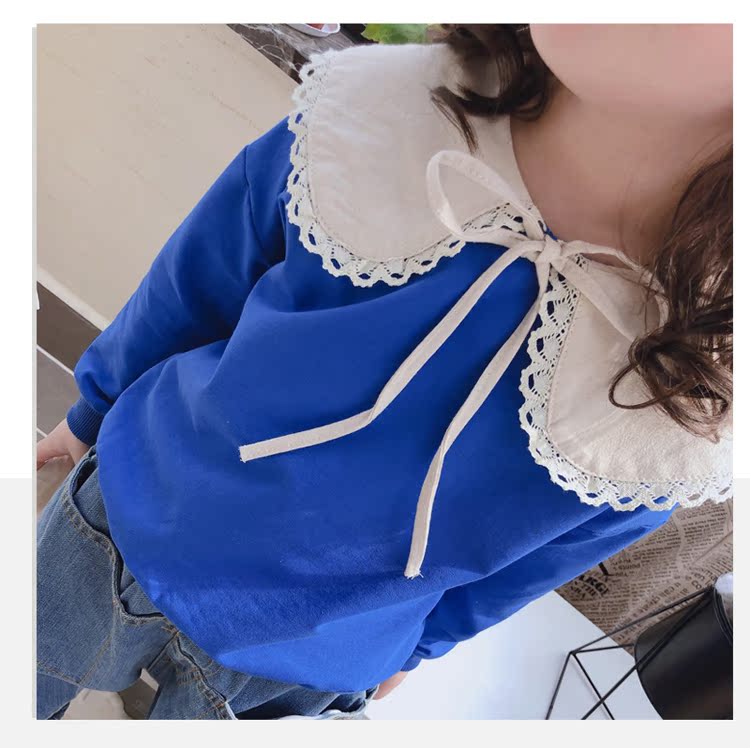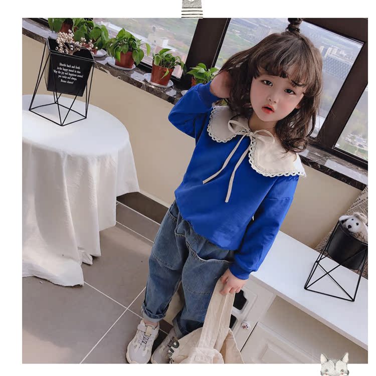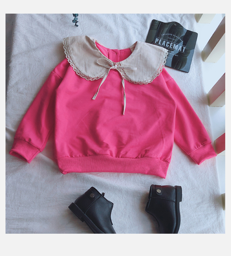 2019春季新款 兒童大翻領上衣女童寶寶娃娃蕾絲領拼接甜美衛衣1入