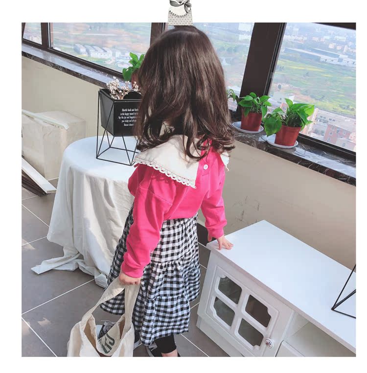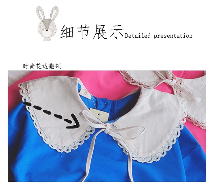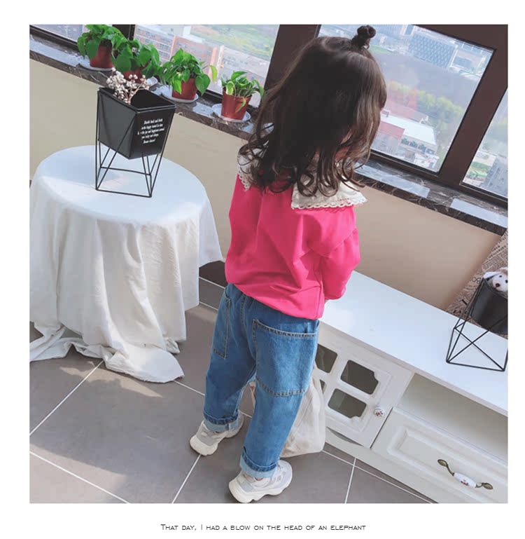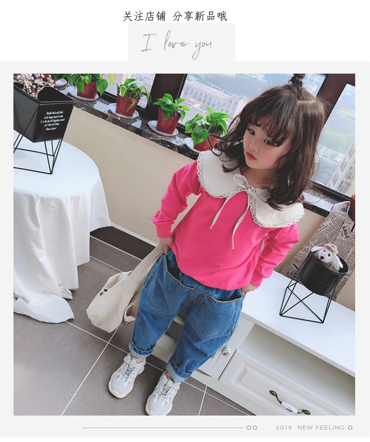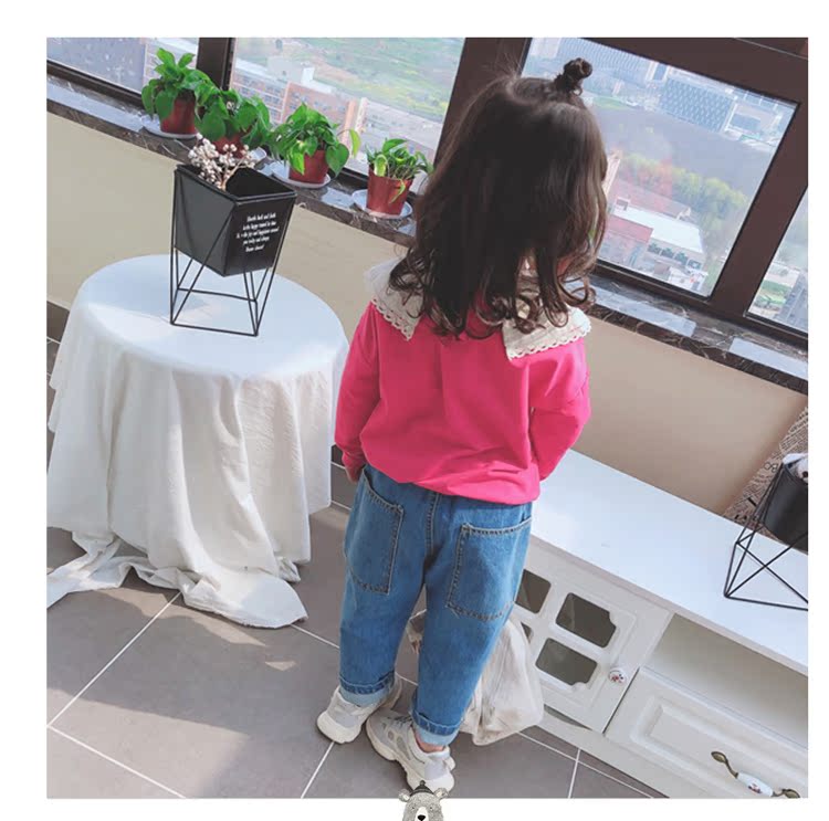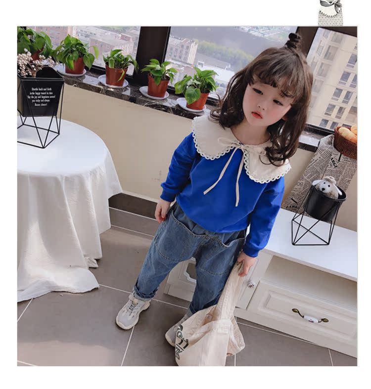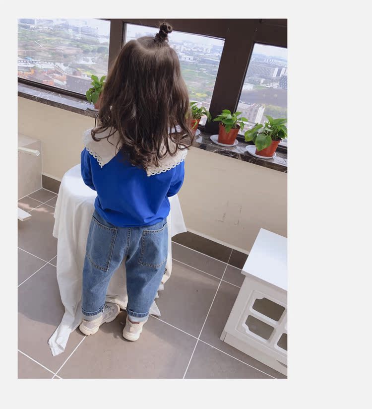 2019春季新款 兒童大翻領上衣女童寶寶娃娃蕾絲領拼接甜美衛衣1入