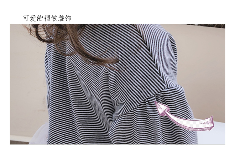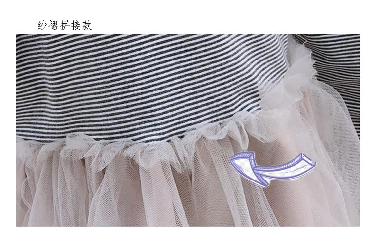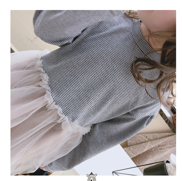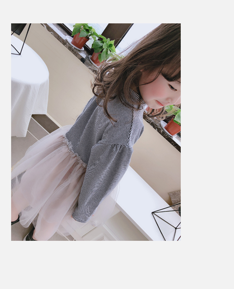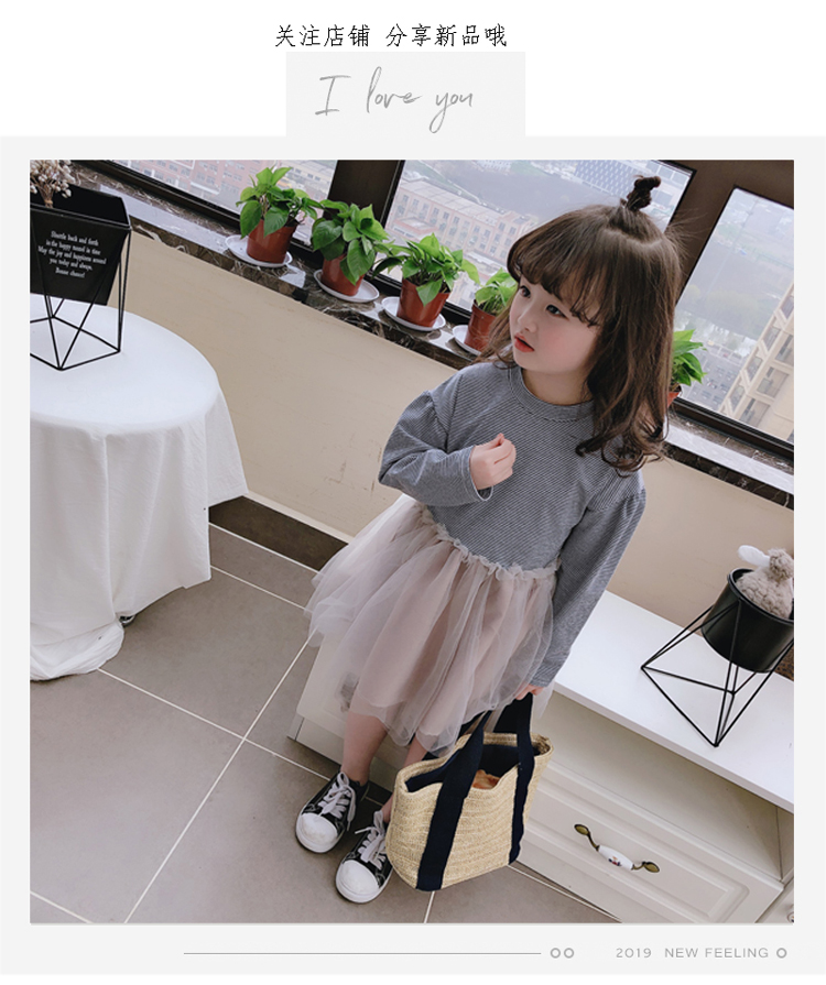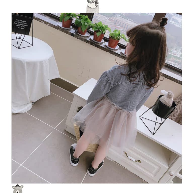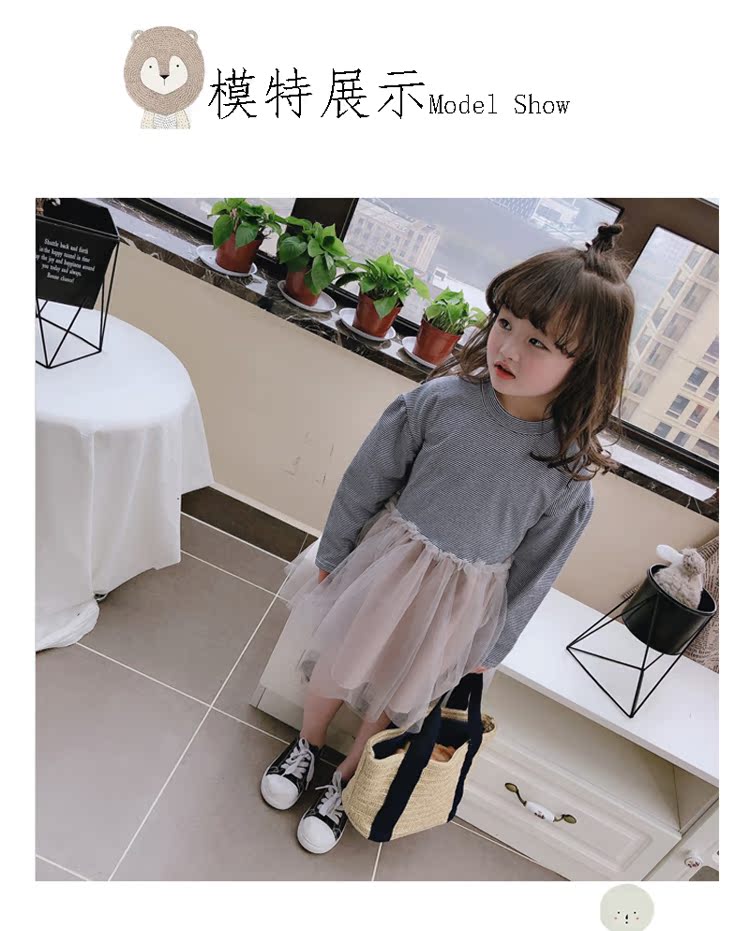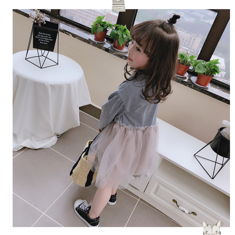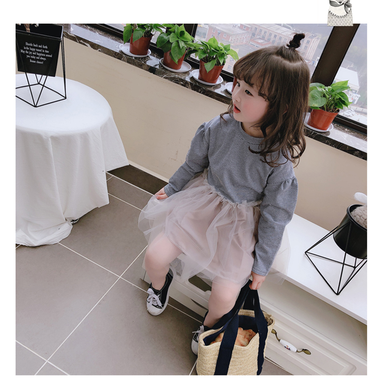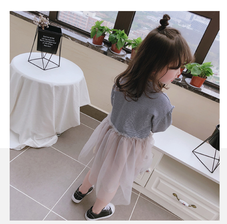 2019童裝春秋新款中小童舒適休閑條紋網紗拼接款 洋氣女寶寶裙子1入