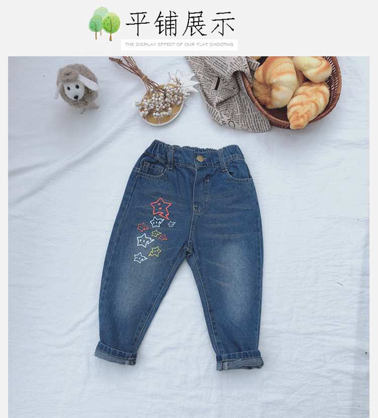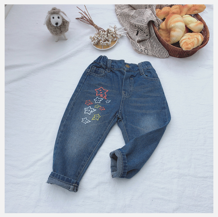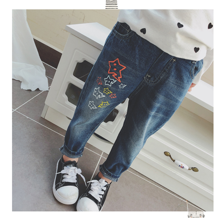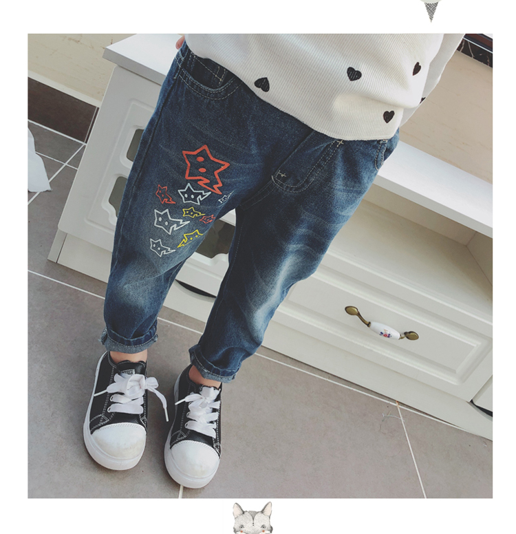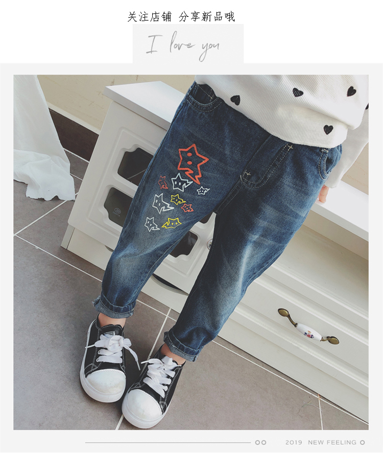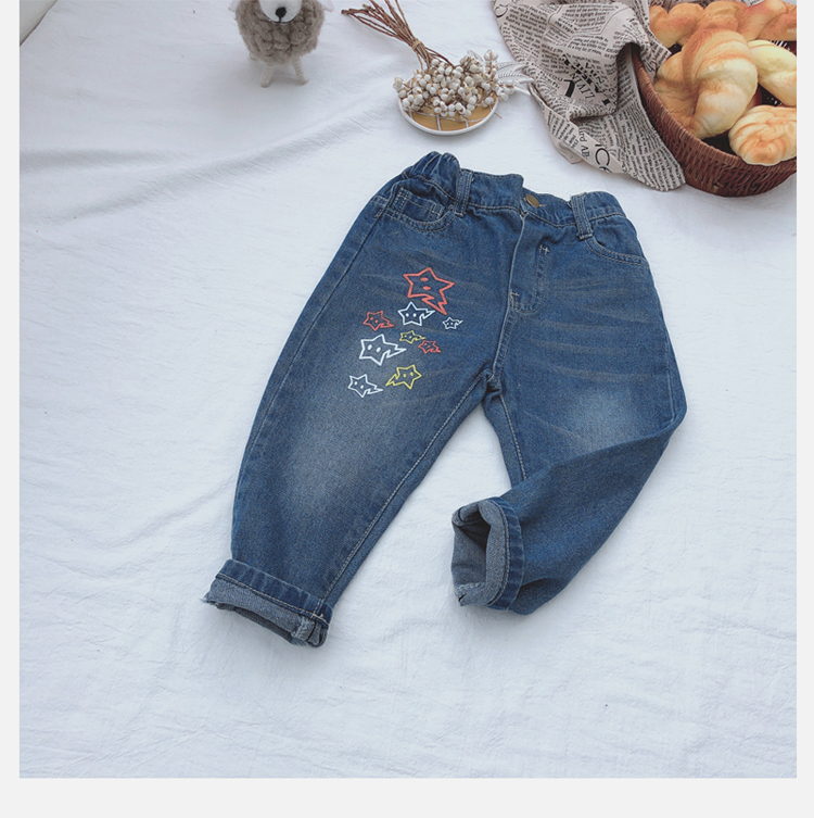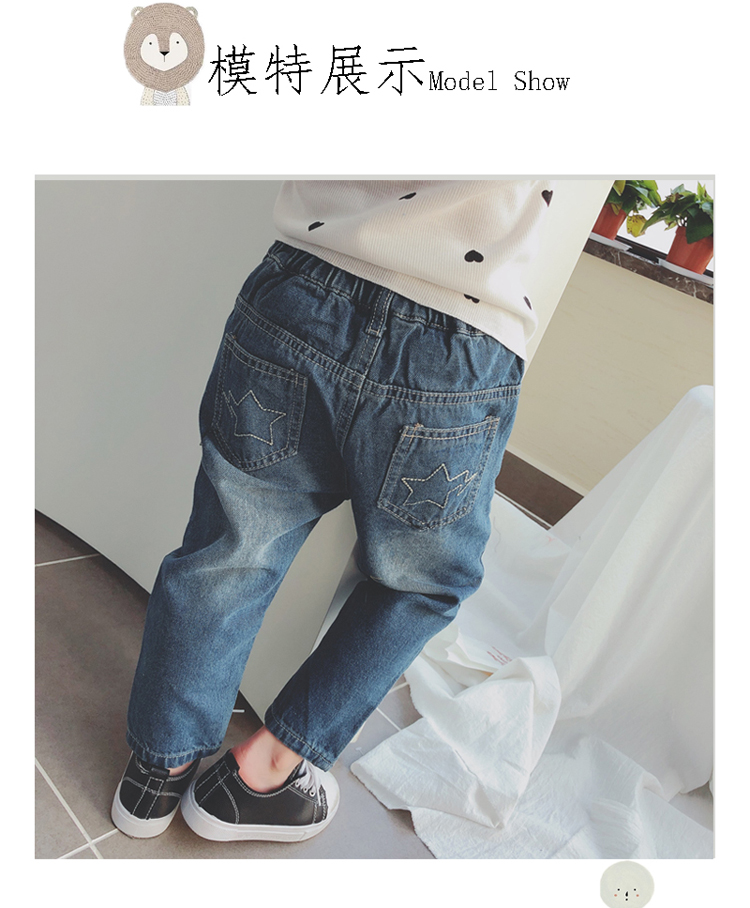 2019春季新款 中小童皮筋腰帶牛仔褲 男女童寶寶星星帥氣小腳褲1入
