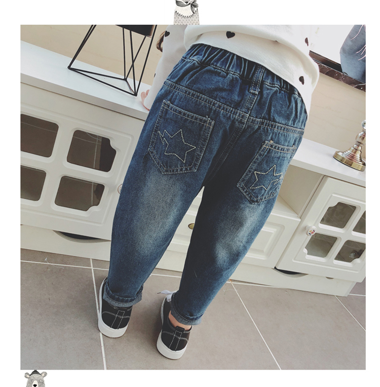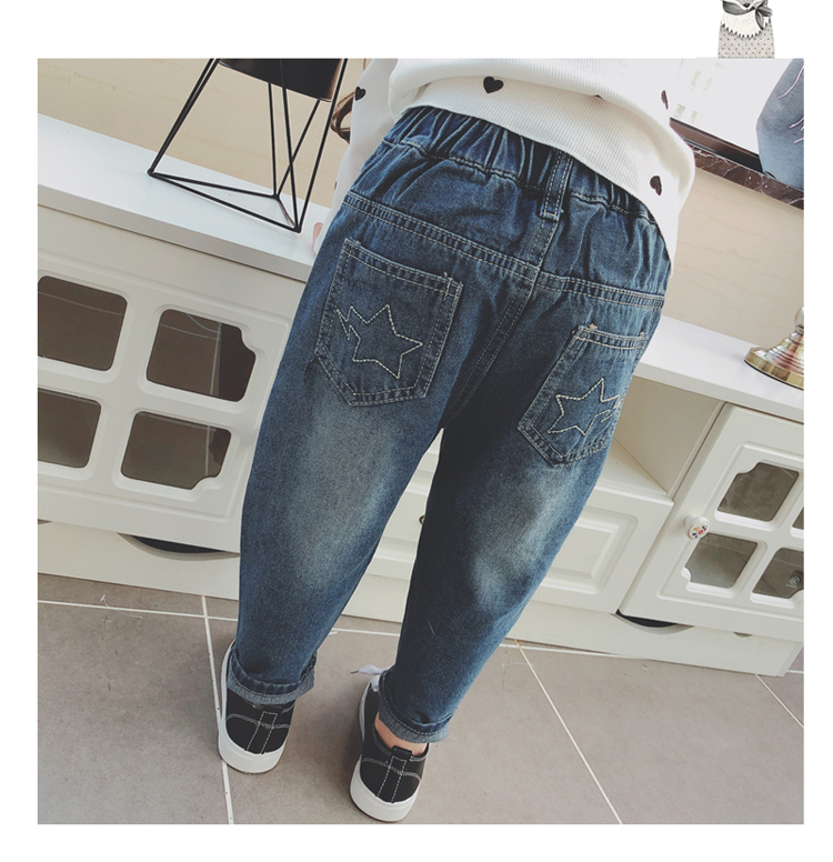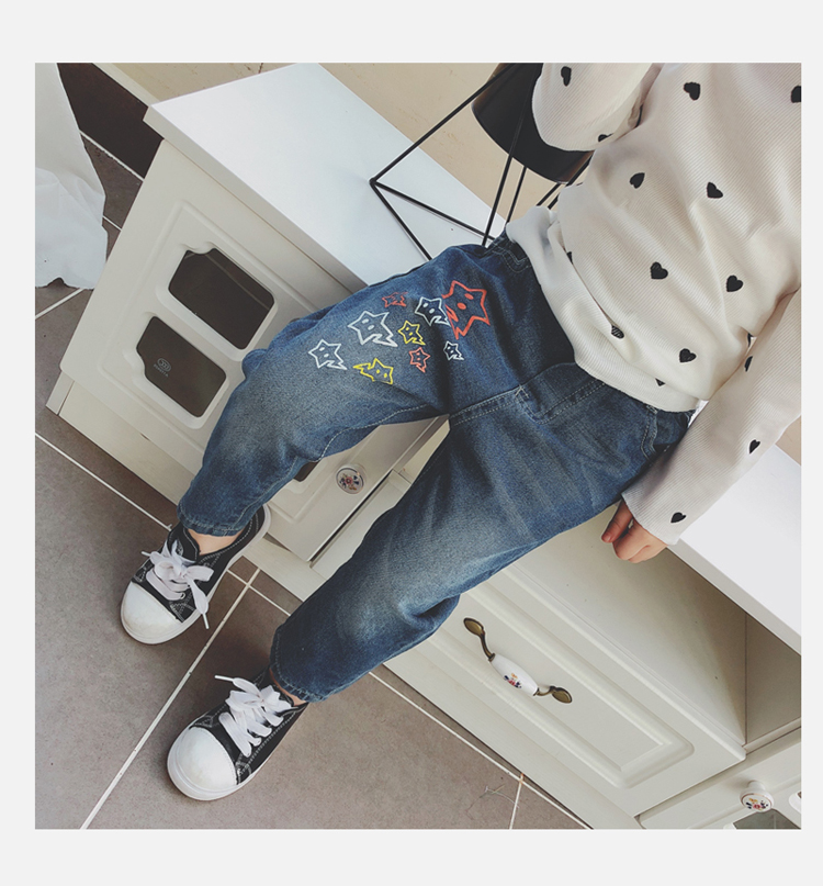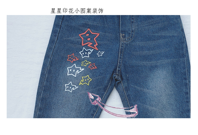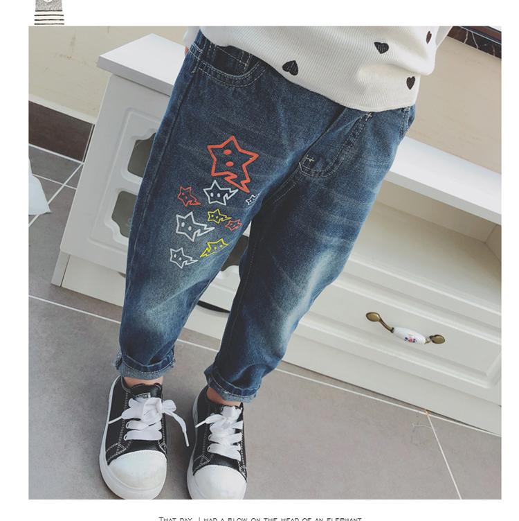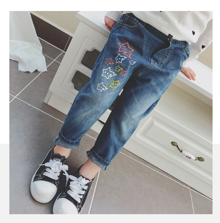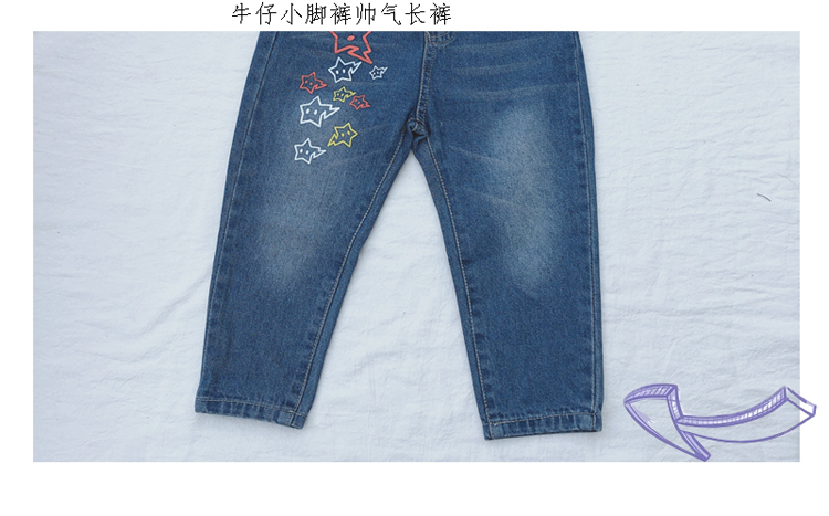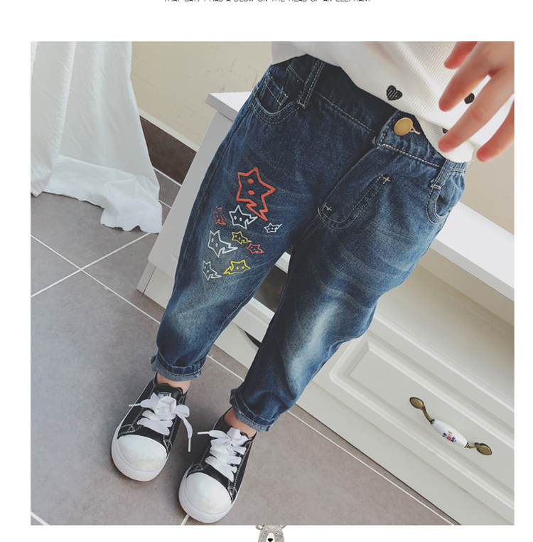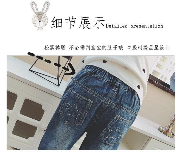 2019春季新款 中小童皮筋腰帶牛仔褲 男女童寶寶星星帥氣小腳褲1入