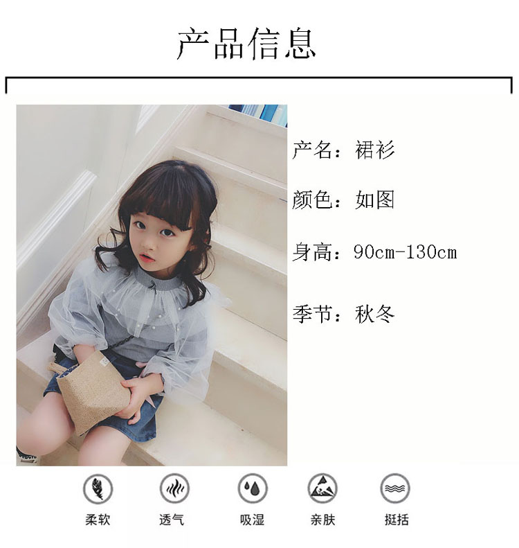 2019中小童春秋季新款條紋蓬蓬袖上衣+牛仔裙兩件套女休閑裙套裝1入