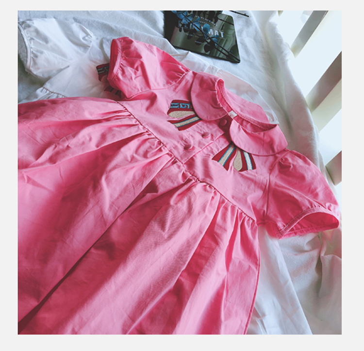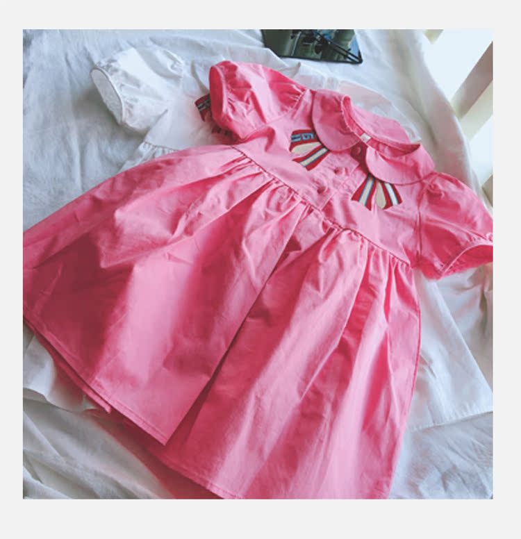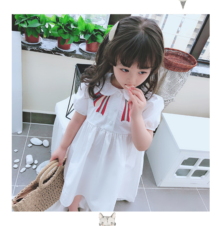 2019夏季新款 女童小清新連衣裙 中小童可愛甜美翻領學院風裙子1入