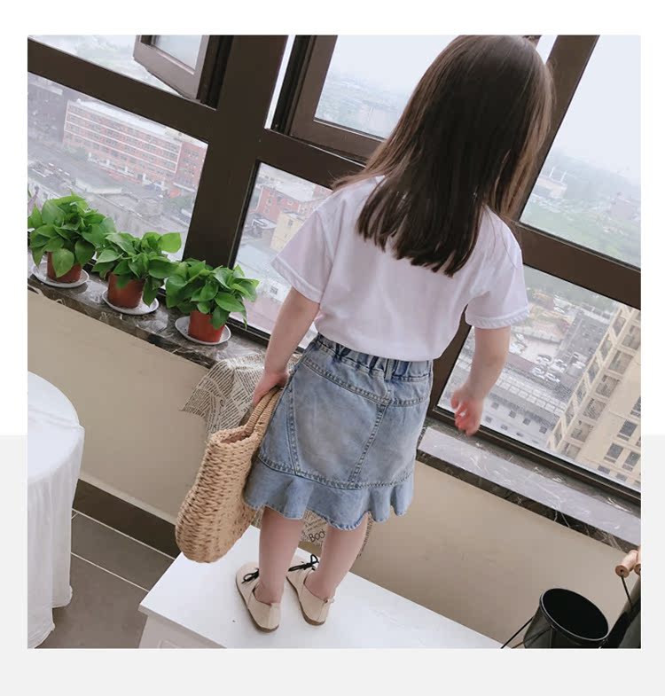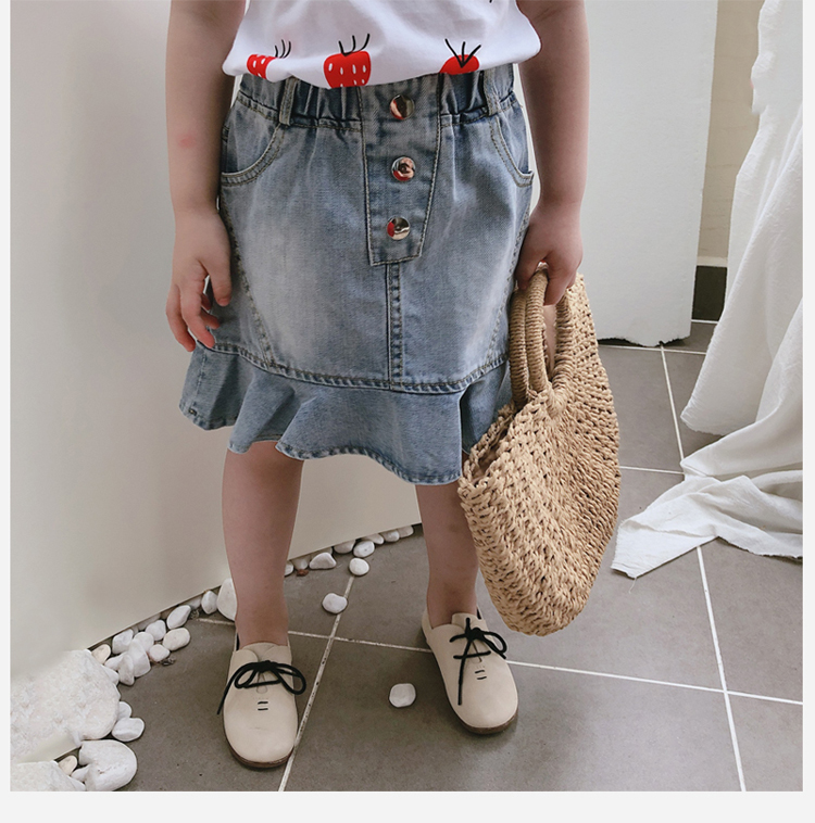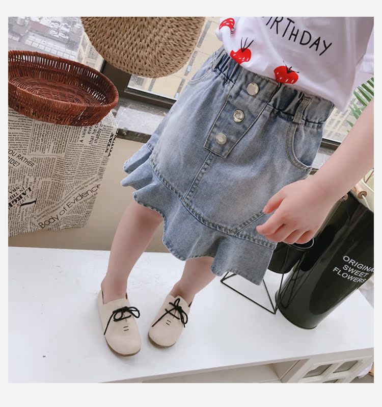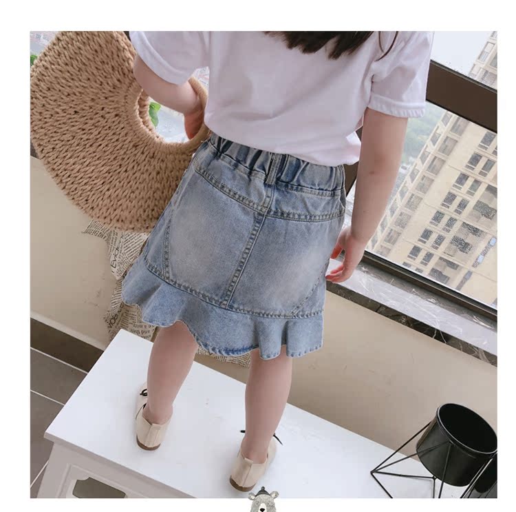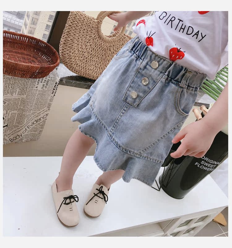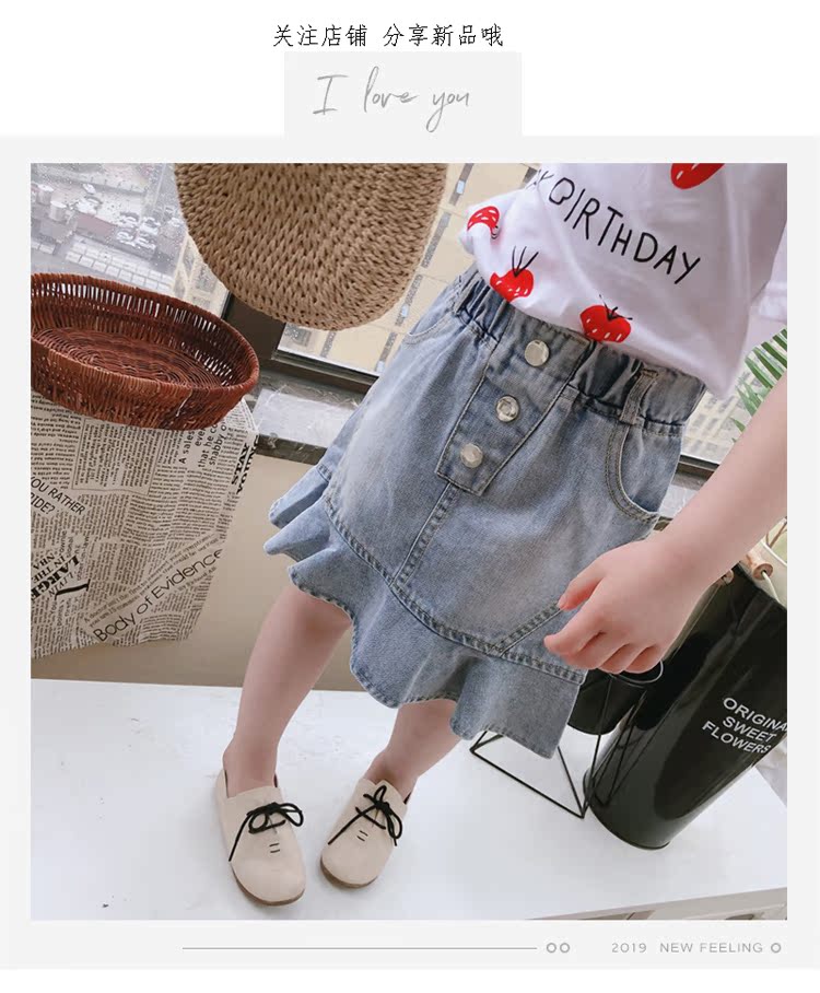 2019童裝夏季新款 女童寶寶可愛百褶公主裙 兒童洋氣牛仔半身裙1入