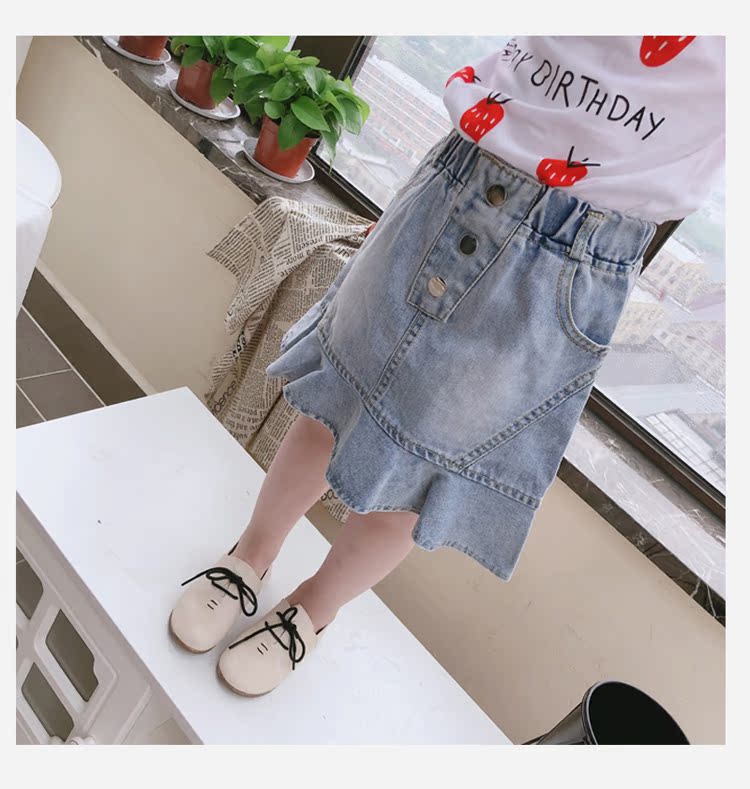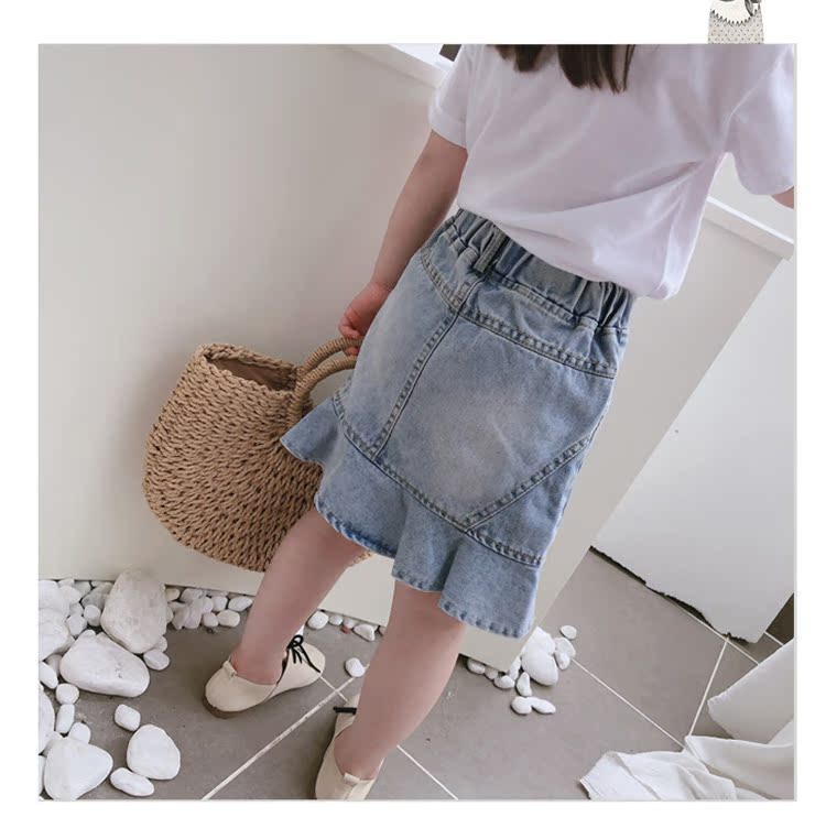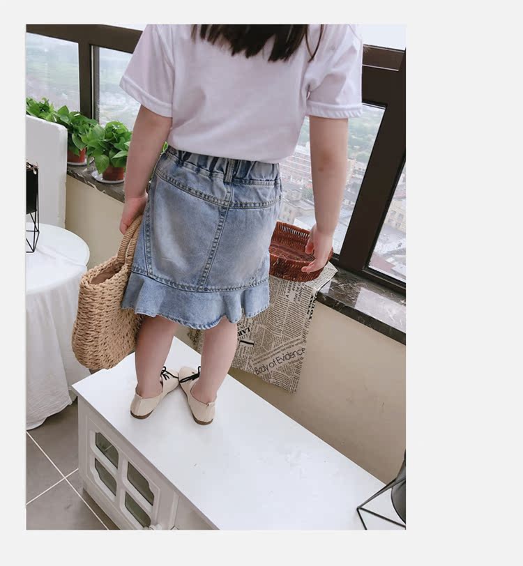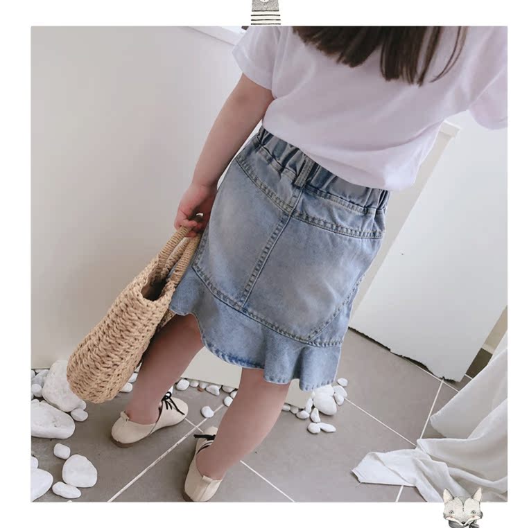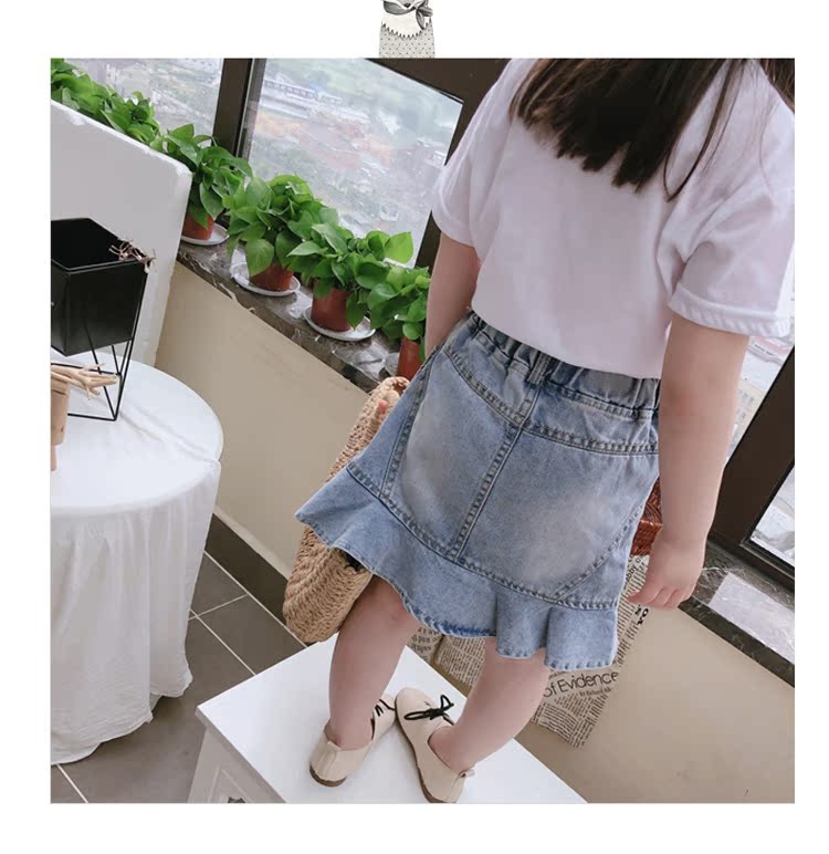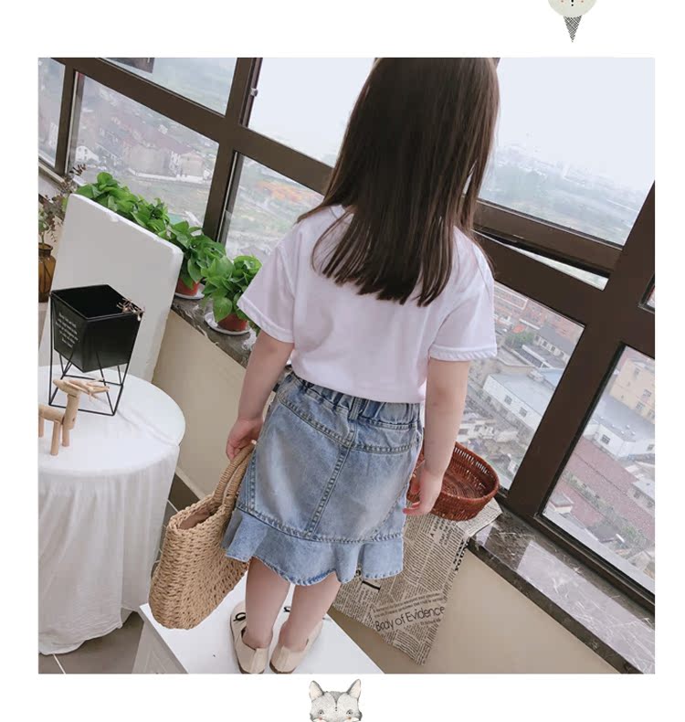 2019童裝夏季新款 女童寶寶可愛百褶公主裙 兒童洋氣牛仔半身裙1入