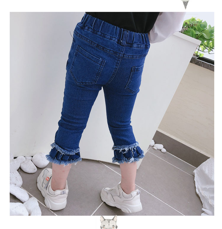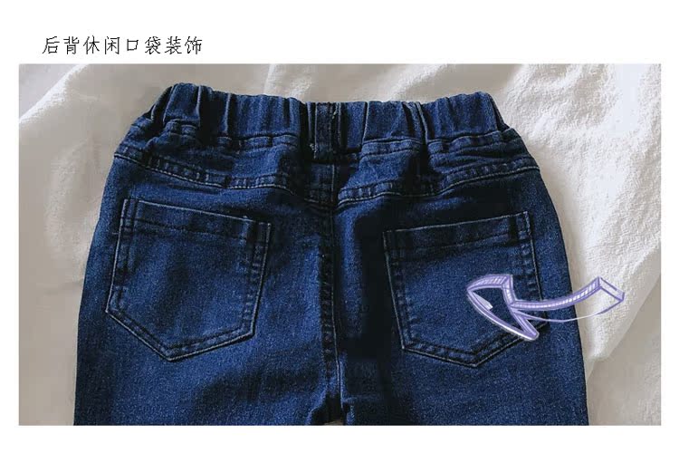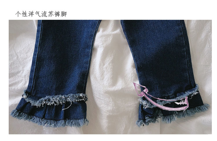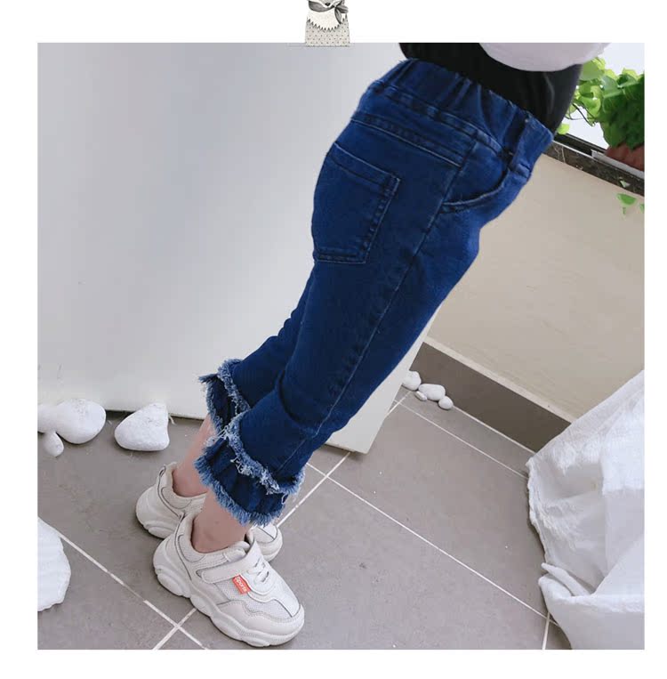 2019中小童春秋季新款 可愛甜美流蘇邊牛仔褲修身松緊腰百搭褲潮1入