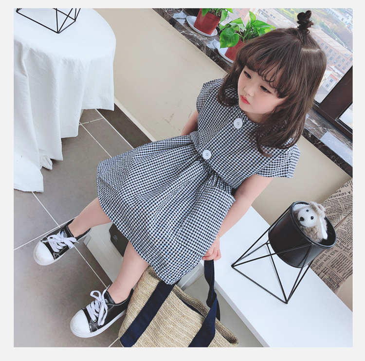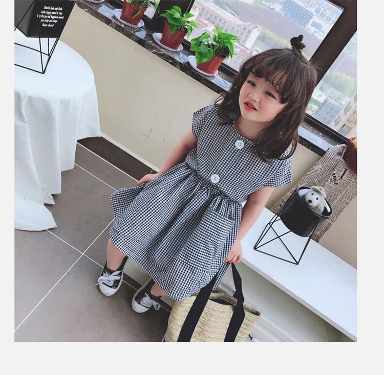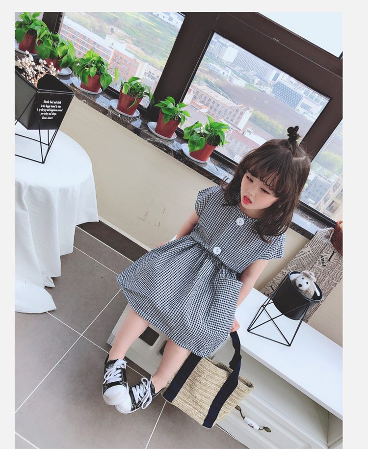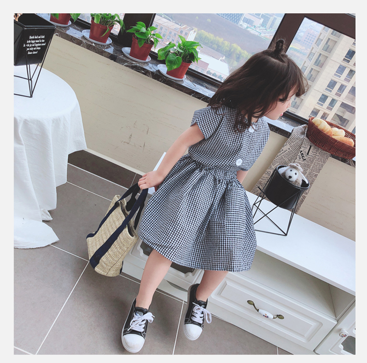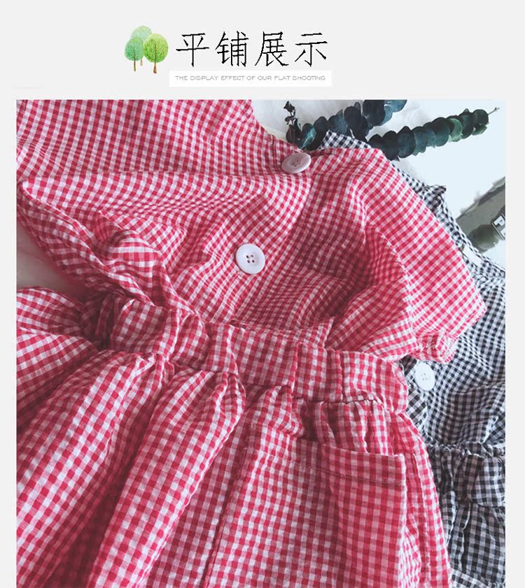2019兒童夏季田園風女童寶寶套裝裙子 兒童可愛甜美格子連衣裙 潮1入