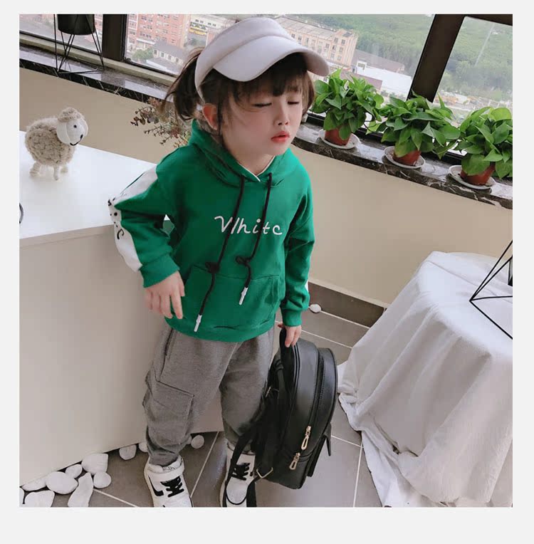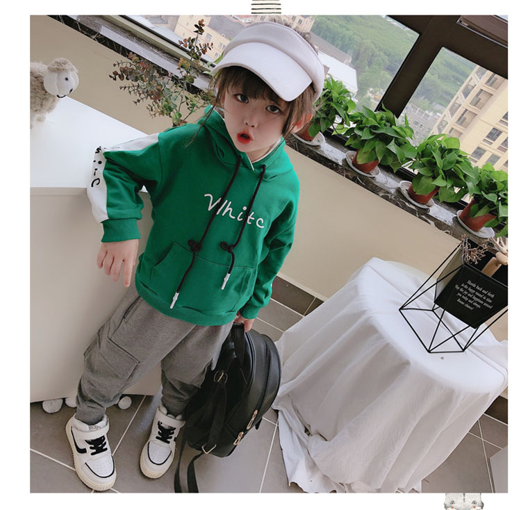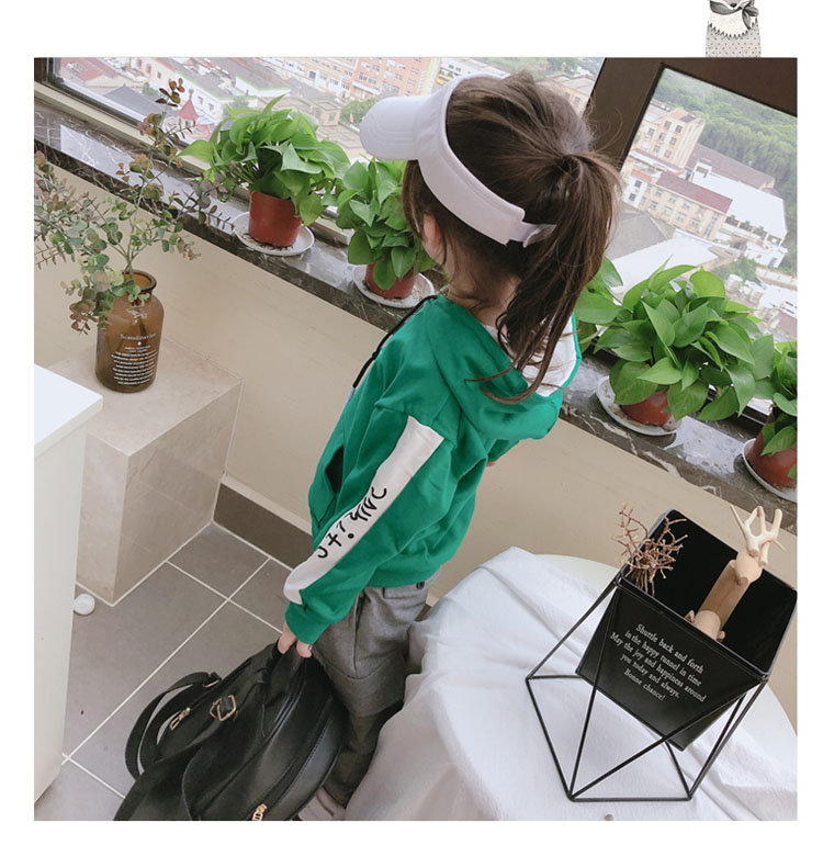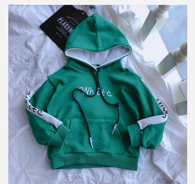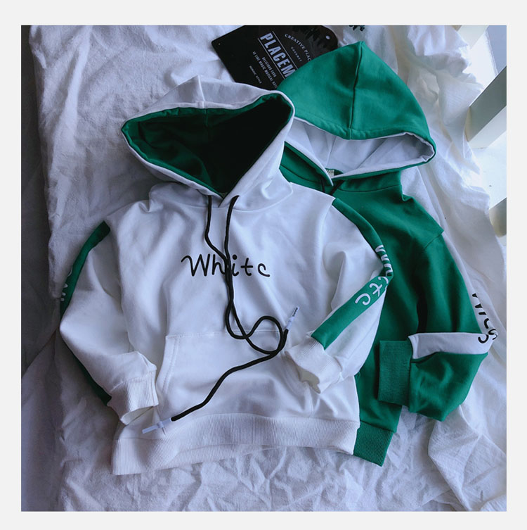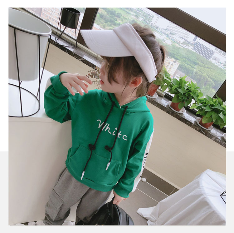 2019春秋季新款中小童拼接色兒童套頭上衣 男女童連帽字母衛衣1入