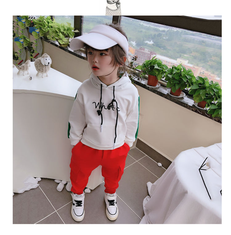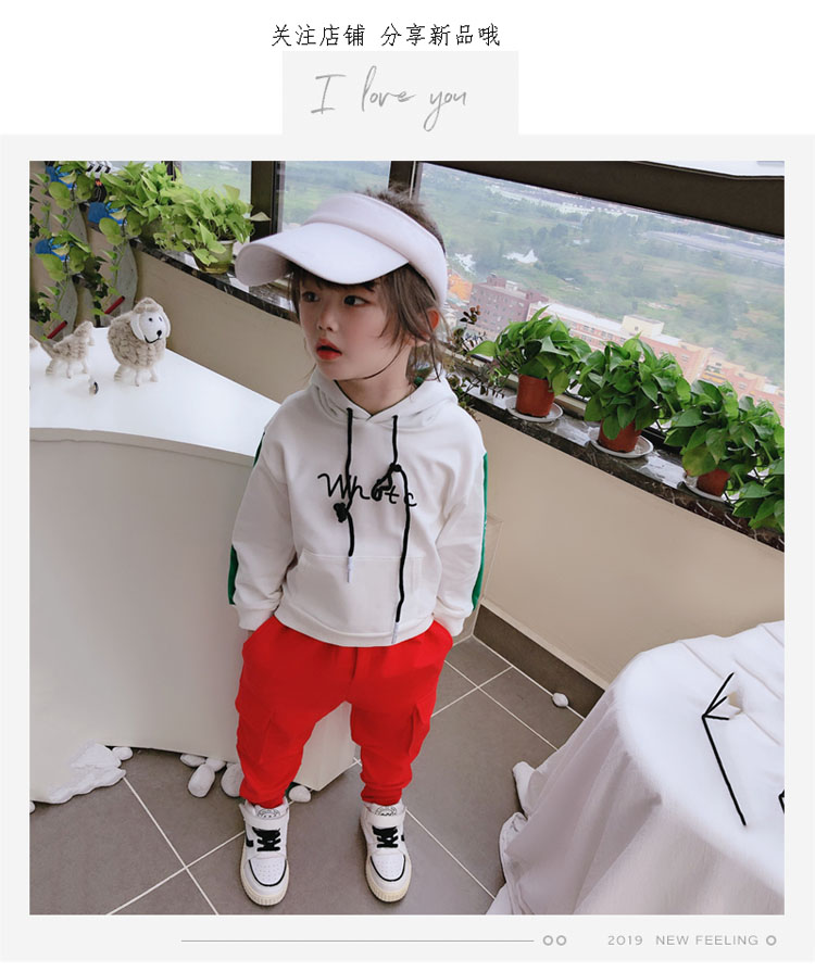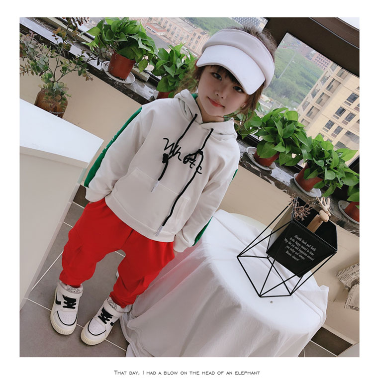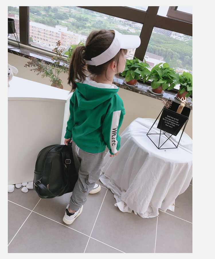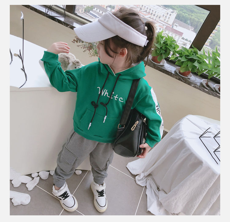 2019春秋季新款中小童拼接色兒童套頭上衣 男女童連帽字母衛衣1入