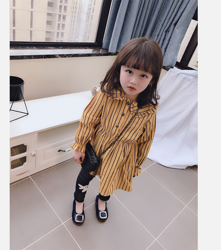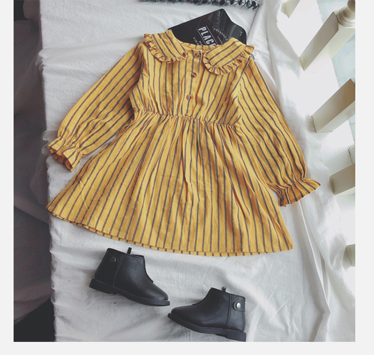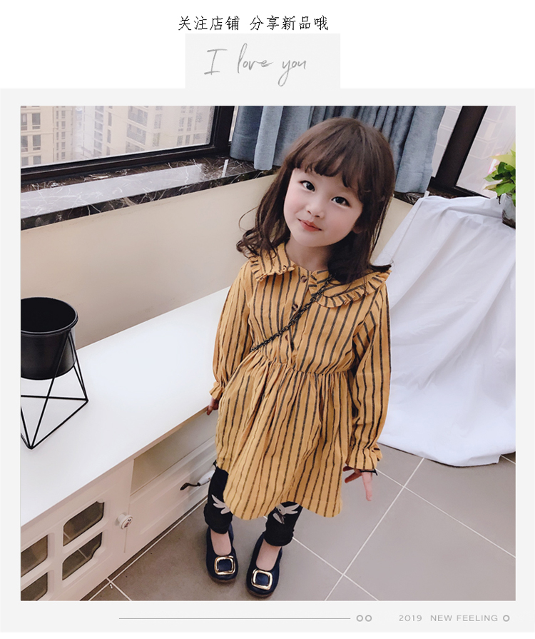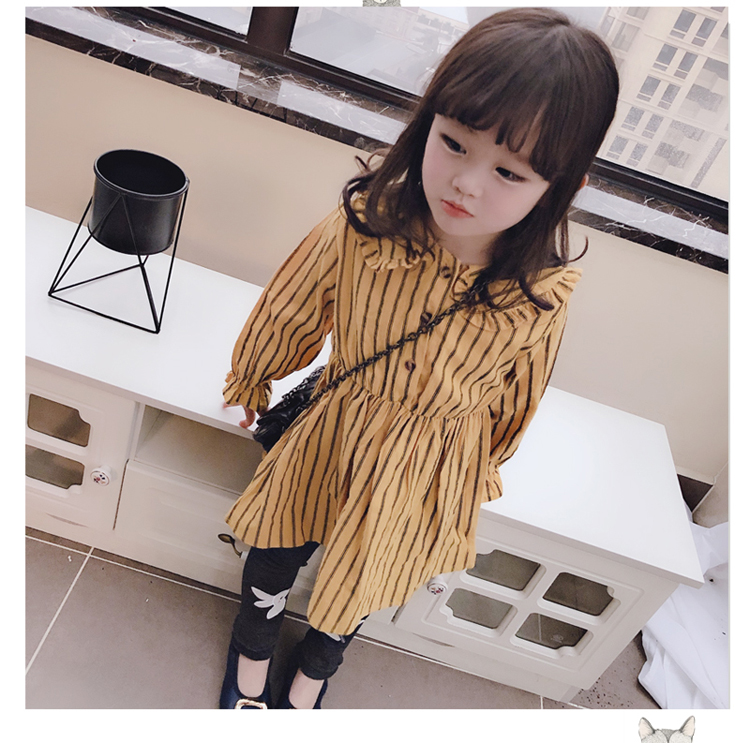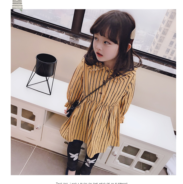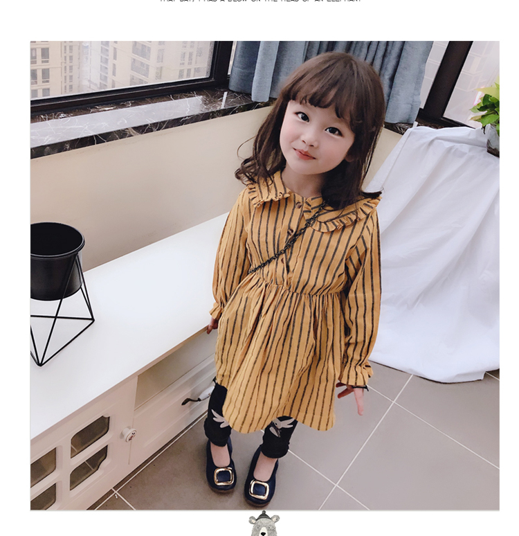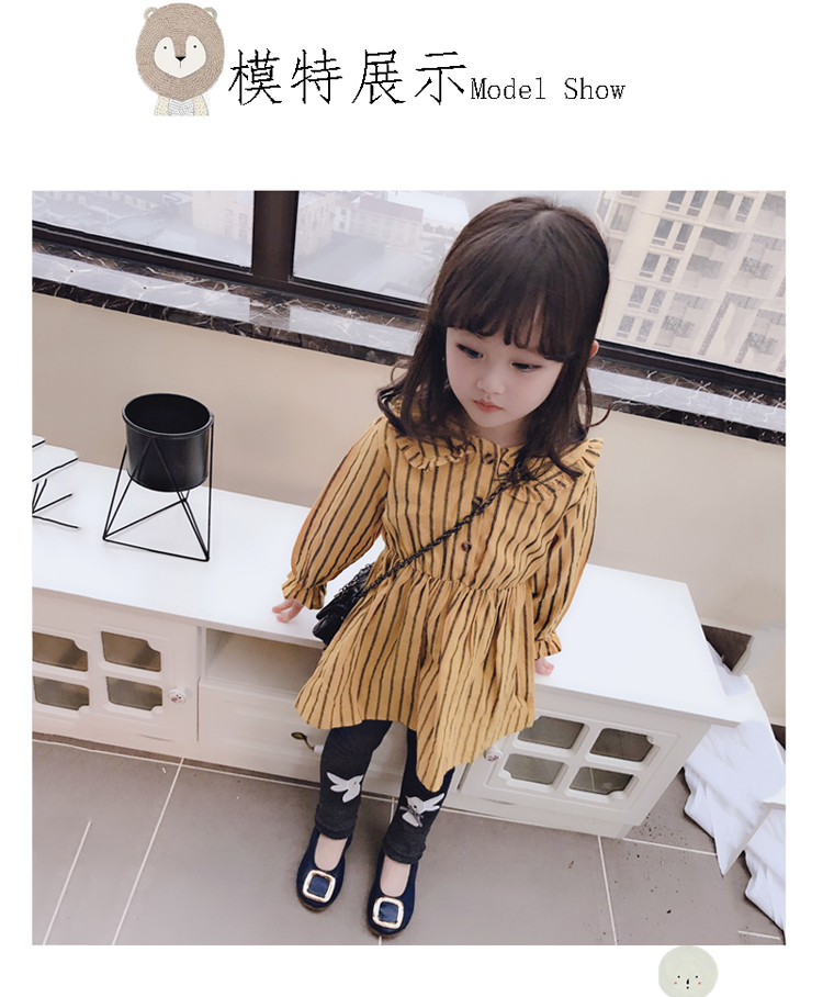 2019春季中小童連衣裙 女童寶寶條紋舒適連衣裙兒童簡約長袖裙子1入