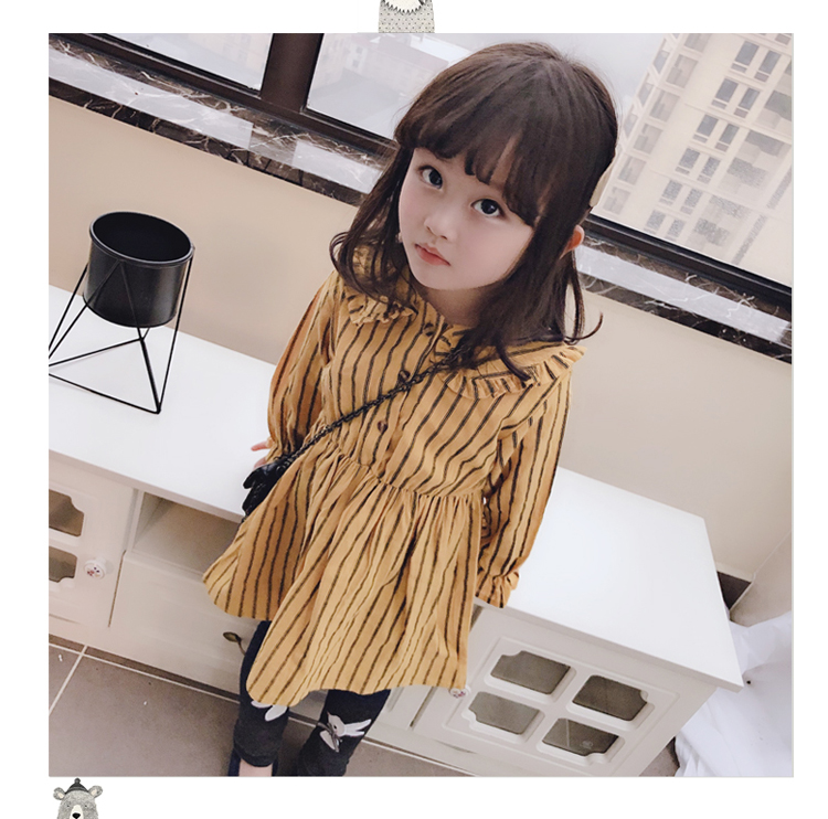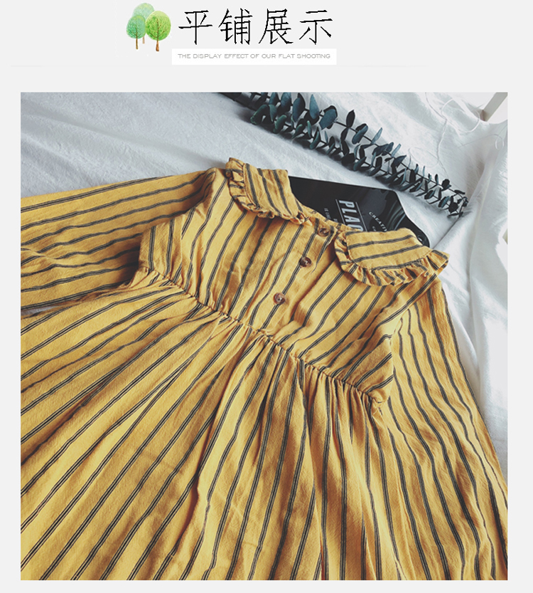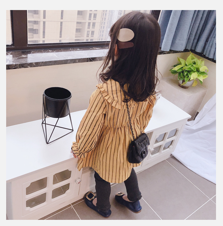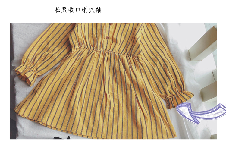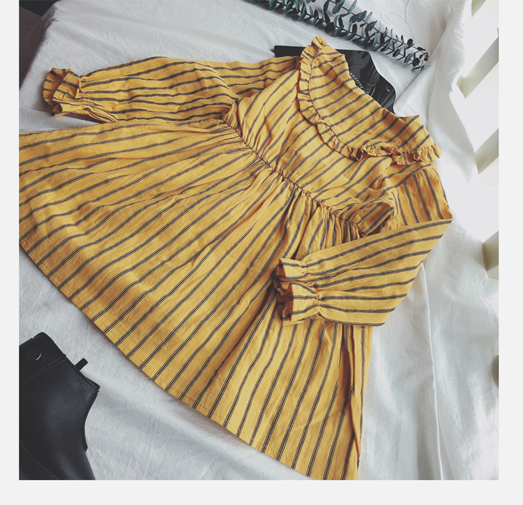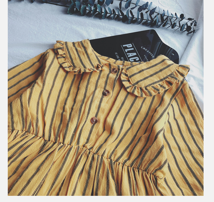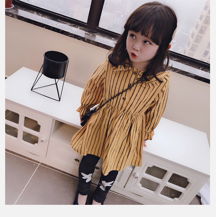 2019春季中小童連衣裙 女童寶寶條紋舒適連衣裙兒童簡約長袖裙子1入