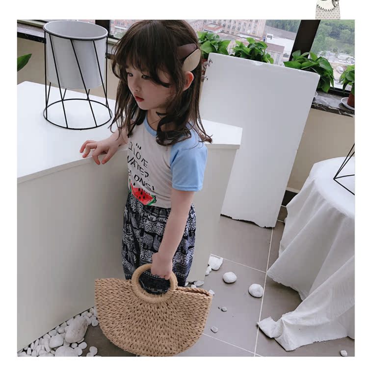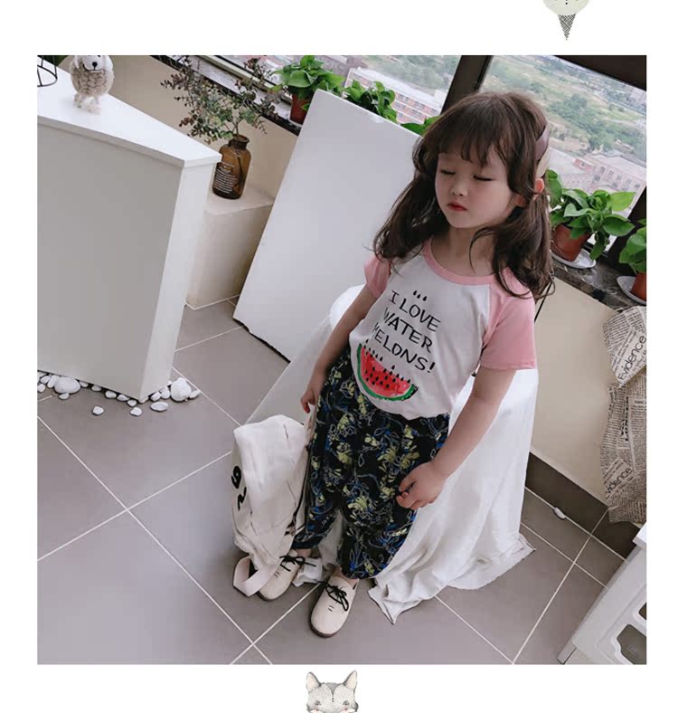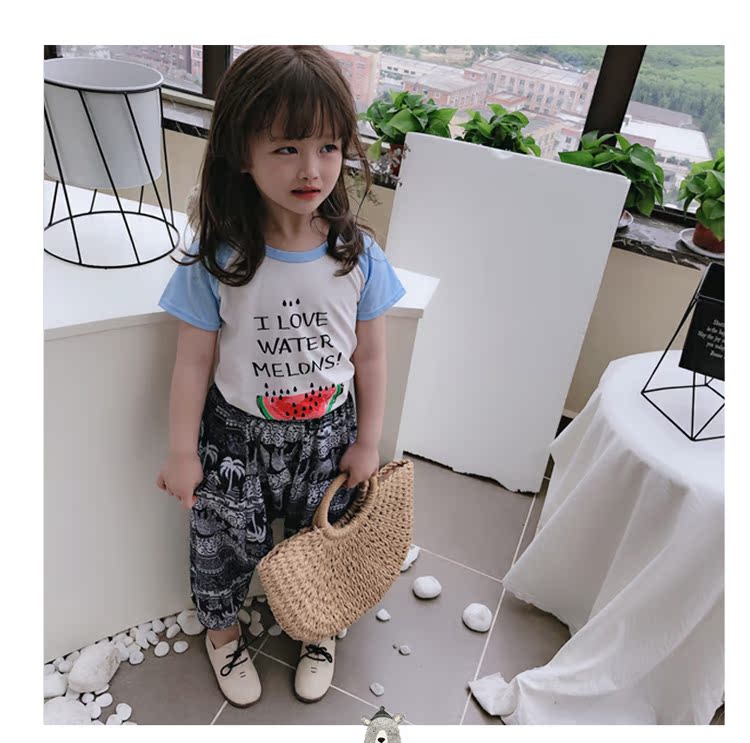 2019夏季新款 男女童洋氣撞色印花T恤 兒童舒適百搭圓領短袖上衣1入