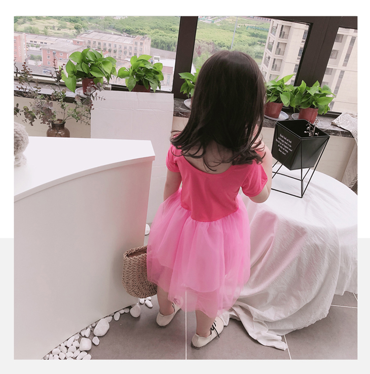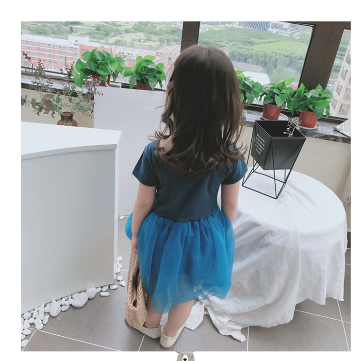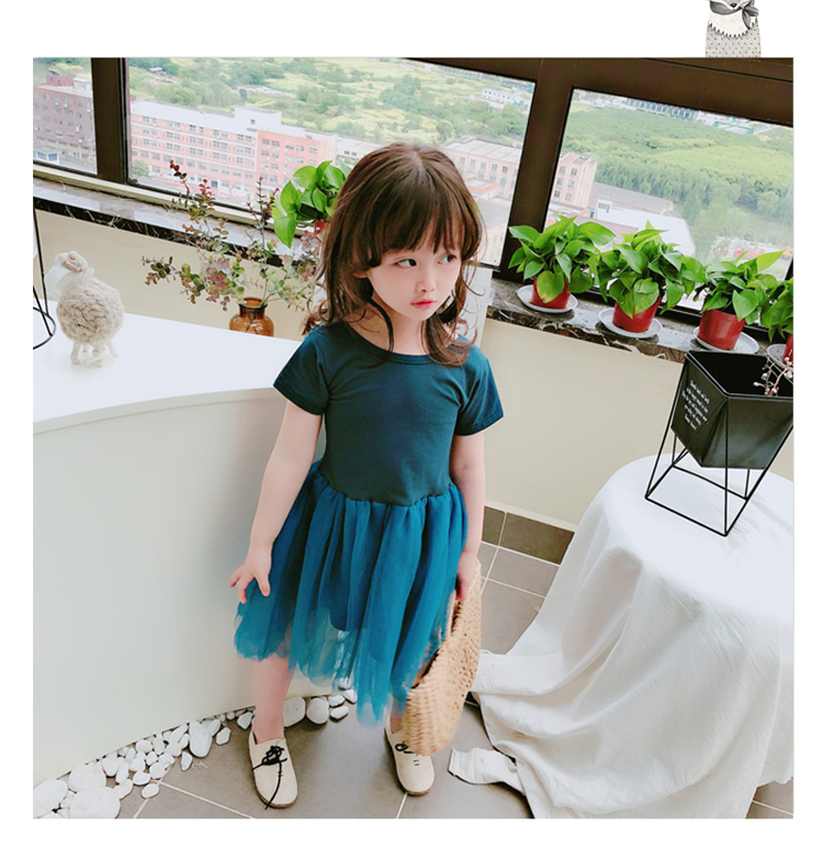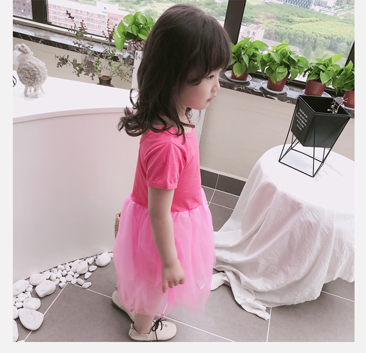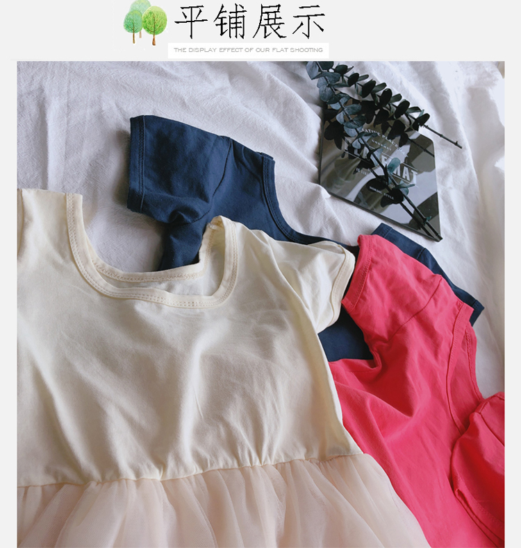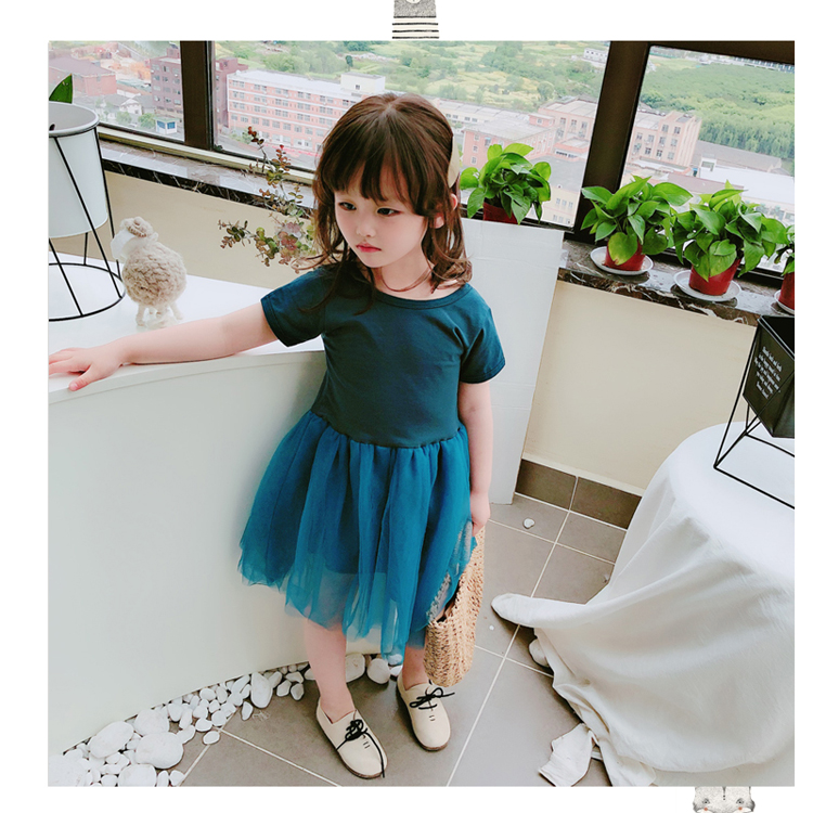 2019兒童夏季新款童裝舒適短袖連衣裙 女童寶寶甜美拼接網紗裙1入