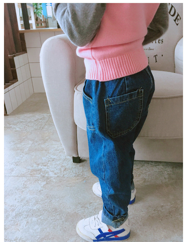 2018中小童舒適寶寶牛仔褲 男女童春秋季新款寬松兒童純色褲子1入