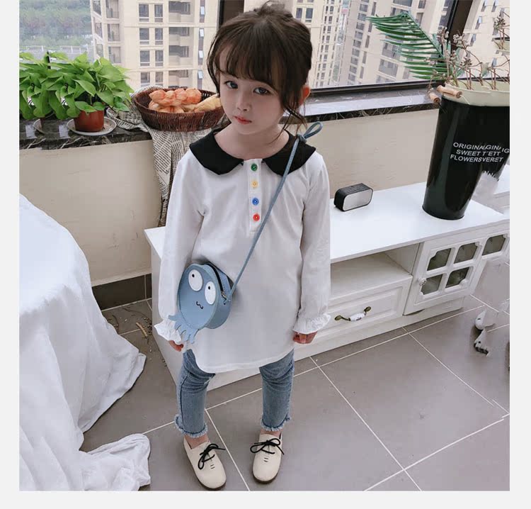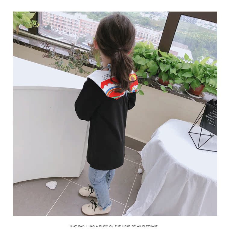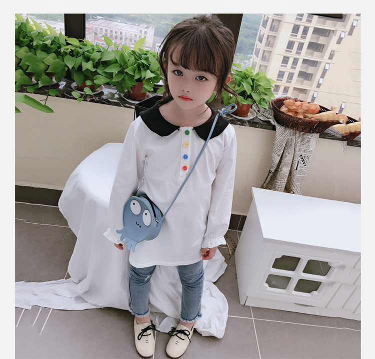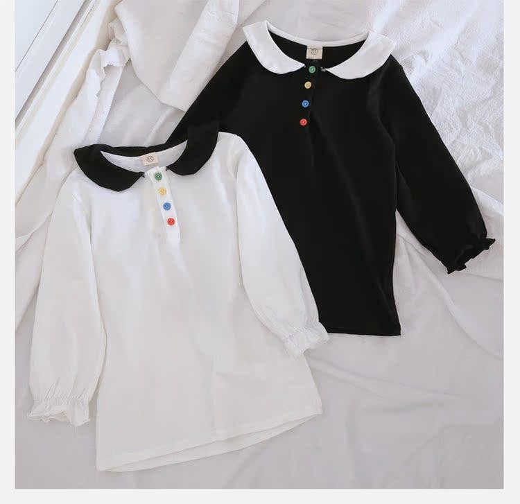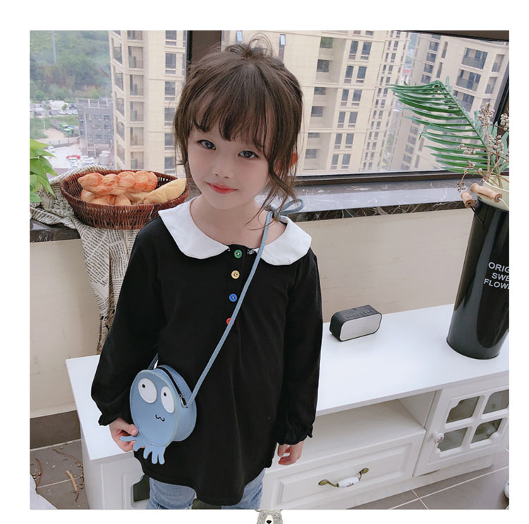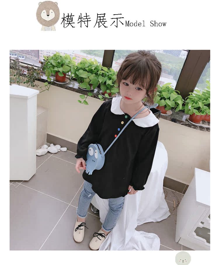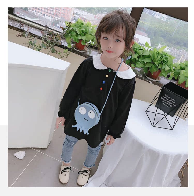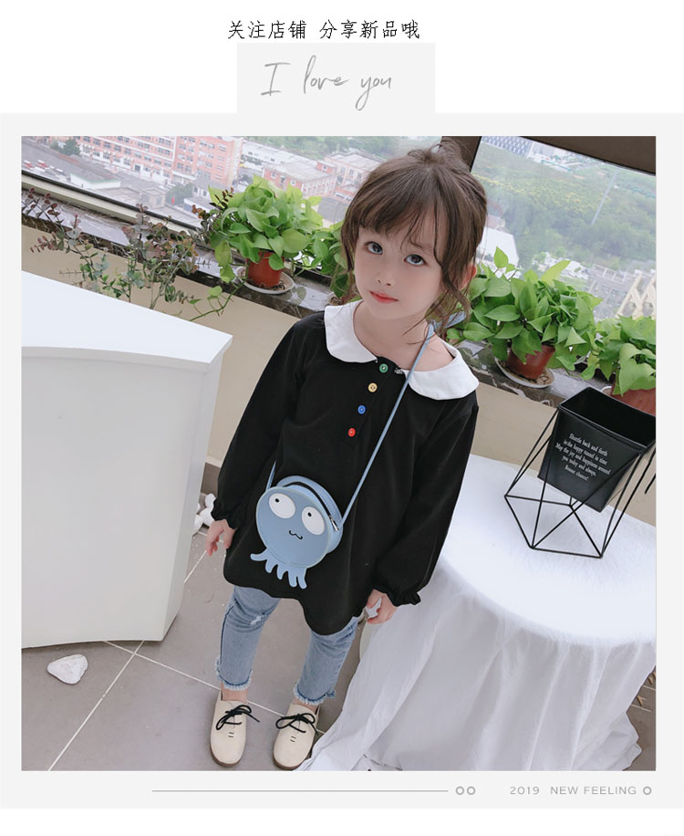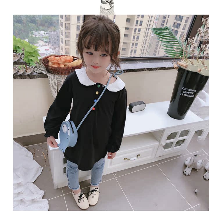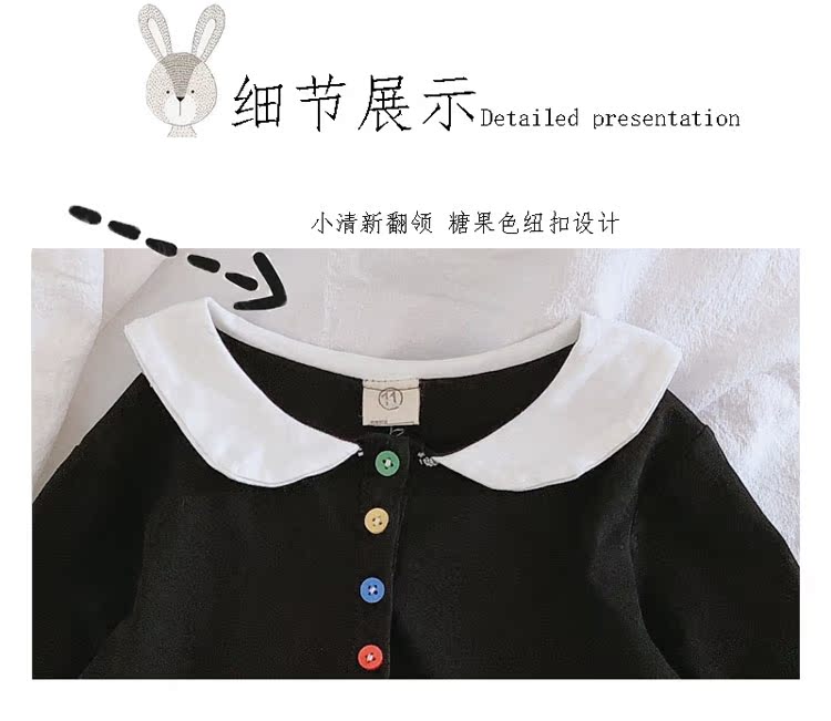 2019春秋季新款 女童個性彩扣連衣裙 兒童可愛舒適翻領披肩休閑裙1入