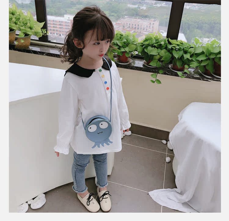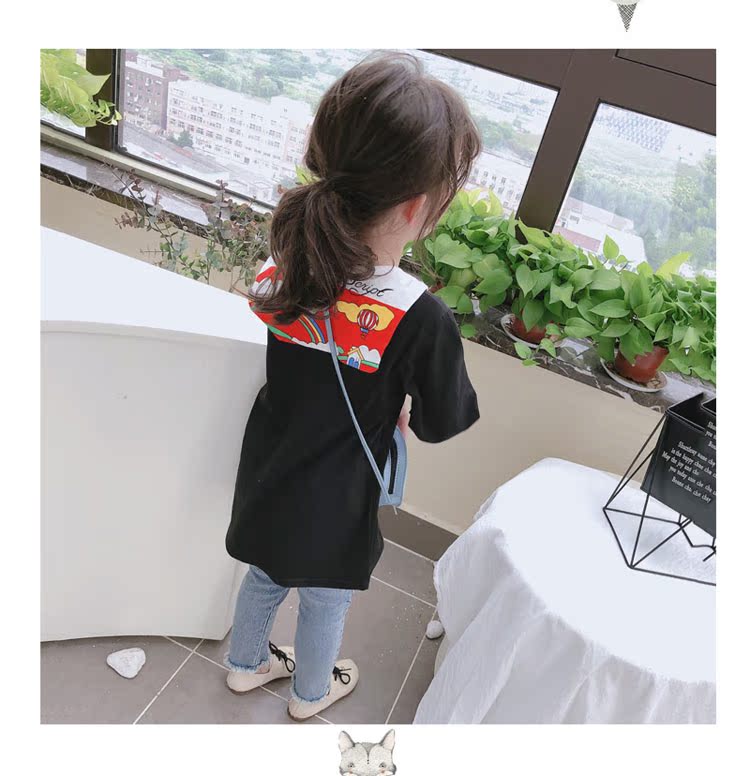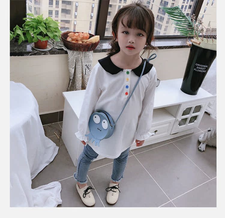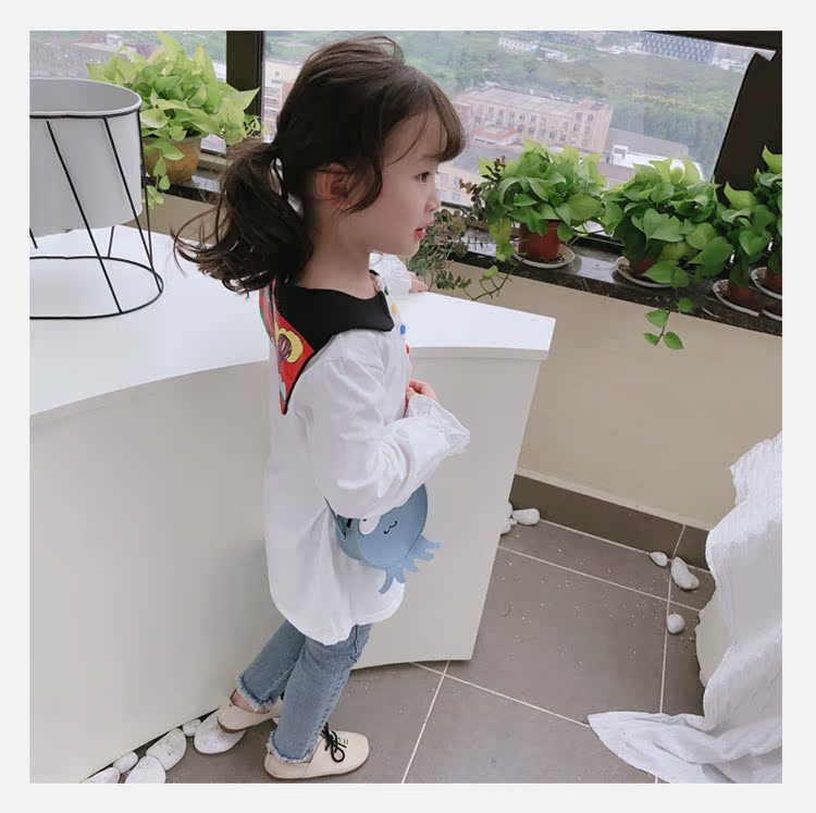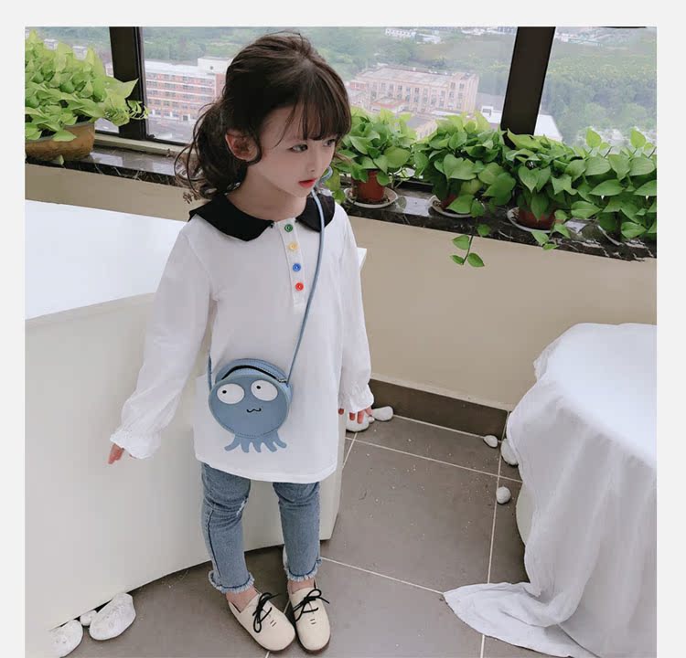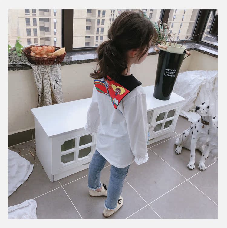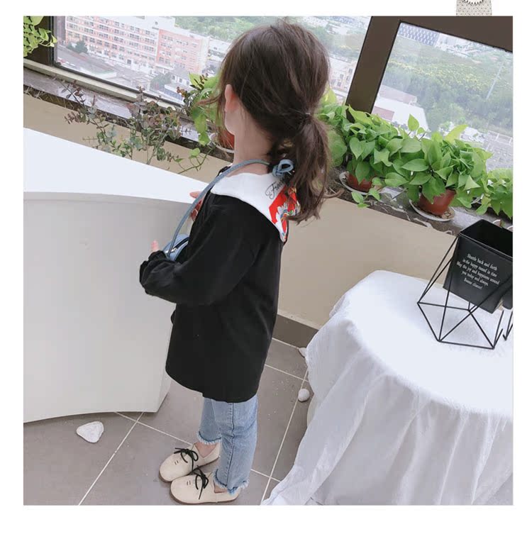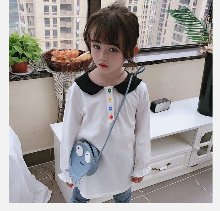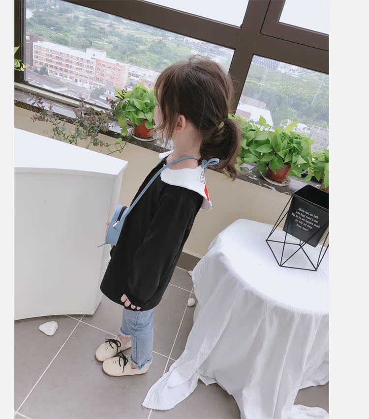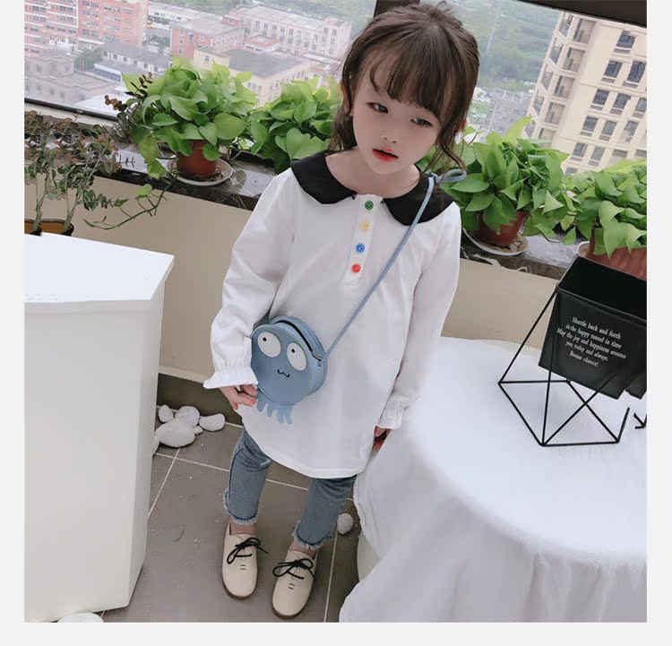 2019春秋季新款 女童個性彩扣連衣裙 兒童可愛舒適翻領披肩休閑裙1入